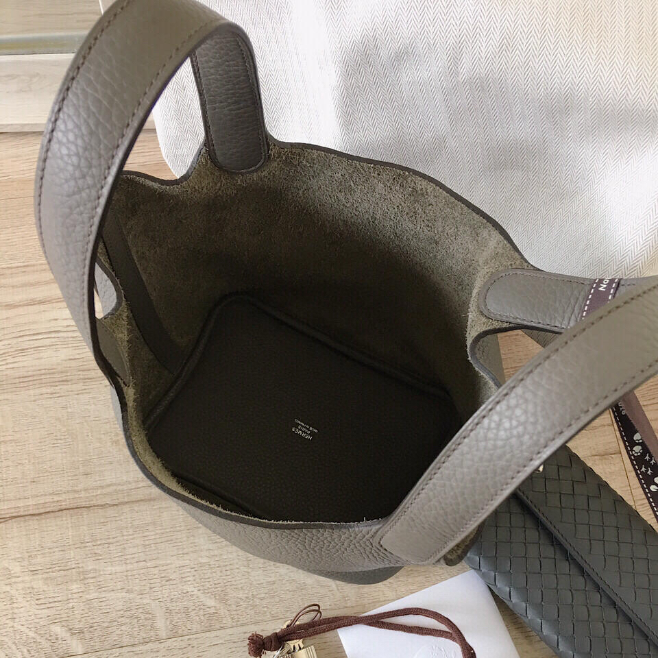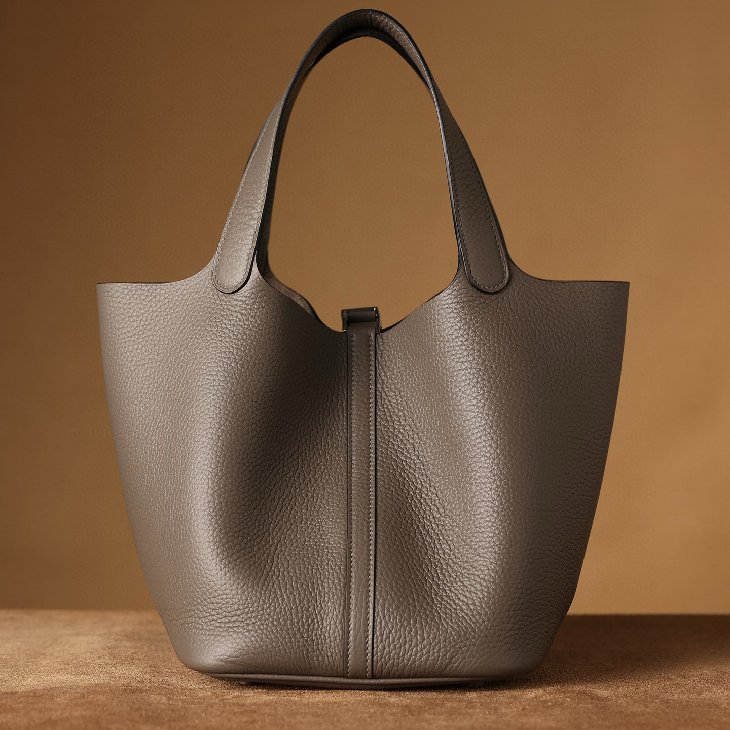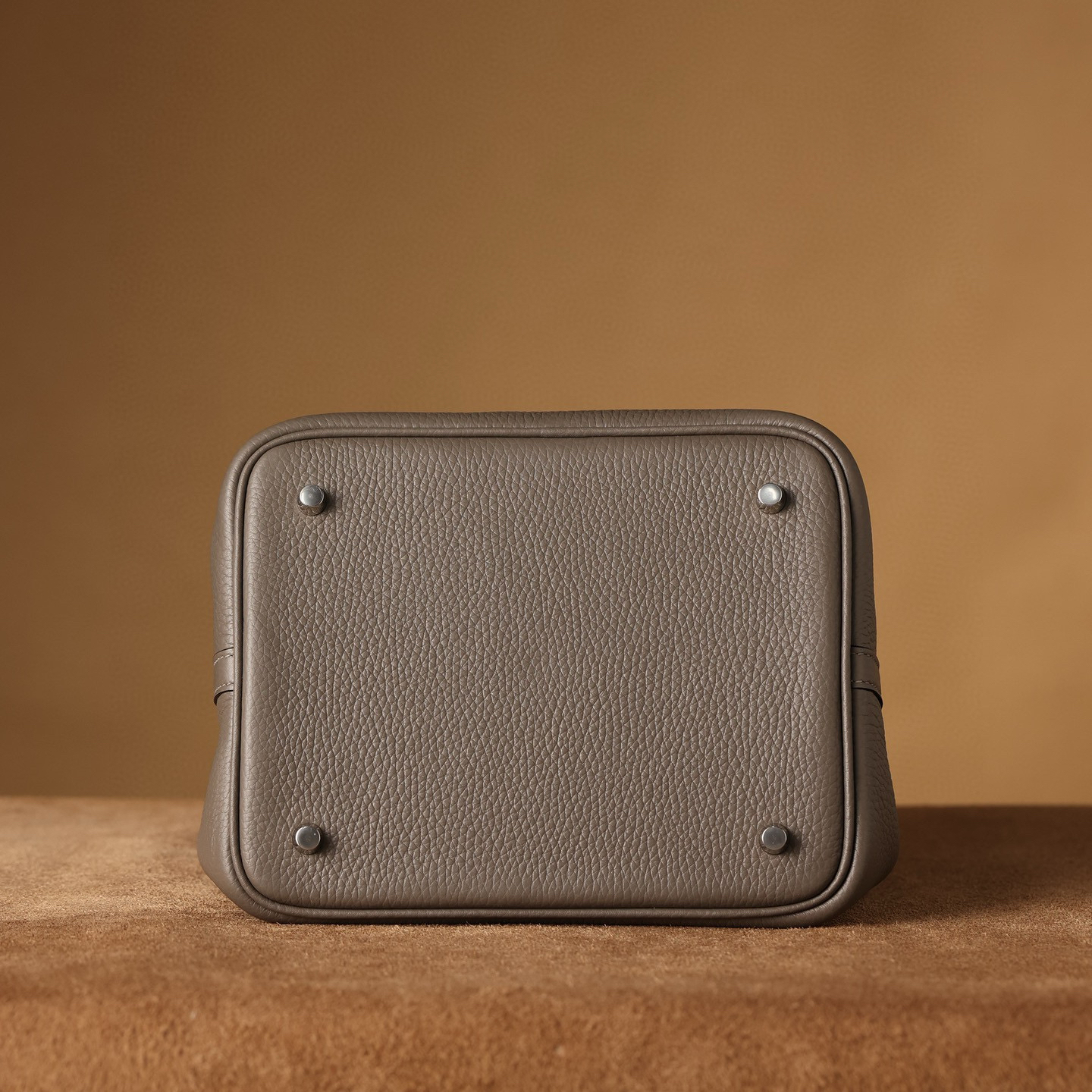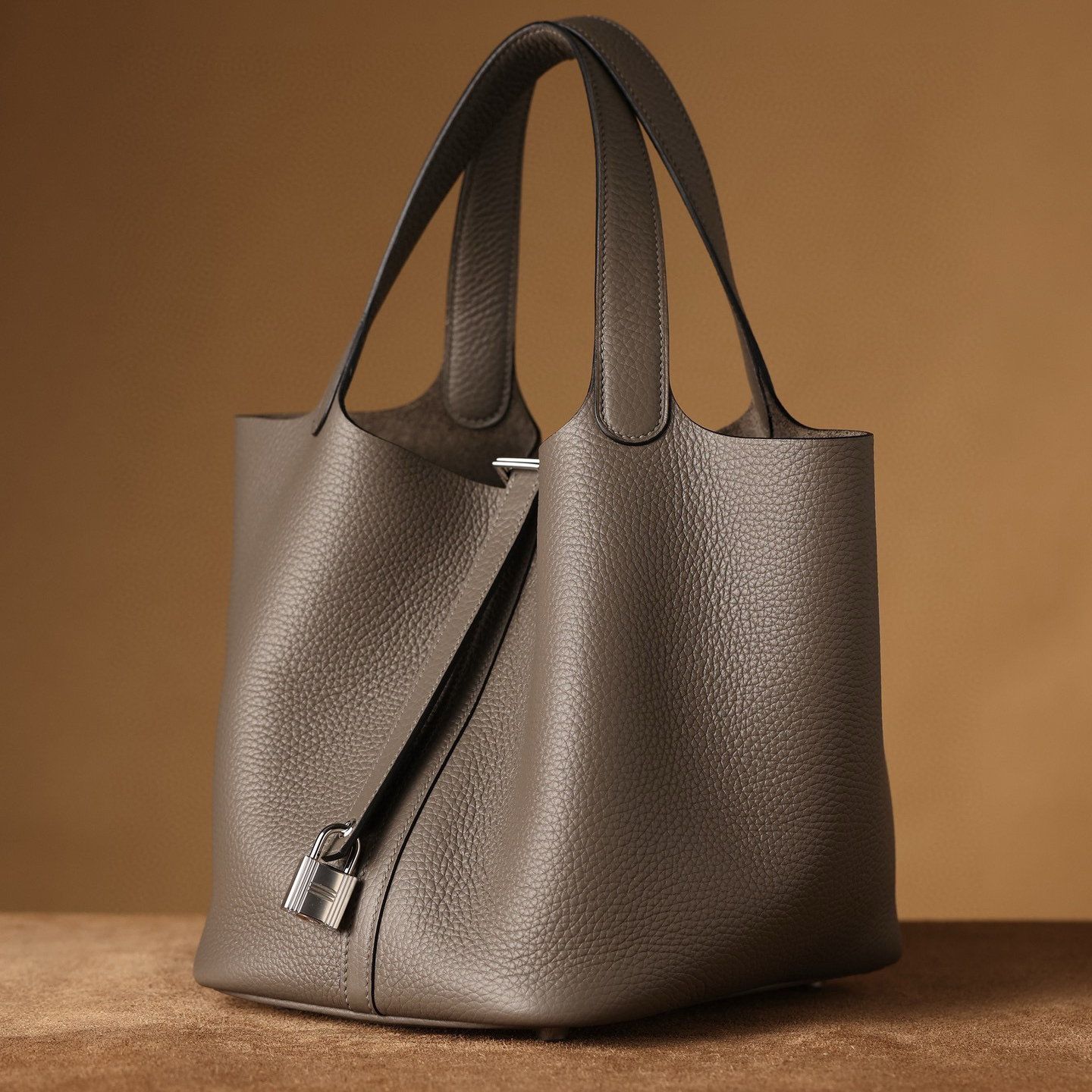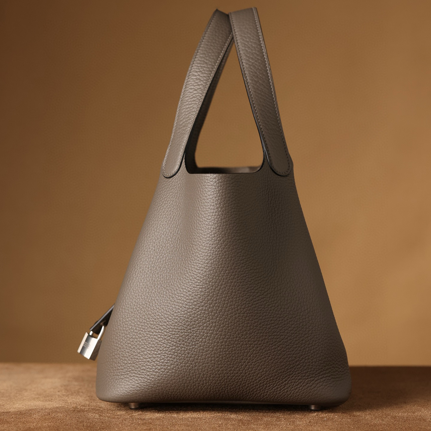 系列:Picotin Lock 款式:手拎 / 手提 尺寸:22.0 x 21.0 x 17.0 厘米 材質:Taurillon Clemence 公牛皮 五金:金屬釦具 工藝解析 這款手提包延續經典水桶輪廓,通過精準的手工縫製展現立體結構。包身採用整張皮革塑形,無需內部框架支撐即能保持優雅廓形,體現對材料特性的深刻掌握。標誌性鎖扣裝置經過精密計算,與皮革開口完美契合,確保使用時的順暢手感與視覺平衡。 細節賞析 皮料:精選Taurillon Clemence公牛皮,天然顆粒紋理細膩均勻,賦予表面獨特的光影效果。這種皮革隨著使用時間會逐漸軟化,形成個人化的使用痕跡。 縫線:均勻緻密的手工縫線沿包身輪廓延伸,轉角處的加固處理展現實用美學。每英寸針數保持一致,展現精湛的手工技藝。 五金:鎖扣採用拋光金屬製作,銀色光澤低調內斂,邊緣經過圓滑處理。五金件與皮革的接合處處理整潔,體現對細節的關注。 結構:開放式頂部設計搭配兩側收褶,創造出隨性而優雅的線條。加寬的包底確保站立穩定性,同時提供充足的收納空間。 風格與氣質 Picotin Lock 22以適中的尺寸與簡約設計,展現實用與美學的平衡。錫器灰的低調色調搭配冷色調金屬配件,適合各種日常場合搭配。其包容的造型語言能夠融入多種穿搭風格,從休閒裝束到商務休閒皆能自然搭配,傳遞出不刻意張揚的品味主張。 這款手提包體現了現代奢侈品對實用功能的重視,其設計哲學強調在日常使用中展現低調優雅。對於追求品質生活的鑑賞家而言,它代表了對經典設計的當代理解。
