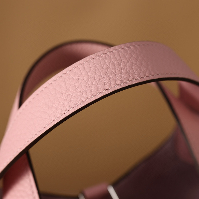 系列:Picotin Lock 款式:手拎 / 手提 尺寸:18.0 x 19.0 x 13.5 厘米 材質:Taurillon Clemence 公牛皮 五金:金屬釦具 工藝解析 此款手提包延續經典水桶輪廓,透過精準的手工縫製展現立體結構。包身採用整張皮革塑形,無需內部框架支撐即能保持優雅廓形,體現對材料特性的深刻掌握。標誌性鎖扣裝置經過精密計算,與皮革開口完美契合,確保使用時的順暢手感與視覺平衡。 細節賞析 皮料:精選Taurillon Clemence公牛皮,天然顆粒紋理細膩均勻,櫻花粉色調柔美典雅。這種皮革隨著使用時間會逐漸軟化,形成個人化的使用痕跡。 縫線:均勻緻密的手工縫線沿包身輪廓延伸,轉角處的加固處理展現實用美學。每英寸針數保持一致,展現精湛的手工技藝。 五金:鎖扣採用拋光金屬製作,銀色光澤清冷雅致,邊緣經過圓滑處理。五金件與皮革的接合處處理整潔,體現對細節的關注。 結構:開放式頂部設計搭配兩側收褶,創造出隨性而優雅的線條。加寬的包底確保站立穩定性,同時提供充足的收納空間。 風格與氣質 Picotin Lock 18以精緻的尺寸與櫻花粉柔美色調,展現獨特優雅氣息。櫻花粉的溫柔色澤搭配冷色調金屬配件,呈現出浪漫精緻的視覺效果。其精巧的造型語言能夠融入多種穿搭風格,從休閒裝束到正式場合皆能自然搭配,傳遞出獨特的品味主張。 這款手提包體現了現代奢侈品對實用功能的重視,其設計哲學強調在日常使用中展現低調優雅。對於追求品質生活的鑑賞家而言,它代表了對經典設計的當代理解。
