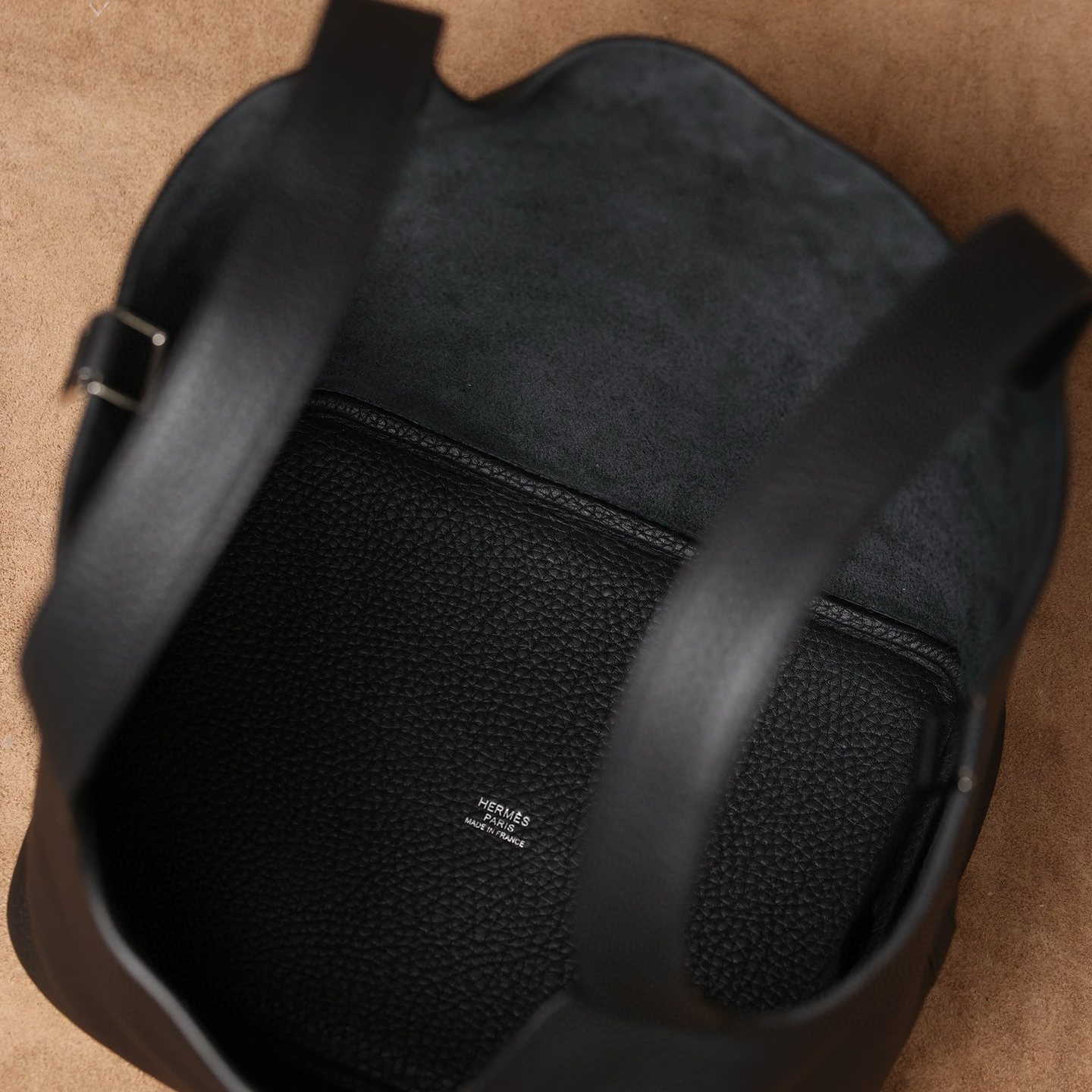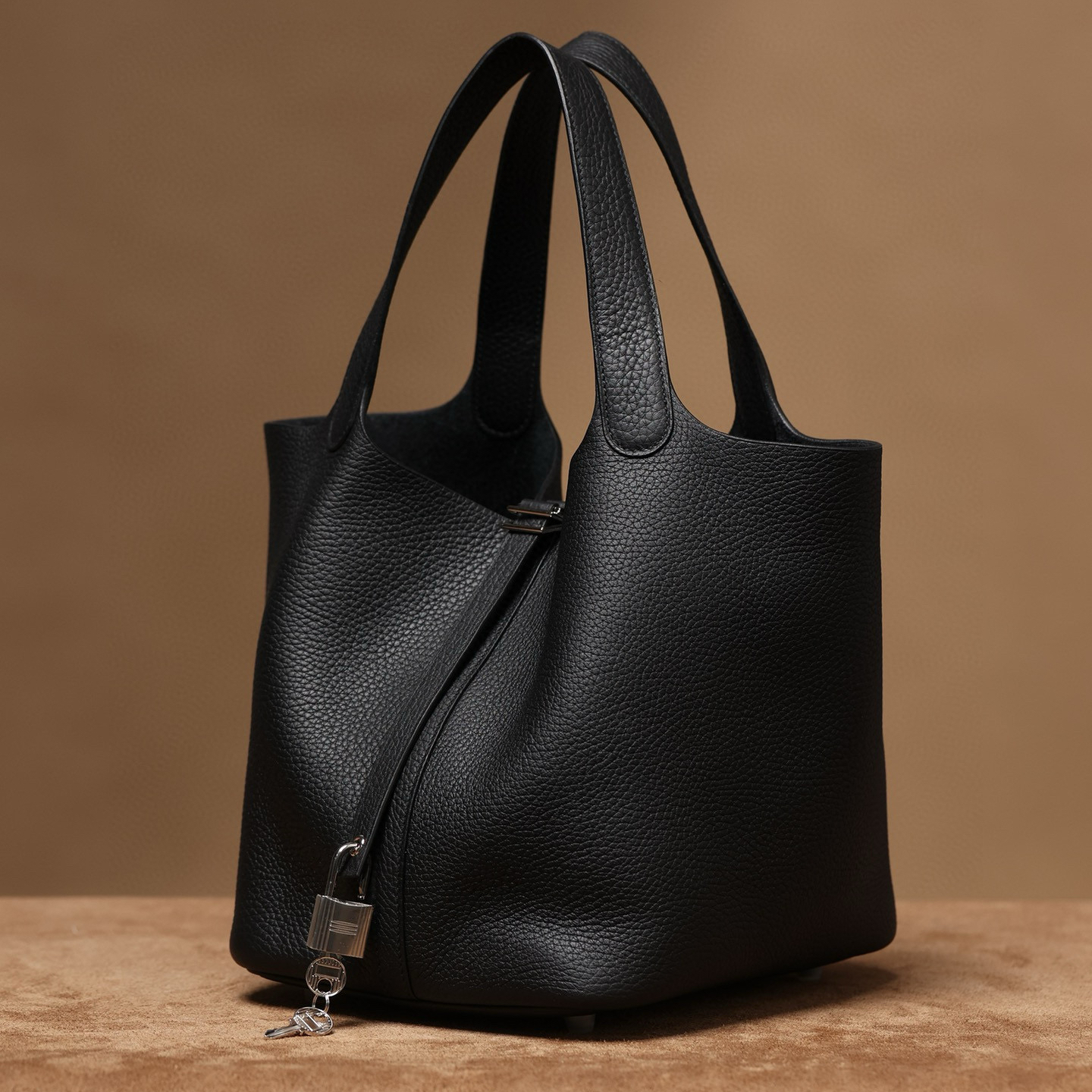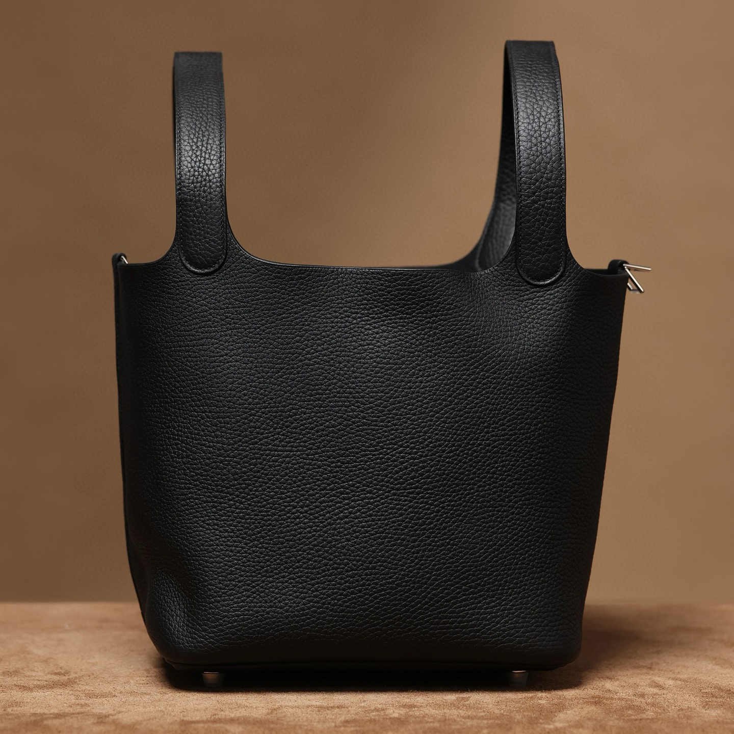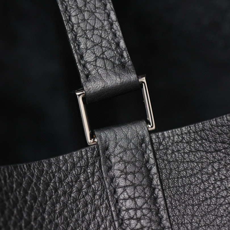 系列:Picotin Lock 款式:手拎 / 手提 尺寸:22.0 x 21.0 x 17.0 厘米 材質:Taurillon Clemence 公牛皮 五金:金屬釦具 工藝解析 此款手提包延續經典水桶輪廓,透過精準的手工縫製展現立體結構。包身採用整張皮革塑形,無需內部框架支撐即能保持優雅廓形,體現對材料特性的深刻掌握。標誌性鎖扣裝置經過精密計算,與皮革開口完美契合,確保使用時的順暢手感與視覺平衡。 細節賞析 皮料:精選Taurillon Clemence公牛皮,天然顆粒紋理細膩均勻,黑色調沉穩大氣。這種皮革隨著使用時間會逐漸軟化,形成個人化的使用痕跡。 縫線:均勻緻密的手工縫線沿包身輪廓延伸,轉角處的加固處理展現實用美學。每英寸針數保持一致,展現精湛的手工技藝。 五金:鎖扣採用拋光金屬製作,銀色光澤清冷雅致,邊緣經過圓滑處理。五金件與皮革的接合處處理整潔,體現對細節的關注。 結構:開放式頂部設計搭配兩側收褶,創造出隨性而優雅的線條。加寬的包底確保站立穩定性,同時提供充足的收納空間。 風格與氣質 Picotin Lock 22以適中的尺寸與黑色沉穩色調,展現經典優雅氣息。黑色的深邃色澤搭配冷色調金屬配件,呈現出永恆經典的視覺效果。其典雅的造型語言能夠融入多種穿搭風格,從休閒裝束到正式場合皆能自然搭配,傳遞出獨特的品味主張。 這款手提包體現了現代奢侈品對實用功能的重視,其設計哲學強調在日常使用中展現低調優雅。對於追求品質生活的鑑賞家而言,它代表了對經典設計的當代理解。