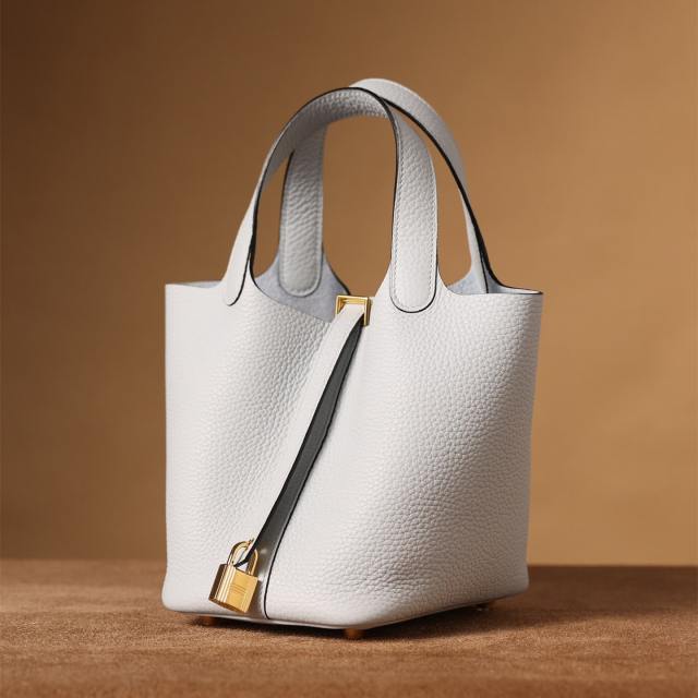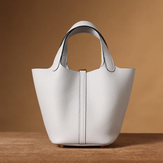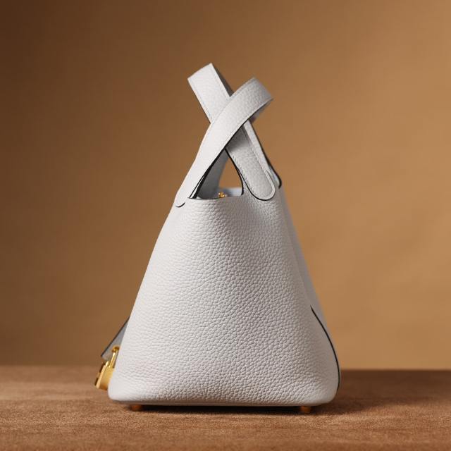 系列:Picotin Lock 款式:手拎 / 手提 尺寸:18.0 x 19.0 x 13.5 厘米 材質:Taurillon Clemence 公牛皮 五金:金屬釦具 工藝解析 此款手提包延續經典水桶輪廓,透過精準的手工縫製展現立體結構。包身採用整張皮革塑形,無需內部框架支撐即能保持優雅廓形,體現對材料特性的深刻掌握。標誌性鎖扣裝置經過精密計算,與皮革開口完美契合,確保使用時的順暢手感與視覺平衡。 細節賞析 皮料:精選Taurillon Clemence公牛皮,天然顆粒紋理細膩均勻,聖杯藍色調清新典雅。這種皮革隨著使用時間會逐漸軟化,形成個人化的使用痕跡。 縫線:均勻緻密的手工縫線沿包身輪廓延伸,轉角處的加固處理展現實用美學。每英寸針數保持一致,展現精湛的手工技藝。 五金:鎖扣採用拋光金屬製作,金色光澤溫暖雅致,邊緣經過圓滑處理。五金件與皮革的接合處處理整潔,體現對細節的關注。 結構:開放式頂部設計搭配兩側收褶,創造出隨性而優雅的線條。加寬的包底確保站立穩定性,同時提供充足的收納空間。 風格與氣質 Picotin Lock 18以精緻的尺寸與聖杯藍清新色調,展現現代優雅氣息。聖杯藍的清澈色澤搭配溫暖色調金屬配件,適合各種日常場合搭配。其精巧的造型語言能夠融入多種穿搭風格,從休閒裝束到正式場合皆能自然搭配,傳遞出獨特的品味主張。 這款手提包體現了現代奢侈品對實用功能的重視,其設計哲學強調在日常使用中展現低調優雅。對於追求品質生活的鑑賞家而言,它代表了對經典設計的當代理解。