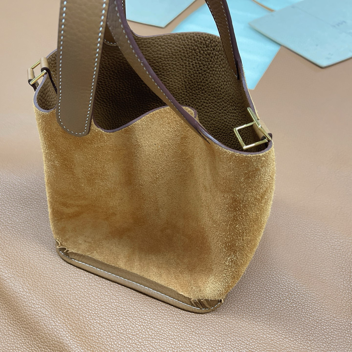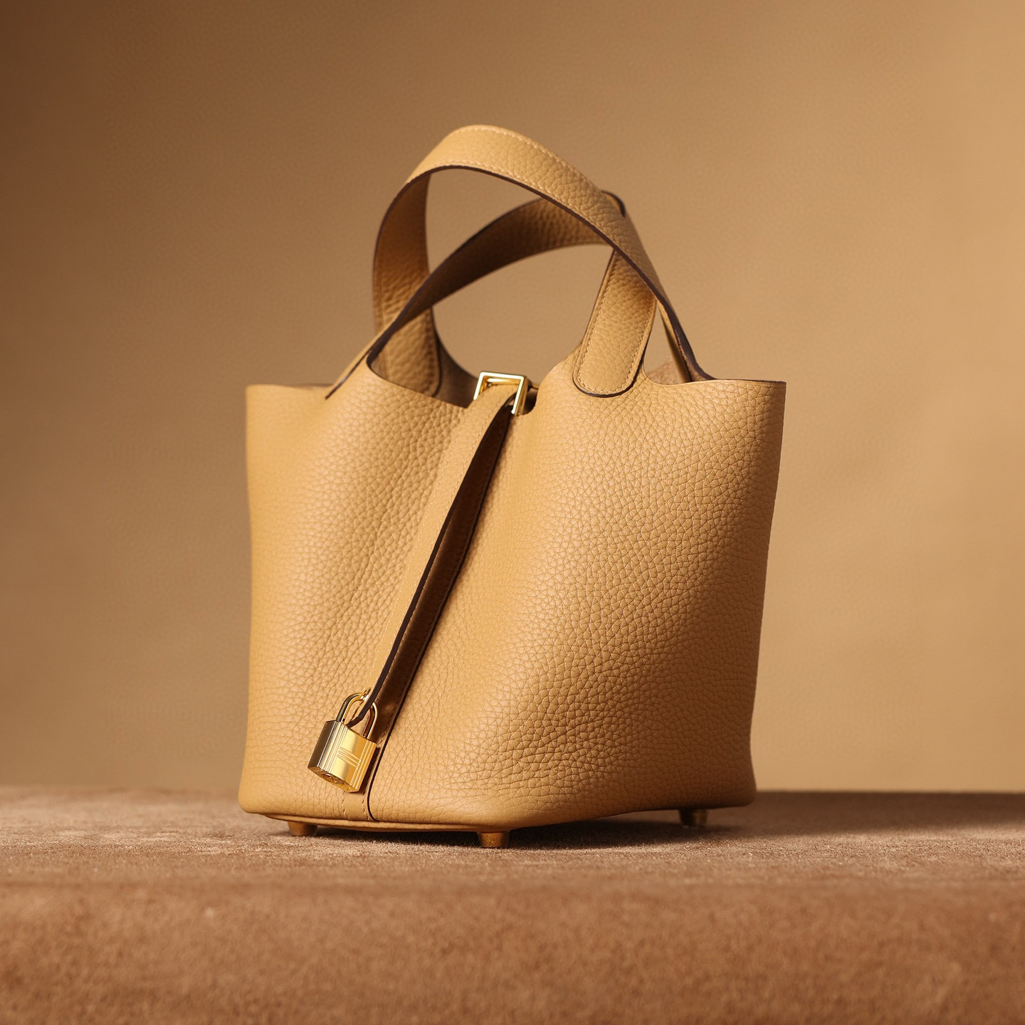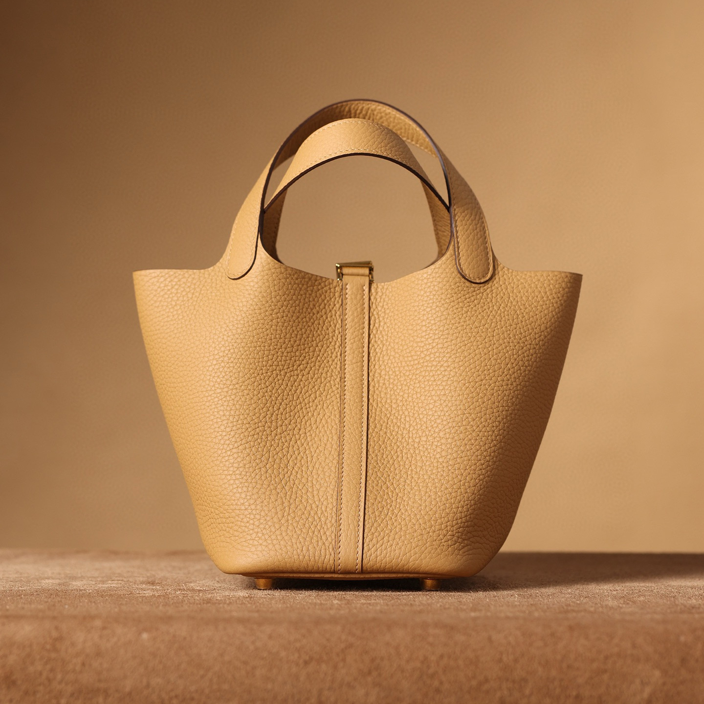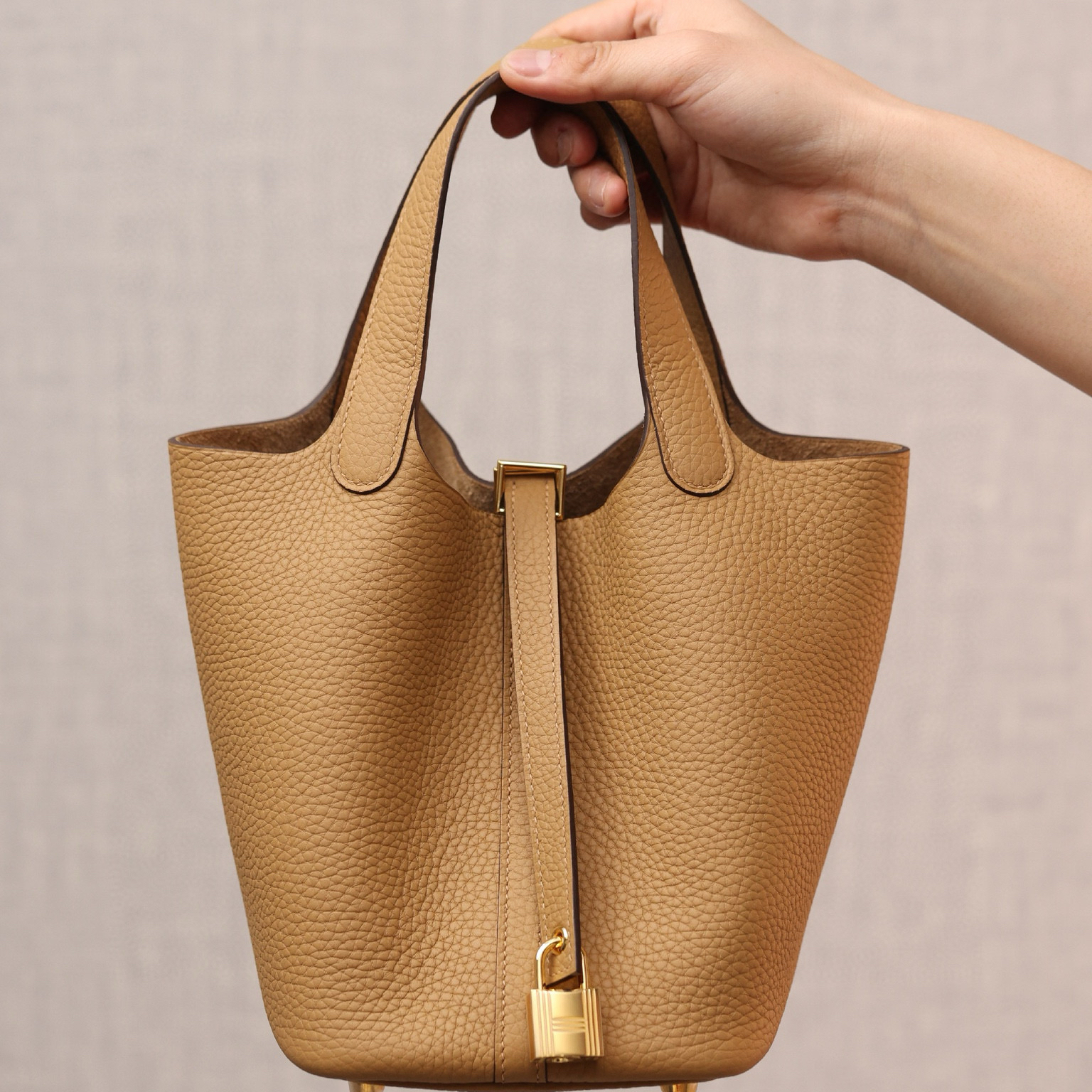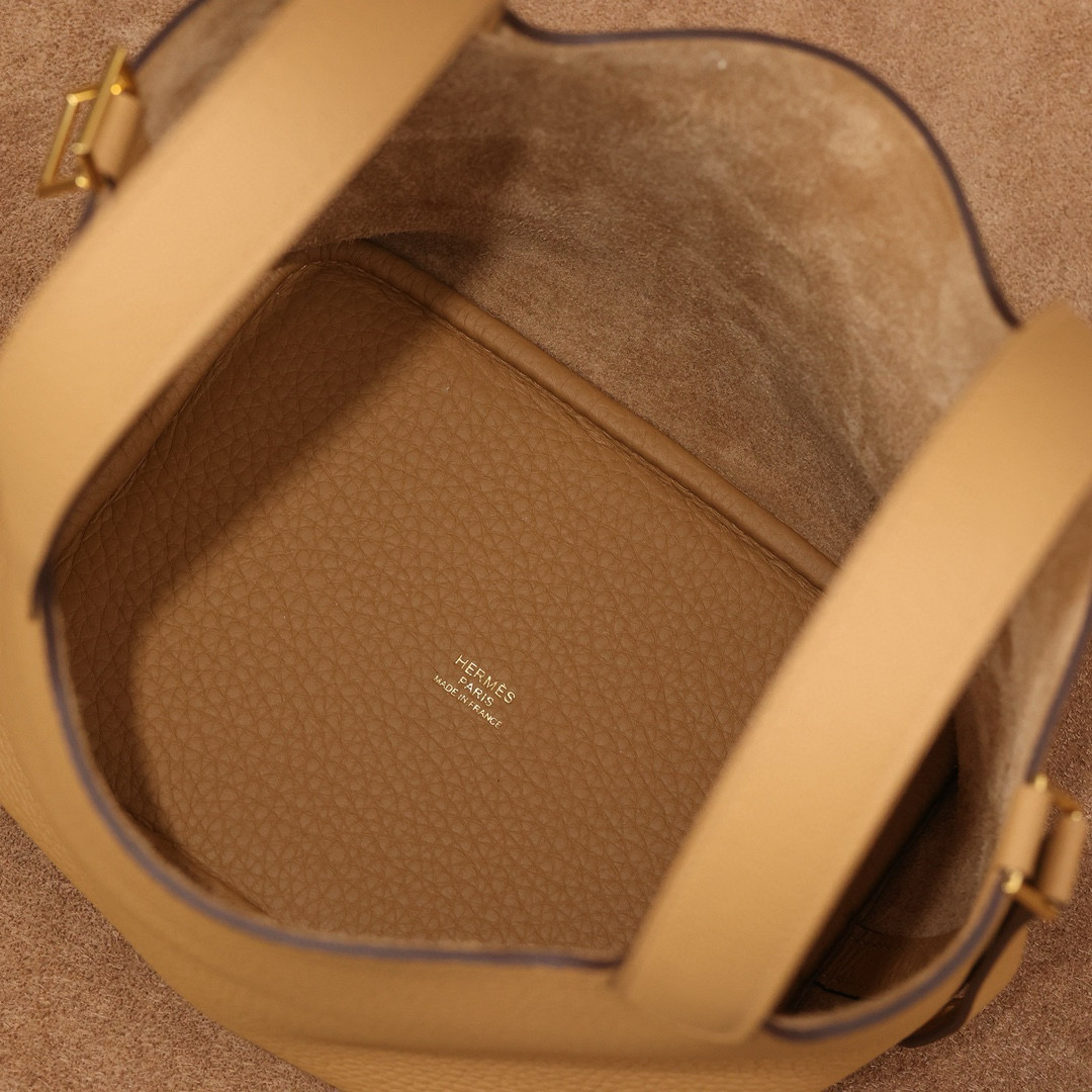 系列:Picotin Lock 款式:手拎 / 手提 尺寸:18.0 x 19.0 x 13.5 厘米 材質:Taurillon Clemence 公牛皮 五金:金屬釦具 工藝解析 此款手提包延續經典水桶輪廓,透過精準的手工縫製展現立體結構。包身採用整張皮革塑形,無需內部框架支撐即能保持優雅廓形,體現對材料特性的深刻掌握。標誌性鎖扣裝置經過精密計算,與皮革開口完美契合,確保使用時的順暢手感與視覺平衡。 細節賞析 皮料:精選Taurillon Clemence公牛皮,天然顆粒紋理細膩均勻,餅乾色調溫潤優雅。這種皮革隨著使用時間會逐漸軟化,形成個人化的使用痕跡。 縫線:均勻緻密的手工縫線沿包身輪廓延伸,轉角處的加固處理展現實用美學。每英寸針數保持一致,展現精湛的手工技藝。 五金:鎖扣採用拋光金屬製作,金色光澤溫暖雅致,邊緣經過圓滑處理。五金件與皮革的接合處處理整潔,體現對細節的關注。 結構:開放式頂部設計搭配兩側收褶,創造出隨性而優雅的線條。加寬的包底確保站立穩定性,同時提供充足的收納空間。 風格與氣質 Picotin Lock 18以精緻的尺寸與餅乾色溫暖色調,展現溫潤優雅氣息。餅乾色的柔和色澤搭配溫暖色調金屬配件,適合各種日常場合搭配。其精巧的造型語言能夠融入多種穿搭風格,從休閒裝束到正式場合皆能自然搭配,傳遞出獨特的品味主張。 這款手提包體現了現代奢侈品對實用功能的重視,其設計哲學強調在日常使用中展現低調優雅。對於追求品質生活的鑑賞家而言,它代表了對經典設計的當代理解。
