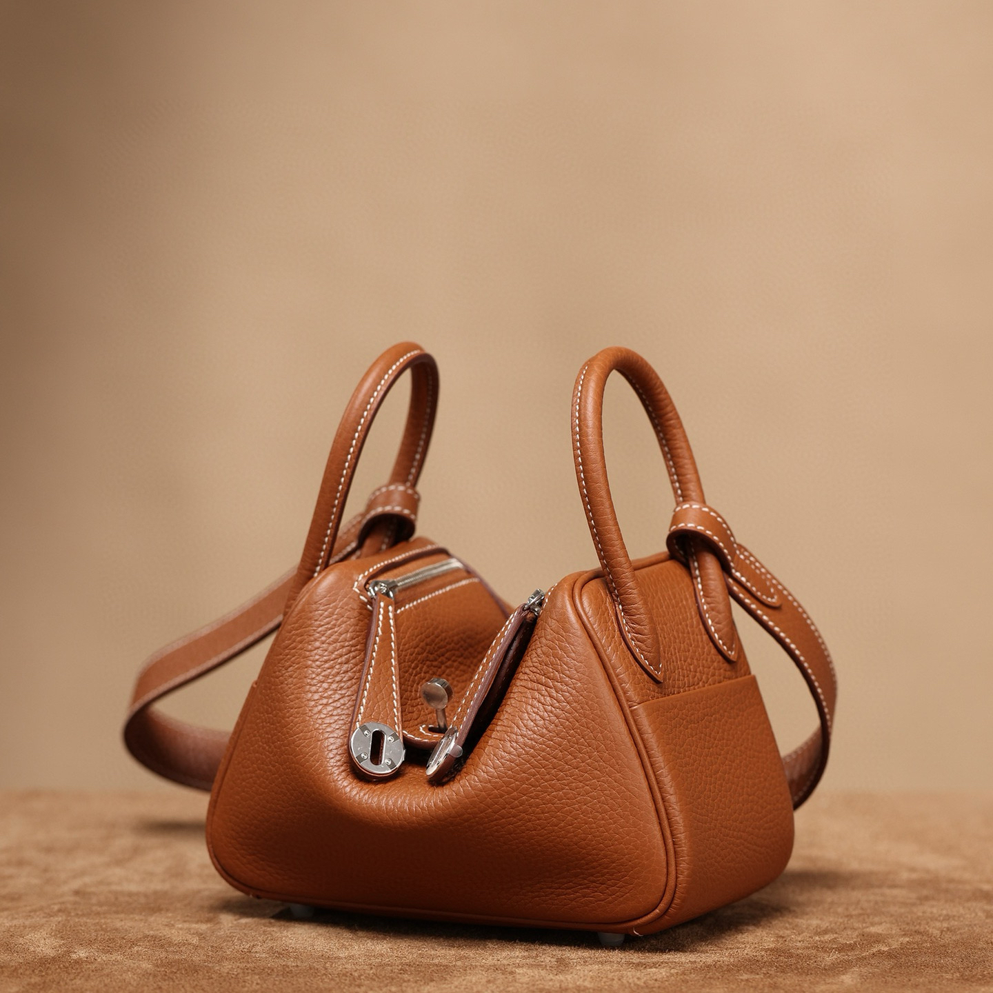 系列:Lindy 尺寸:19.0 × 9.0 × 12.5 公分 設計:單肩或手提 主要材質:Taurillon Clemence 公牛皮 金屬配件:銀色金屬扣具 顏色:金棕色 工藝解析 此款迷你手袋延續Lindy系列經典的雙向開合設計,在精巧尺寸中展現獨特結構美感。包身採用Taurillon Clemence公牛皮,這種皮革以其細膩的顆粒紋理與柔軟質感著稱,金棕色調展現溫暖典雅的氣質。全手工製作過程在迷你包身弧度的處理上展現精湛技藝,工匠需要精準掌握小尺寸皮革的拉伸特性,塑造出完美的枕形輪廓。 細節賞析 精選的金棕色公牛皮呈現溫潤色澤,細密的顆粒紋理在光線下展現豐富層次。銀色金屬扣件經過精密加工,表面處理細緻光滑,與金棕皮革形成和諧搭配。縫線工藝採用與皮革相配的色系,在迷你尺寸中展現出非凡的精細度。 包身兩側的褶皺設計在保持裝飾功能的同時,賦予手袋靈活的收納空間。提手長度經過精心計算,確保迷你尺寸下的舒適握感。內部空間經過巧妙規劃,在有限尺寸內實現實用功能。 風格與氣質 這款迷你手袋以溫暖的金棕色搭配典雅銀扣,展現低調奢華的氣質。其中性色調與小巧尺寸使其成為日常搭配的理想選擇,無論是正式場合或休閒時刻,都能展現使用者對細節的講究。獨特的枕形輪廓與迷你設計,使其成為兼具實用與美觀的精緻配飾。 對於喜愛經典包款的鑑賞者,可以深入了解金棕色皮革的製作工藝要點。在選擇日常配飾時,經典色系的搭配總是重要的考量。優質皮革的保養與維護也是值得探討的話題。