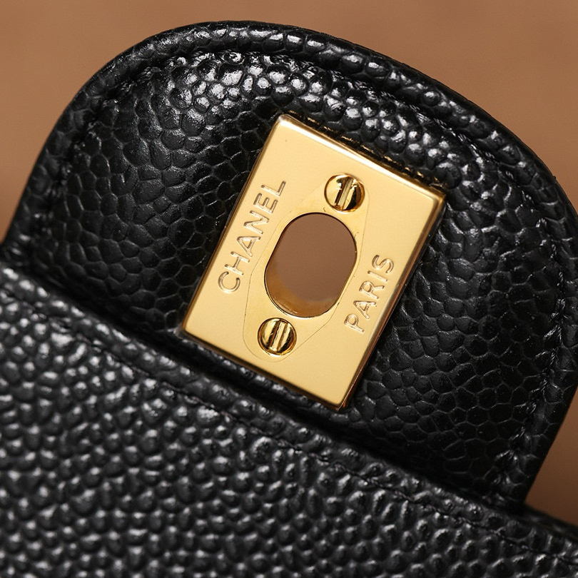 款式:斜挎 / 單肩 尺寸:長14.5公分 x 高23公分 x 寬6公分 主皮料:魚子醬牛皮 內裏材質:小羊皮 金屬件:銀色扣件 工藝解析 這款小號口蓋包的製作延續經典工藝傳統。魚子醬牛皮的選用展現了對皮料耐久性的重視,其獨特的密集顆粒紋理需要精準的壓印工藝處理。菱格紋的縫製需要嚴格控制每處的填充飽滿度,確保圖案立體均勻。包蓋開合結構經過精密計算,確保使用時的順暢手感與耐用性。 細節賞析 精選魚子醬牛皮質地堅韌且富有彈性,表面密集顆粒紋理清晰均勻,粗細分明,具有良好的抗刮損特性。縫線工整細密,轉角處處理圓滑,與皮革邊緣保持精準距離。銀色金屬扣打磨光滑,雙C標誌刻畫清晰,與黑色皮面構成簡約現代的對比。內部小羊皮內裡觸感柔軟,提供良好的內容物保護。 風格與氣質 Classic Flap 23黑銀配色展現出精緻現代的優雅氣質。小號尺寸更顯精巧玲瓏,魚子醬牛皮的耐用特性使其成為日常使用的理想選擇。銀色金屬件為經典設計注入當代感,其設計完美平衡了品牌經典元素與現代審美需求,展現出低調而精緻的都市風格。 了解魚子醬牛皮等耐用皮質的特性與保養方法,可在我們的皮革護理指南中找到實用建議。若對經典手袋的設計演變感興趣,歡迎查閱品牌經典設計傳承專文。