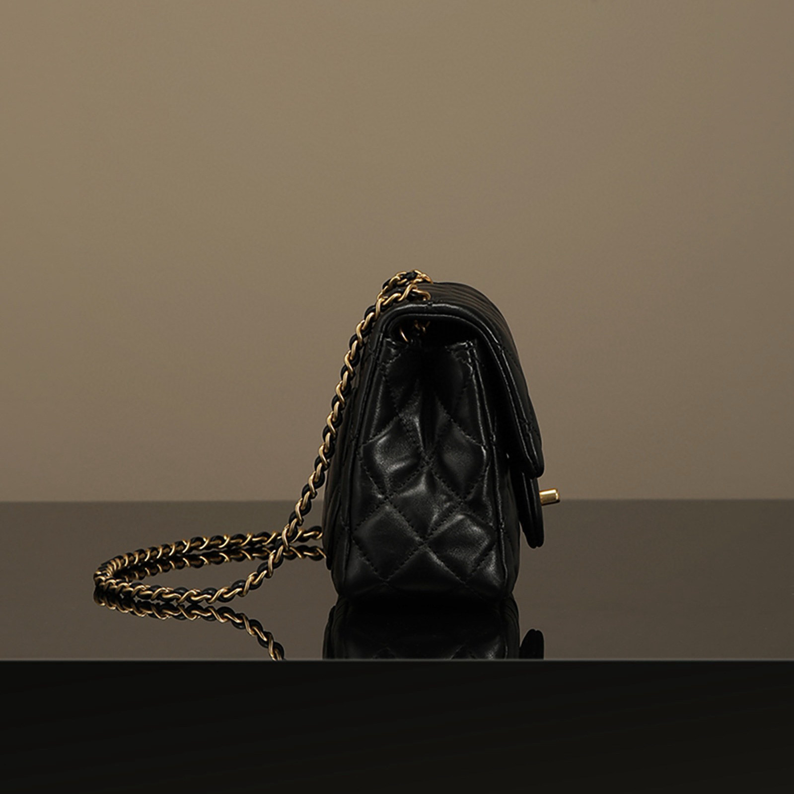 款式:單肩 / 斜挎 尺寸:長13公分 x 高18公分 x 寬7公分 主皮料:小羊皮 內裏材質:小羊皮 金屬件:復古金色扣件與鏈帶 工藝解析 這款口蓋包的製作延續經典工藝傳統。包身菱格紋的縫製需要精準控制每處填充的飽滿度,確保圖案立體均勻。金屬小金球的製作展現了細緻的金屬打磨技術,其圓潤造型與皮質鏈帶的結合體現了對細節的講究。包蓋開合結構經過反覆測試,確保使用時的順暢手感。 細節賞析 精選小羊皮質地柔軟細膩,表面呈現自然光澤,菱格紋車線工整勻稱,每個轉角都處理得圓滑平整。金屬小金球表面光滑,色澤溫潤,與復古金色鏈帶形成完美呼應。雙C鎖扣的刻畫清晰,開合聲音清脆。內部同樣採用小羊皮內裡,觸感舒適且保護內容物。 風格與氣質 Classic Flap小金球口蓋包融合經典與現代審美,黑金配色永恆優雅。Mini尺寸更顯精緻可愛,既能作為晚宴包使用,也能搭配日常裝扮。其設計完美平衡了品牌經典元素與實用功能,展現出低調奢華的氣質。 了解經典手袋的保養知識能讓珍愛之物歷久彌新,我們在經典手袋維護要點中整理了實用建議。若對香奈兒設計元素的演變感興趣,可查閱品牌標誌元素解析專文。
