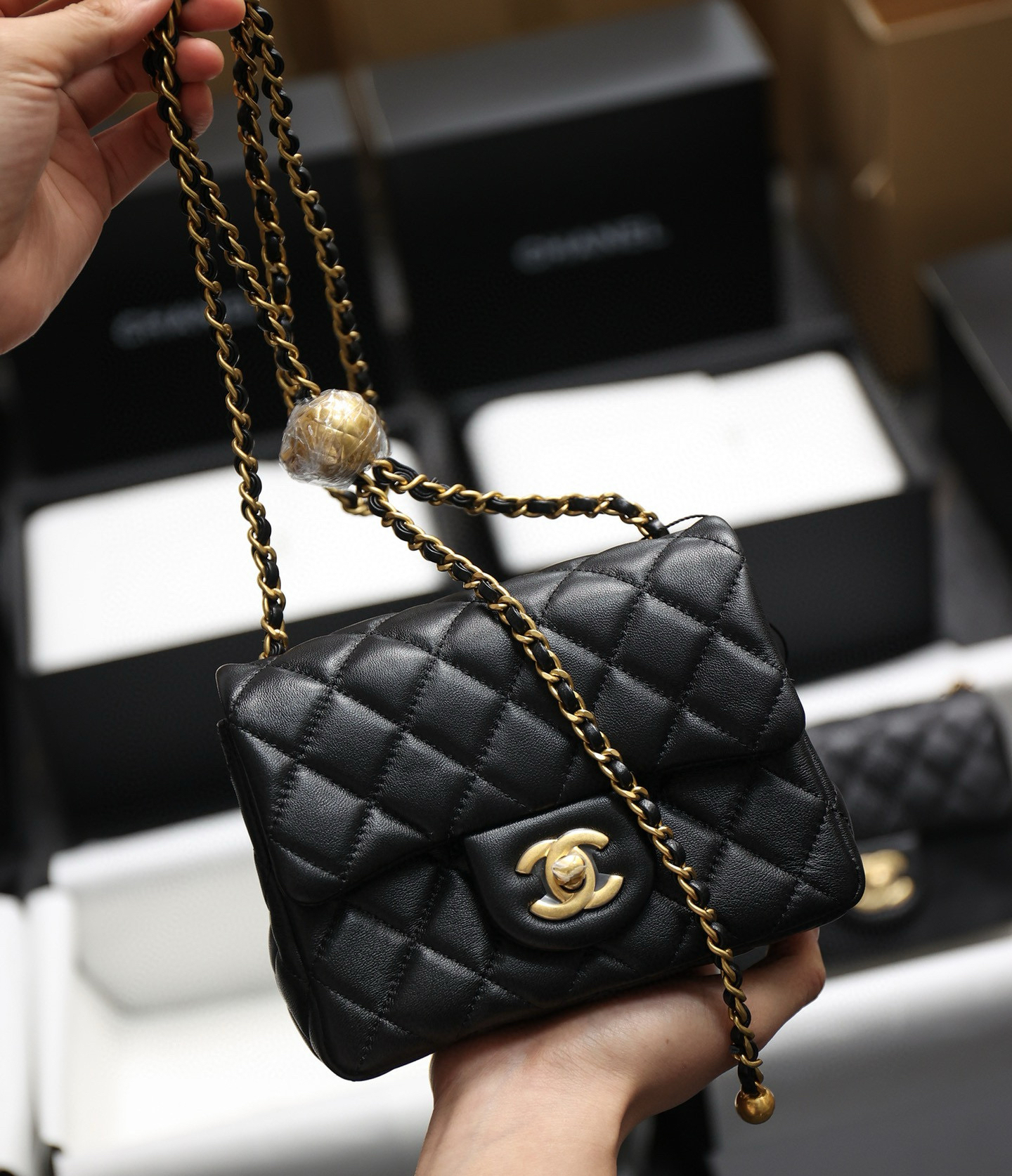 Chanel ClassicFlap 小金球口蓋包 Mini黑金