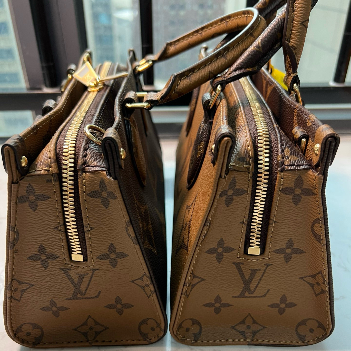 系列: Onthego 貨號:M46653 品質:正品級別 工藝:純手工製作 款式:單肩 / 斜挎/手拎 皮質:塗層 / 老花 尺寸:25.0*13.0*10.0CM 版本:免檢版(符合國際貿易相關質檢標準) 材質:Monogram帆布/金屬扣具 官網發售價:$3300 簡介: 頂級復刻高仿路易威登Louis Vuitton Loop系列月牙包——法式潮流,輕盈新風 我們,深耕高端復刻行業20年的全鏈路工廠,以精湛工藝完美重現路易威登(Louis Vuitton)Loop系列月牙包的法式魅力與現代風範。作為業界唯一一家集五金模具開發、皮料復刻與整包成型於一體的製造商,我們以正品實物拆解為藍本,精雕細琢,1:1還原Loop系列的每一處細節,打造兼具時尚設計與實用功能的奢華單品。 匠心細節,極致復刻 每一只Loop系列月牙包,從五金拉鍊與扣件到皮料質感,無不體現我們對極致品質的追求。自主研發的五金模具,確保標誌性的LV金屬標誌與拉鍊的重量、光澤與順滑手感與正品一致,細節精緻且耐用;精選高品質皮料,完美復現Monogram帆布或小牛皮的細膩觸感與高級質感,搭配Loop系列獨特的月牙形設計,散發法式潮流氣息;車線走位精準勻稱,包型結構輕盈流暢,忠實還原Loop月牙包標誌性的半月形廓形與現代化線條,兼具時尚美學與實用容量。 全鏈路掌控,品質無瑕 憑藉20年的行業積澱,我們嚴格把控從選材到成品的每一道工序,確保每一只Loop月牙包都能達到近乎正品的品質水準。無論是標準尺寸或多樣化的配色與材質選擇,我們都能為您呈現Loop系列的獨特氣質,完美適配日常通勤、休閒出行或潮流搭配,展現現代女性的優雅與個性。 潮流奢華,觸手可及 Loop系列月牙包以其輕盈的半月形設計與LV經典元素成為品牌時尚焦點,我們的頂級復刻讓您以更親民的價格,盡享正品般的奢華體驗。無論是肩背的隨性優雅,還是斜挎的時尚氣場,這款包都將成為您彰顯品味與個性的完美選擇。 選擇我們,選擇極致還原的Loop系列月牙包藝術,讓法式潮流與奢華魅力在您手中綻放無限光芒!正品vs我們家
