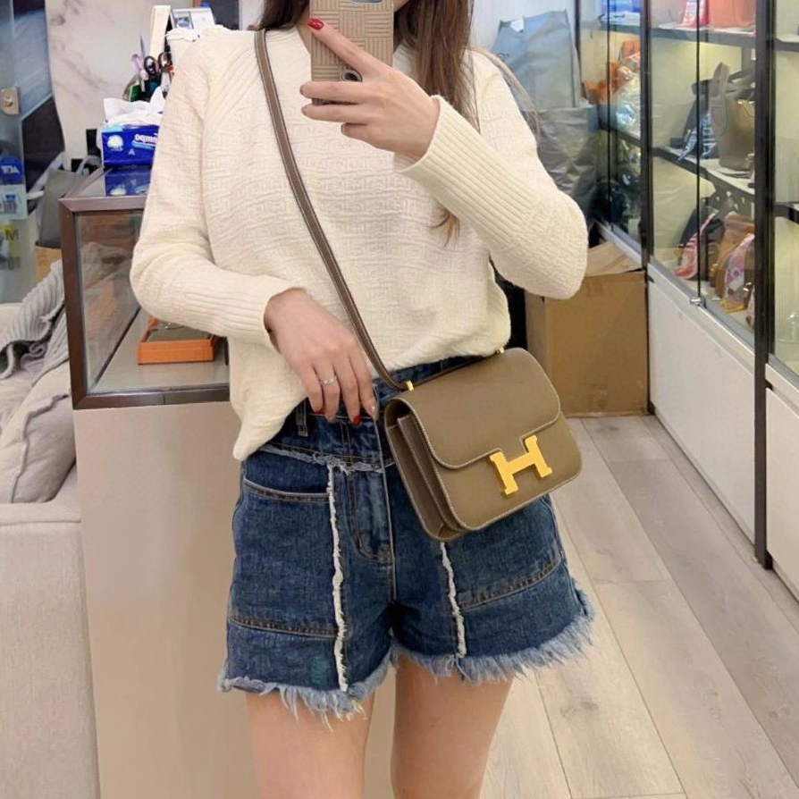 系列:Hermes-Constance 品質:正品100%級 貨號:H083905CC18 工藝:純手工打造 款式:斜挎 / 單肩 尺寸:19.0*15.0*4.0CM 材質:Epsom皮 / 金屬釦具 皮質:正品開料工廠皮 / 手掌紋 / 公牛皮 官網發售價:$18000 簡介: Hermes包包中Constance19是以原版開模純手工復刻製作的頂級版本,同時全鋼包包最大的特點是優化細節處理,保障了在對比市面上劣質版本脫穎而出,而對比原裝正品是做到了100%無限還原的狀態.這一隻Constance19系列黑色之中作為經典款式配備了金屬釦具,開合包釦的H字母到簡單的金屬護橋,原單高仿在製作過程中通過酸堿性測試還原基本K金色澤,不氧化不掉色.打磨拋光後的手感更為精緻. 包體的尺寸標準達到了19.0*15.0*4.0CM,和專櫃同步一致的尺寸,並非沒有任何一點誤差.而皮革是最能夠突出天花板頂級工藝,原單復刻包包獨家私人定製採用了Hermes官方原版渠道-Epsom皮是一種成年公牛皮,其屬性是皮革硬朗有質感.後續通過機器印壓的達到了細膩紋路,色澤光鮮亮麗,被眾多女士稱為手掌紋.其中每一處的紋路都是錯亂的表現,但顆粒之中凸起的皮革才是精髓所在.可比對專櫃原有皮革. 而市面上其他版本使用的人造皮革反而是粗糙,沒有色澤表現,容易出現掉皮缺陷.高仿包包最值得推薦購買純手工製作的包袋,主要的原因是縫線細節處理是同步原版一致手工縫製工藝.天花板版本杜絕使用車機縫製,雖然以美觀為主,但車機過於標準與正品不符.純手工使用進口油蠟棉線縫製,每一針的穿孔再到斜邊縫線都是博物館級1:1還原了專櫃細膩的手法和標準的製作過程.眾多細節實拍圖片敬請瀏覽細節與上身