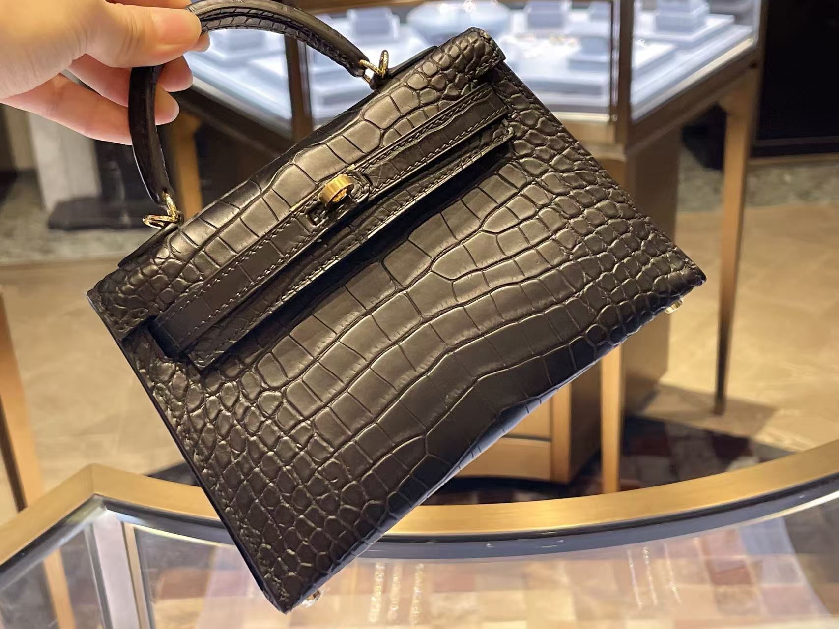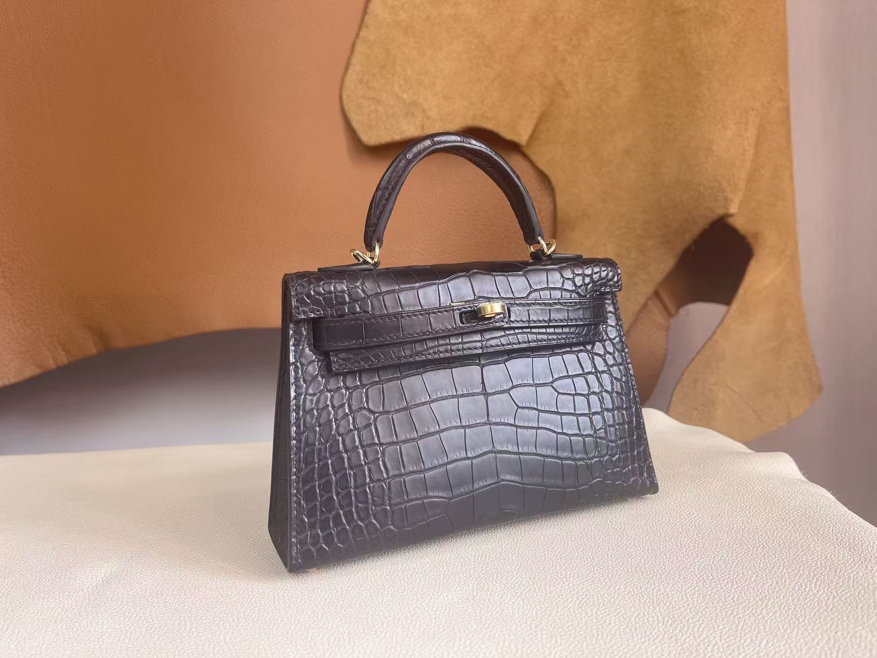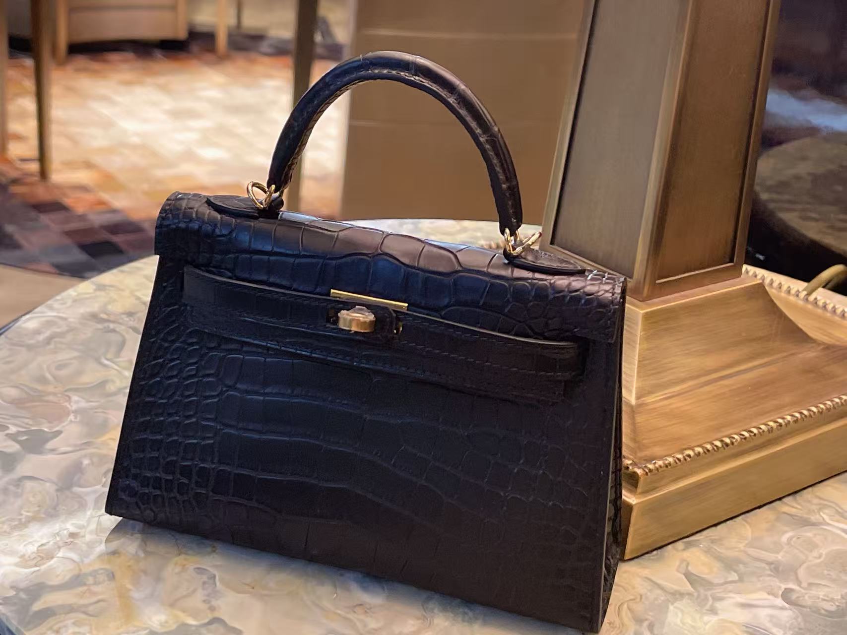 系列:Hermes-Kelly 貨號:H071324CC89 品質:正品100%級 工藝:純手工打造 款式:手提 尺寸:19.0*6.0*12.0CM 皮質:鱷魚皮/crocodile skin 包裝清單:防塵袋/原盒/鎖/鑰匙 閉合方式:金扣 官網發售價格:$90500 Hermès Kelly 二代「黑金」鱷魚皮——材質與工藝鑑賞 經典定位 Kelly 二代延續標誌性梯形翻蓋與頂柄結構,線條利落。黑色皮面配金色五金(Gold Hardware)呈現高對比的典雅氣場。 材質特徵(Crocodile) • 多見於**尼羅鱷(Niloticus)或海水鱷(Porosus)**等珍稀皮料;鱗片細密、排列規整,中部較大、邊緣逐漸細小。 • 在光影下呈現細緻鏡面感與層次反光,同一塊皮面常見明暗雙色效果。 • 皮面邊緣微見毛孔點位與天然紋理,是珍稀皮的識別特徵之一。 • 合法流通需附帶CITES文件;保養、轉移或跨境運輸時務必留存憑證。 五金與工藝 • 金色五金經拋光電鍍,色澤溫潤,與黑皮對比鮮明。 • 馬鞍手縫(Saddle Stitch)針腳均勻,轉角收邊緊實;Sellier(內縫)線條更利落,Retourne(外翻)更圓潤。 • 邊油層層疊塗與拋光,轉角光潔,包身挺括。 佩戴與容量 25尺寸兼顧手提與肩/斜背,日常卡夾、手機、小化妝品可有序收納。 保養要點 避免水跡與高溫曝曬;深淺色搭配需注意染色轉移;長期收納以防潮袋與填充紙保持挺度。