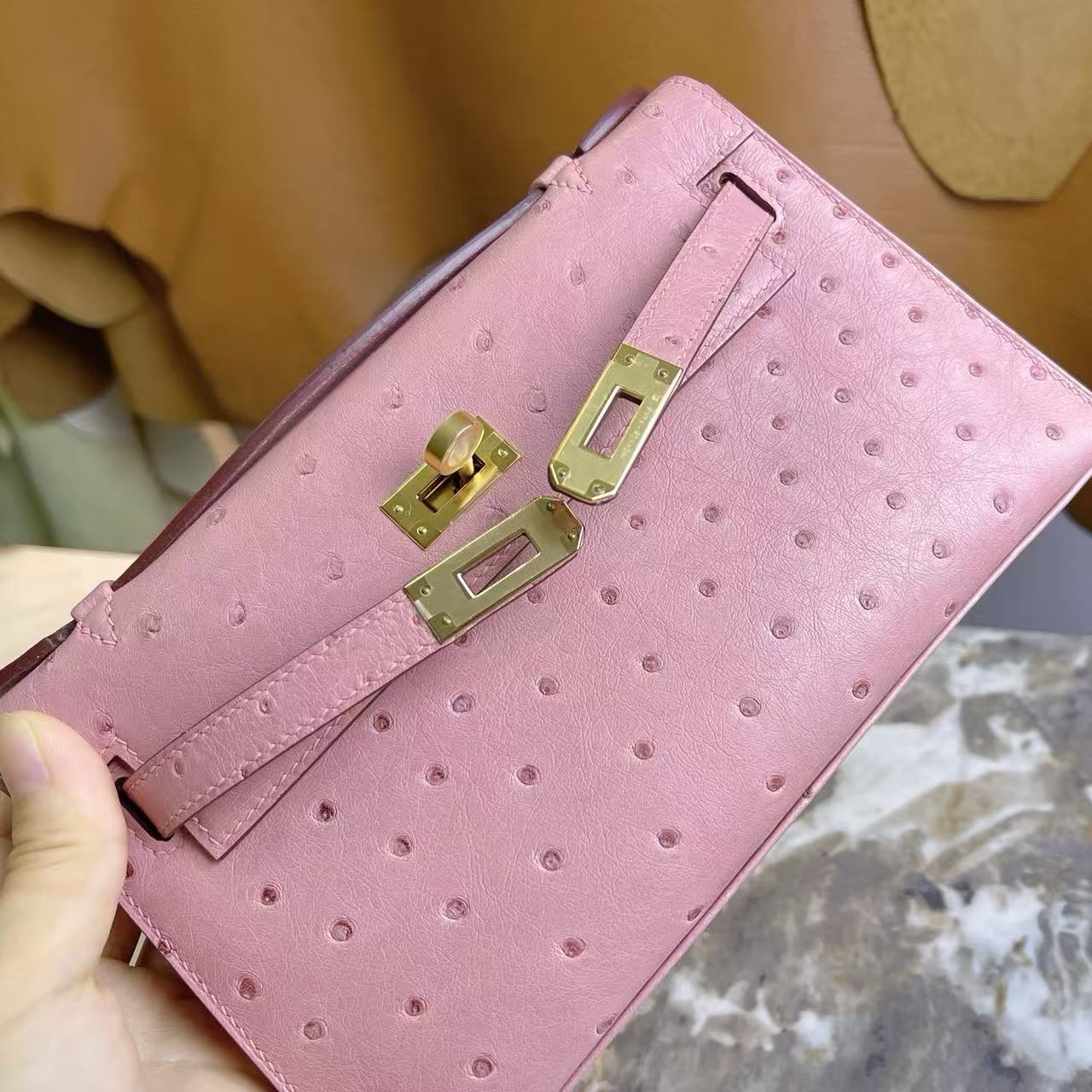 系列:Hermes-Kelly 貨號:H049417CK3Q 品質:正品100%級 工藝:純手工打造 款式:單肩/手提 尺寸:22.0*7.0*13.0CM 皮質:Swift牛皮 包裝清單:防塵袋/原盒/鎖/鑰匙 閉合方式:銀扣 官網發售價格:$20900 愛馬仕 Kelly I —— 鴕鳥皮陶瓷粉,細膩優雅的永恆經典 經典定位 Kelly 一代以標誌性的梯形翻蓋與單柄結構,將「優雅」與「力量」合二為一。陶瓷粉色調溫柔而不失氣場,獨特的皮質更添珍稀感。 材質特徵(Ostrich Leather) • 鴕鳥皮最具辨識度的特點是皮面上均勻分布的羽毛孔點,呈現天然的立體感。 • 在光影下,陶瓷粉色與鴕鳥皮的細膩毛孔相互映襯,展現出如珠寶般的啞光光澤。 • 皮質柔韌而耐用,相比其他珍稀皮革更不易刮痕,屬於日常實用度極高的珍稀材質。 五金與工藝 • 金屬件選用精緻拋光處理,與溫柔色調相呼應,低調而細緻。 • Kelly 一代經典的單根肩帶設計,搭配手工馬鞍針縫製,每一針每一線都散發精緻與穩定感。 • 包身邊緣以層層邊油修飾,轉角流暢而圓潤,確保整體線條挺括有力。 佩戴與容量 25 尺寸(常見 Kelly 小號規格),既能手提展現幹練氣質,也可肩背增添靈動優雅。容量足以收納日常必備小物,兼顧美感與實用。 保養要點 鴕鳥皮雖耐刮,但需避免長時間陽光直射以防色澤變化。建議存放時以防塵袋保存,並保持乾燥環境,延續皮質的細膩光澤。 結語 Hermès Kelly 一代鴕鳥皮陶瓷粉,是柔美與珍稀的交融。粉色的溫婉與鴕鳥皮的獨特肌理,共同勾勒出一份低調卻難以忽視的氣場,堪稱高級皮具中的永恆典範。