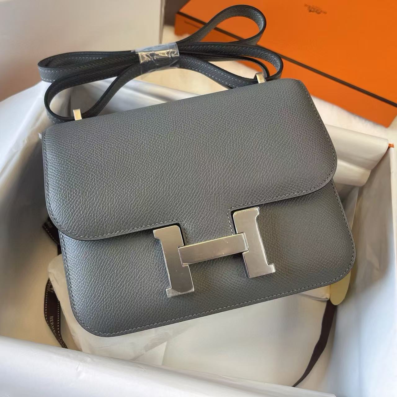 Hermès Constance —— 優雅與隨性兼具的現代經典 基本信息 系列:Constance 貨號:H056347CK8F 品質:正品 100% 級 工藝:純手工打造 款式:單肩 / 斜挎 尺寸:25.0 * 7.0 * 17.0 cm 材質:鈀金 Palladium 包裝清單:防塵袋 / 原盒 / 鎖 / 鑰匙 閉合方式:閉合鎖扣 官網發售價格:$34000 ⸻ 經典定位 Hermès Constance(康康包)自 1969 年問世以來,以標誌性的 “H” 扣環聞名。與 Kelly、Birkin 並列為 Hermès 三大經典,其俐落長方比例與肩背設計,兼具 優雅氣質 與 日常實用。它既可彰顯身份,又帶著一份不經意的隨性,堪稱 Hermès 中最具「法式時髦感」的包款。 ⸻ 材質特徵(Lizard Skin) • 蜥蜴皮以細密對稱的鱗片聞名,紋理天然精緻,極具收藏價值。 • 在光影下,蜥蜴皮會散發低調而閃爍的光澤,與 Constance 的簡約線條完美契合。 • 皮質堅韌卻輕盈,適合日常使用,同時因稀有性而顯得獨一無二。 ⸻ 五金與工藝 • 選用 Hermès 經典鈀金五金,光澤冷冽,搭配蜥蜴皮的細膩紋理,更顯精緻。 • 標誌性 “H” 扣環,既是閉合結構也是設計焦點,體現 Hermès 簡約而永恆的設計語言。 • 全程手工馬鞍針縫製,邊緣以層層邊油修飾,確保結構挺括耐用。 ⸻ 佩戴與容量 Constance 25 尺寸,正好能收納手機、卡包、鑰匙與日常小物。單肩或斜挎都極為舒適,既能出席正式場合,也能融入日常通勤,兼顧美感與實用。 ⸻ 保養要點 蜥蜴皮需避免長時間受潮與高溫環境,建議存放於乾燥空間並置於防塵袋內。避免重壓與摩擦,以延續皮質的天然光澤。 ⸻ 結語 Hermès Constance 蜥蜴皮,不僅是一件包袋,更是一份時光積澱的藝術。獨特的 “H” 扣,搭配珍稀蜥蜴皮材質,將低調與高貴完美融合,成為 Hermès 愛好者與藏家心中不可替代的經典之作。