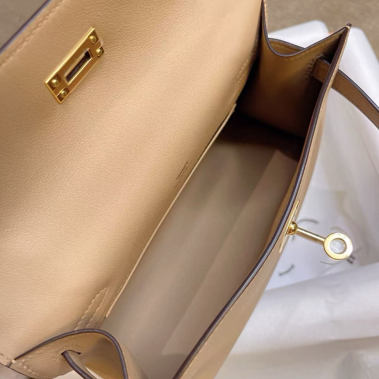 Hermès Kelly I —— 經典結構,優雅永恆 基本參數 • 系列:Kelly I • 貨號:H049417CC4B • 品質:正品 100% 級 • 工藝:純手工打造 • 款式:單肩 / 手提 • 尺寸:25.0 × 7.0 × 17.0 cm • 材質:鈀金 Palladium • 皮質:牛皮 Calf Leather • 包裝清單:防塵袋 / 原盒 / 鎖 / 鑰匙 • 閉合方式:銀扣 • 發售價格:$35,000 ⸻ 經典定位 Kelly 一代以標誌性的梯形翻蓋與單柄設計,將「力量」與「優雅」巧妙融合,成為 Hermès 經典系列中最具代表性的作品。作為一款跨越時代的包型,它不僅是時尚的象徵,更是身份與品味的展現。 材質特徵(Calf Leather) • 牛皮細膩柔韌,觸感溫潤舒適。 • 質地耐用,日常使用不易刮痕,實用度極高。 • 啞光質感低調含蓄,與包身的立體線條相得益彰。 五金與工藝 • 採用拋光處理的鈀金銀扣,經典而優雅。 • 全手工馬鞍針縫製,細節嚴謹,每一道縫線都蘊含工藝之美。 • 包身邊緣以多層邊油修飾,轉角圓潤流暢,線條挺括有型。 佩戴與容量 25 尺寸設計精巧,既可手提展現幹練氣質,也可肩背增添靈動優雅。容量足以容納日常隨身小物,在美感與實用間取得平衡。 保養要點 牛皮雖耐用,但仍需避免長時間受潮或曝曬。建議收納於防塵袋中,保持乾燥環境,延續皮質的自然光澤。 結語 Hermès Kelly 一代牛皮手袋,以經典設計與精緻工藝,詮釋了優雅不變的格調。它不僅是一只包,更是可以陪伴多年的傳世之作。