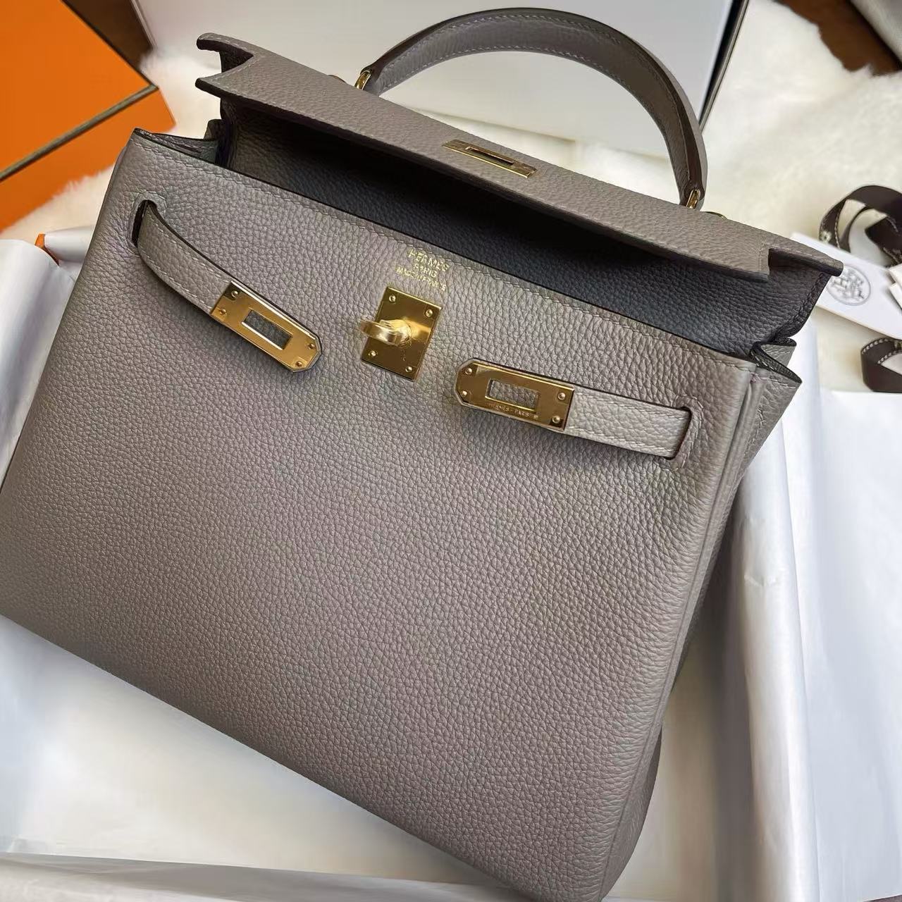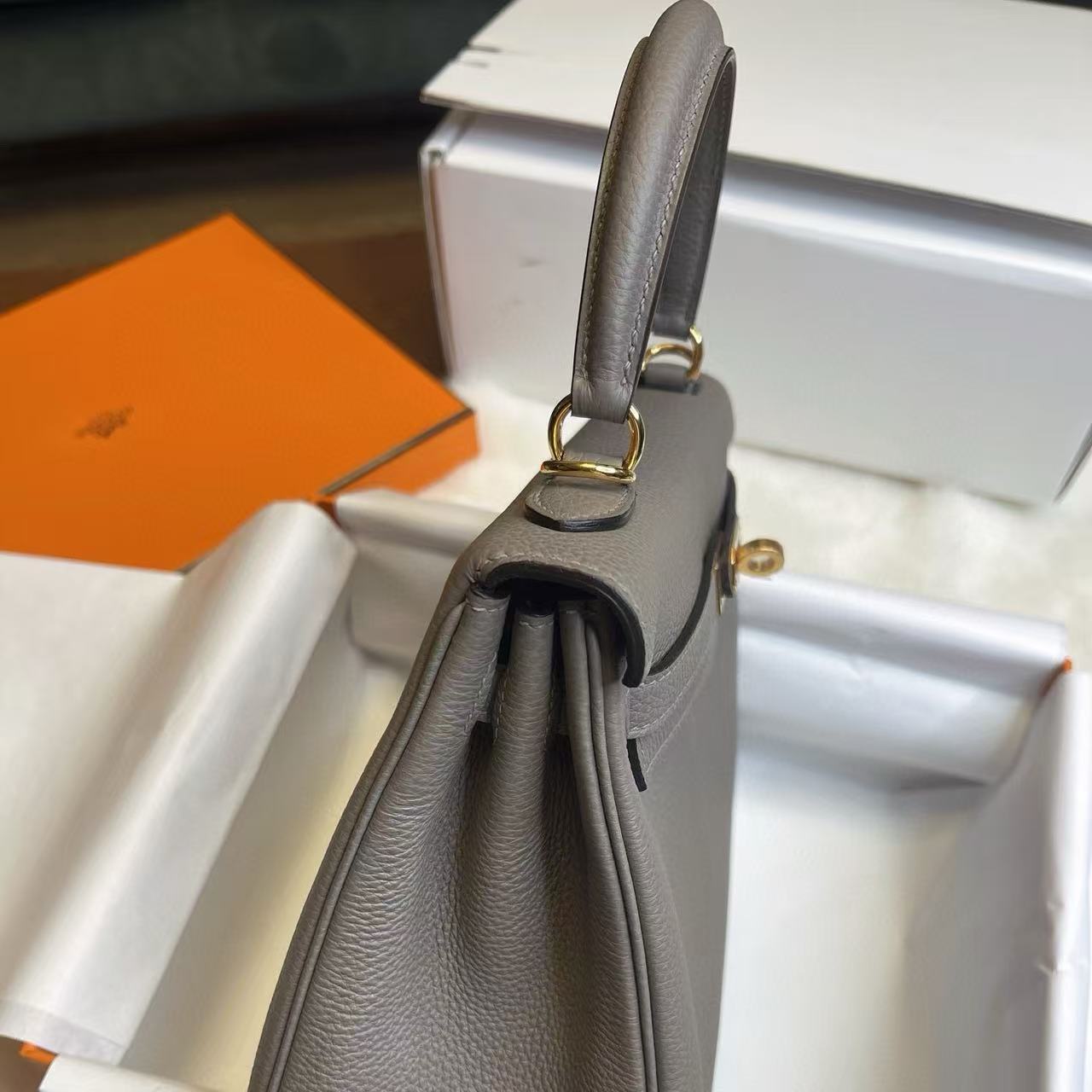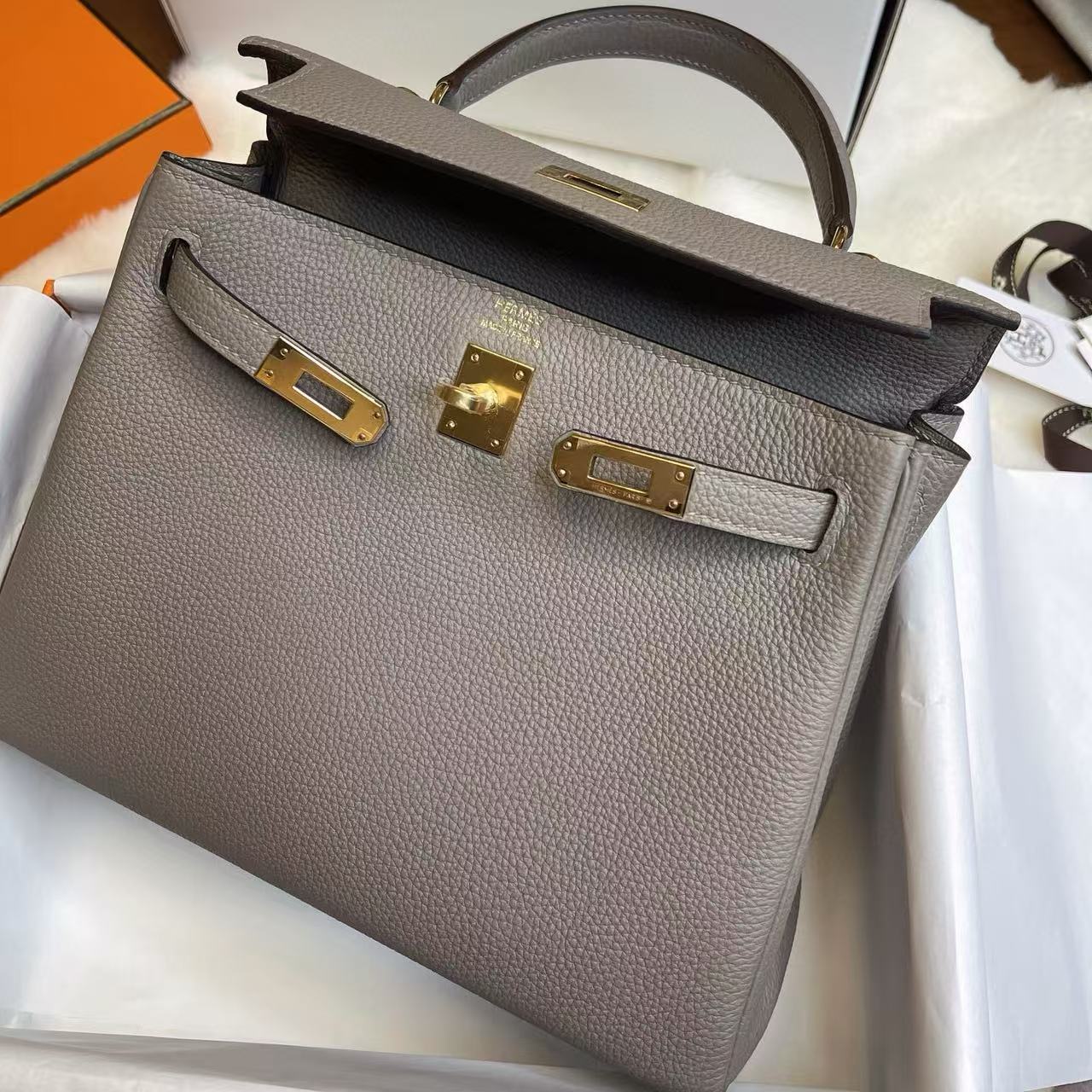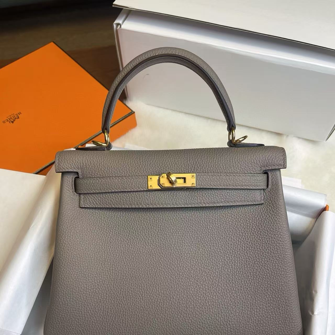 系列:Hermes-Kelly 貨號:H044624CC0L 品質:正品100%級 工藝:純手工打造 款式:手提 尺寸:25.0*17.0*7.0CM 皮質:EP皮 包裝清單:防塵袋/原盒/鎖/鑰匙 閉合方式:銀扣 官網發售價格:$21000 頂級復刻愛馬仕Kelly系列 —— 經典傳承,極致還原 我們,專注高端復刻行業二十餘年,以全鏈路工藝實力,重現Hermès Kelly系列的經典優雅。作為少數同時掌握五金模具研發、珍稀皮料復刻與整包成型的製造商,我們以正品實物為依據,精益求精,1:1呈現Kelly系列的高貴氣質與經典細節,帶來觸手可及的傳世之作。 匠心工藝,極致細節 Kelly系列以其標誌性的梯形包身與優雅翻蓋聞名於世。我們在復刻中最大限度還原: • 五金細節:自主研發Kelly扣件,無論是銀扣的冷冽質感還是金扣的溫潤光澤,皆與正品高度一致。 • 皮料選材:從Togo、Epsom到蜥蜴皮、鱷魚皮,每一種皮料的紋理與手感都經過嚴格把控,完美呈現Kelly的珍稀質感。 • 結構工藝:法式手工縫線精準均勻,邊油細膩,包型挺括優雅,充分體現Hermès一貫的高級定制精神。 全鏈路掌控,無瑕品質 從皮料鞣製到五金開模,再到整體組裝,每一環節我們都層層把關,確保每一只Kelly復刻包都能經受時間與挑剔眼光的檢驗。無論是小巧俐落的Kelly 25,還是大方實用的Kelly 32、35,都能以極致工藝忠實還原其雋永氣質。 優雅典範,觸手可及 作為Hermès最具代表性的經典包款之一,Kelly系列承載的不僅是時尚與奢華,更是一種優雅與力量的象徵。我們的頂級復刻,讓您以親民的方式即可體驗到近乎正品的質感,無論是手提、肩背,還是出席日常或宴會,Kelly系列都將成為您身份與氣場的最佳註腳。 選擇我們,選擇對Hermès Kelly系列的極致還原,讓經典與優雅隨行,永不過時。