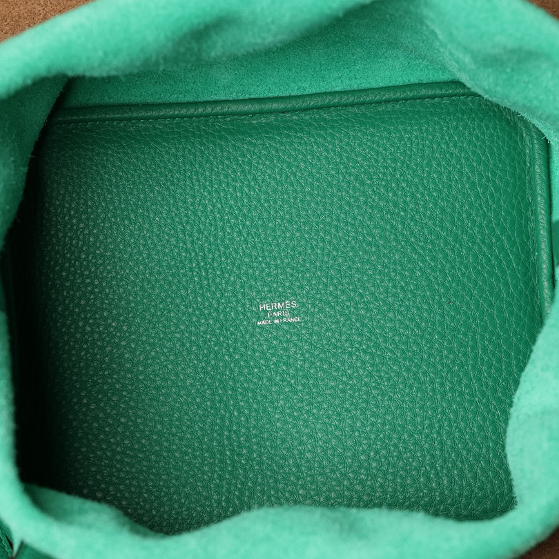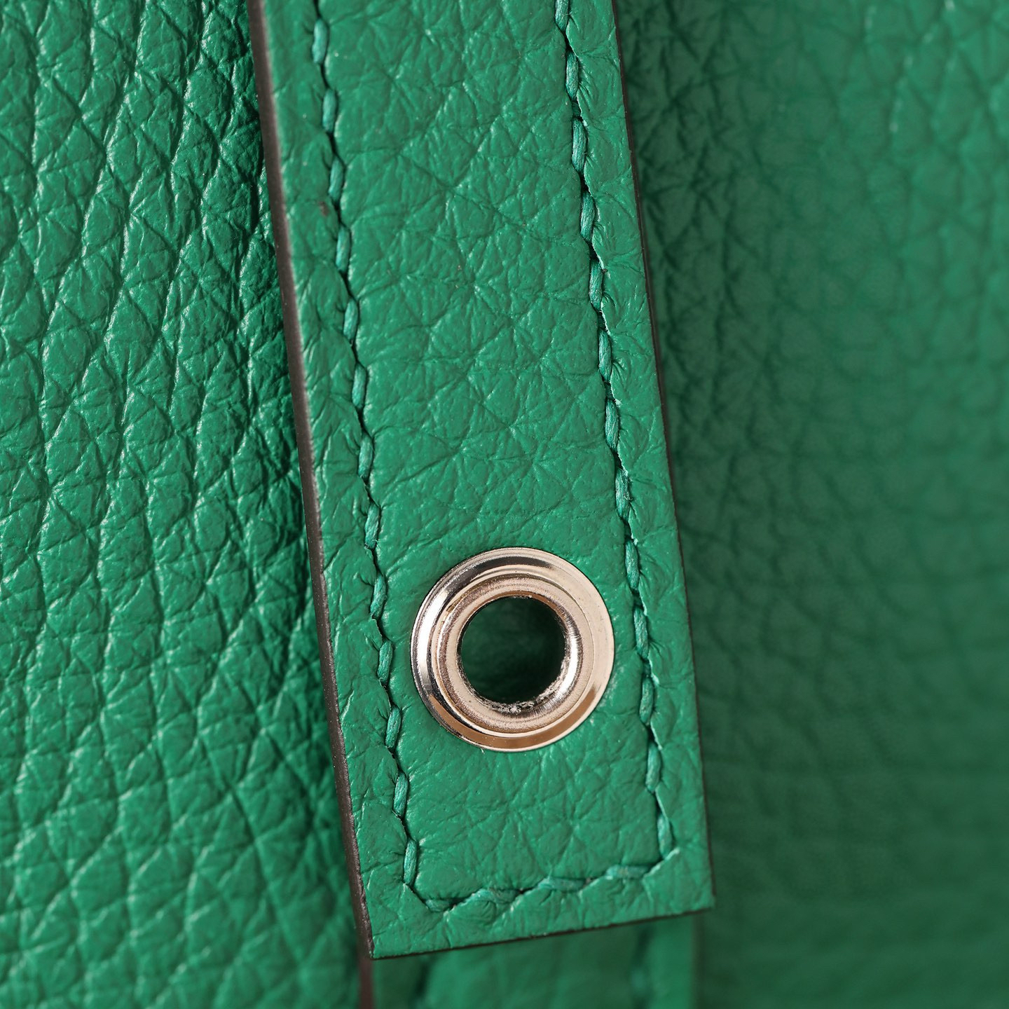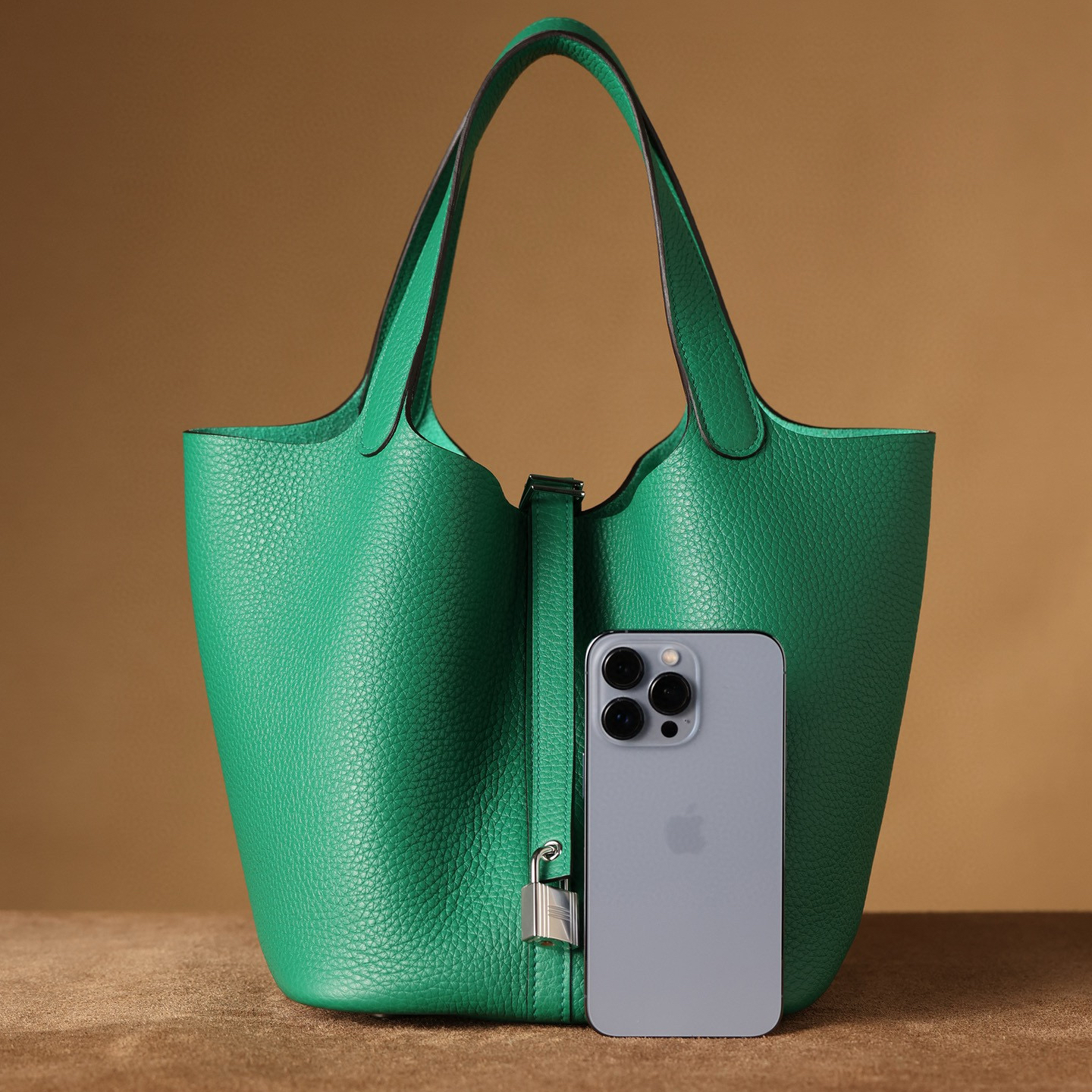 系列:Picotin Lock 款式:手拎 / 手提 尺寸:22.0 x 21.0 x 17.0 厘米 材質:Taurillon Clemence 公牛皮 五金:金屬釦具 工藝解析 此款手提包延續經典水桶輪廓,透過精準的手工縫製展現立體結構。包身採用整張皮革塑形,無需內部框架支撐即能保持優雅廓形,體現對材料特性的深刻掌握。標誌性鎖扣裝置經過精密計算,與皮革開口完美契合,確保使用時的順暢手感與視覺平衡。 細節賞析 皮料:精選Taurillon Clemence公牛皮,天然顆粒紋理細膩均勻,絲絨綠色調深邃典雅。這種皮革隨著使用時間會逐漸軟化,形成個人化的使用痕跡。 縫線:均勻緻密的手工縫線沿包身輪廓延伸,轉角處的加固處理展現實用美學。每英寸針數保持一致,展現精湛的手工技藝。 五金:鎖扣採用拋光金屬製作,銀色光澤清冷雅致,邊緣經過圓滑處理。五金件與皮革的接合處處理整潔,體現對細節的關注。 結構:開放式頂部設計搭配兩側收褶,創造出隨性而優雅的線條。加寬的包底確保站立穩定性,同時提供充足的收納空間。 風格與氣質 Picotin Lock 22以適中的尺寸與絲絨綠深邃色調,展現獨特優雅氣息。絲絨綠的神秘色澤搭配冷色調金屬配件,呈現出與眾不同的視覺效果。其典雅的造型語言能夠融入多種穿搭風格,從休閒裝束到正式場合皆能自然搭配,傳遞出獨特的品味主張。 這款手提包體現了現代奢侈品對實用功能的重視,其設計哲學強調在日常使用中展現低調優雅。對於追求品質生活的鑑賞家而言,它代表了對經典設計的當代理解。