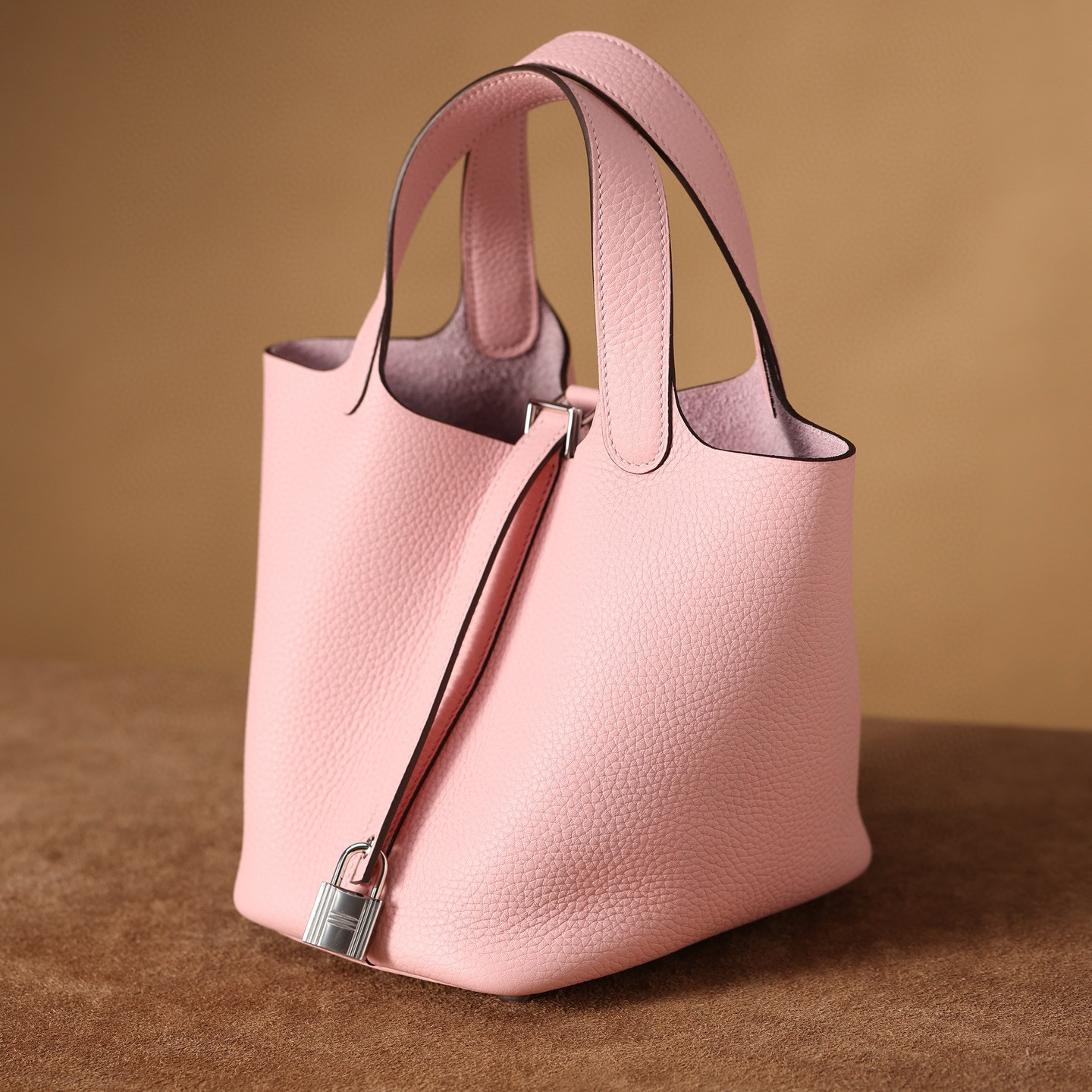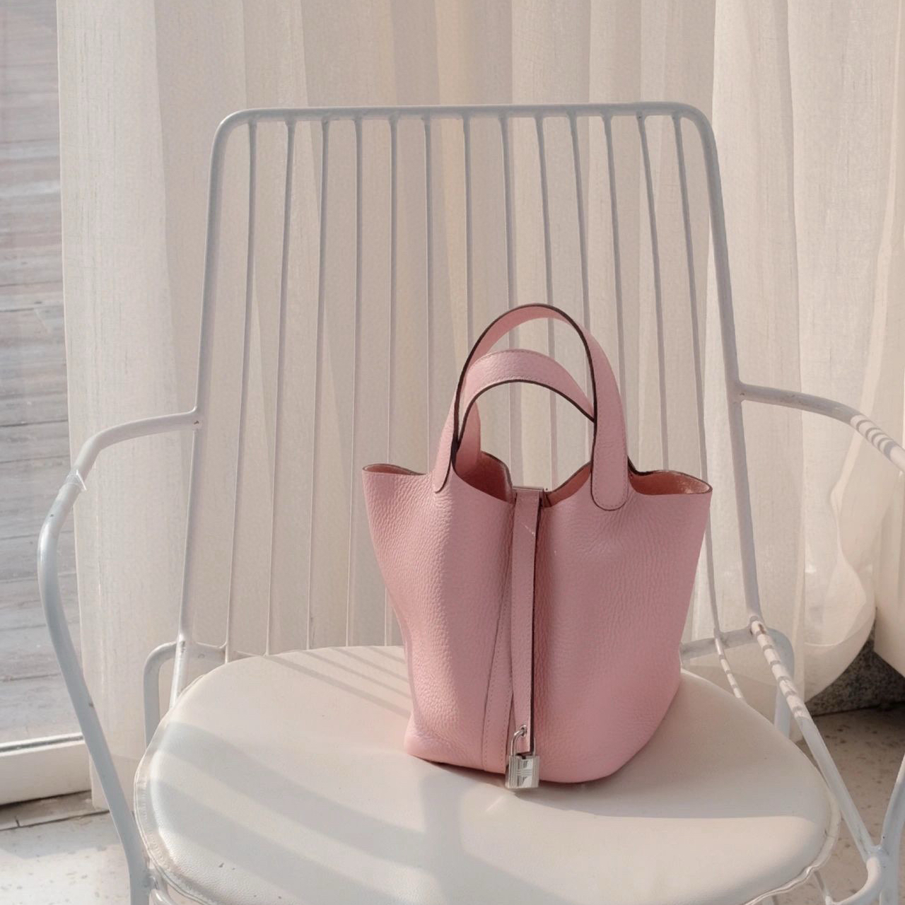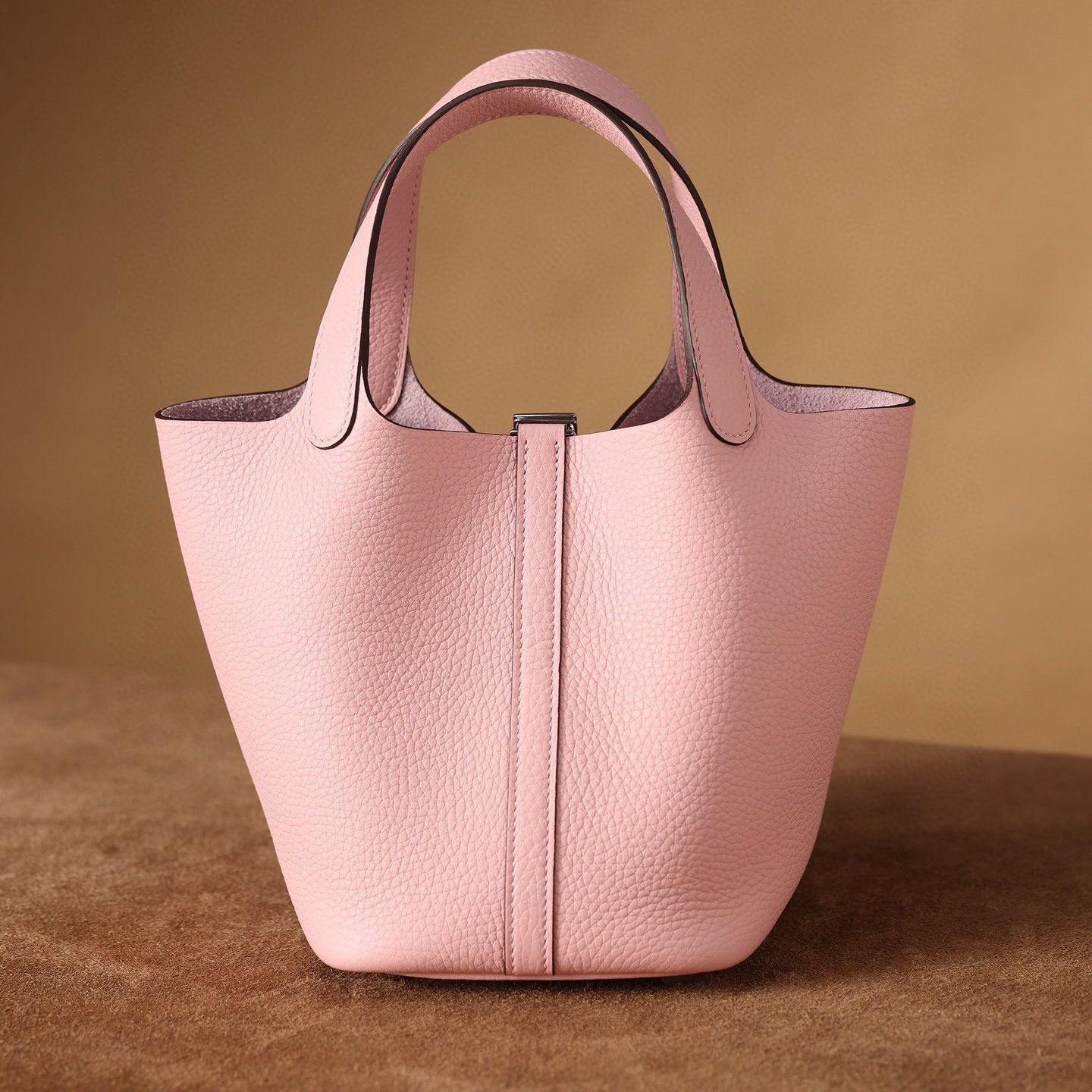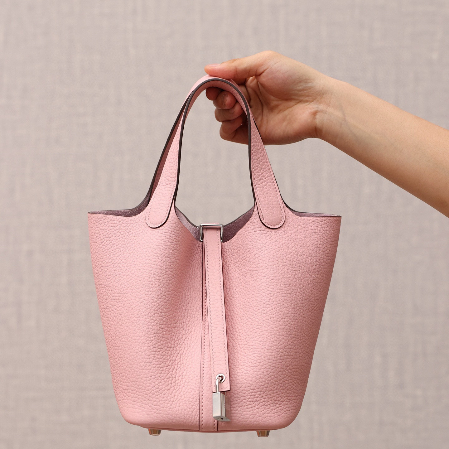 系列:Picotin Lock 款式:手拎 / 手提 尺寸:18.0 x 19.0 x 13.5 厘米 材質:Taurillon Clemence 公牛皮 五金:金屬釦具 工藝解析 此款手提包延續經典水桶輪廓,透過精準的手工縫製展現立體結構。包身採用整張皮革塑形,無需內部框架支撐即能保持優雅廓形,體現對材料特性的深刻掌握。標誌性鎖扣裝置經過精密計算,與皮革開口完美契合,確保使用時的順暢手感與視覺平衡。 細節賞析 皮料:精選Taurillon Clemence公牛皮,天然顆粒紋理細膩均勻,櫻花粉色調柔美典雅。這種皮革隨著使用時間會逐漸軟化,形成個人化的使用痕跡。 縫線:均勻緻密的手工縫線沿包身輪廓延伸,轉角處的加固處理展現實用美學。每英寸針數保持一致,展現精湛的手工技藝。 五金:鎖扣採用拋光金屬製作,銀色光澤清冷雅致,邊緣經過圓滑處理。五金件與皮革的接合處處理整潔,體現對細節的關注。 結構:開放式頂部設計搭配兩側收褶,創造出隨性而優雅的線條。加寬的包底確保站立穩定性,同時提供充足的收納空間。 風格與氣質 Picotin Lock 18以精緻的尺寸與櫻花粉柔美色調,展現獨特優雅氣息。櫻花粉的溫柔色澤搭配冷色調金屬配件,呈現出浪漫精緻的視覺效果。其精巧的造型語言能夠融入多種穿搭風格,從休閒裝束到正式場合皆能自然搭配,傳遞出獨特的品味主張。 這款手提包體現了現代奢侈品對實用功能的重視,其設計哲學強調在日常使用中展現低調優雅。對於追求品質生活的鑑賞家而言,它代表了對經典設計的當代理解。