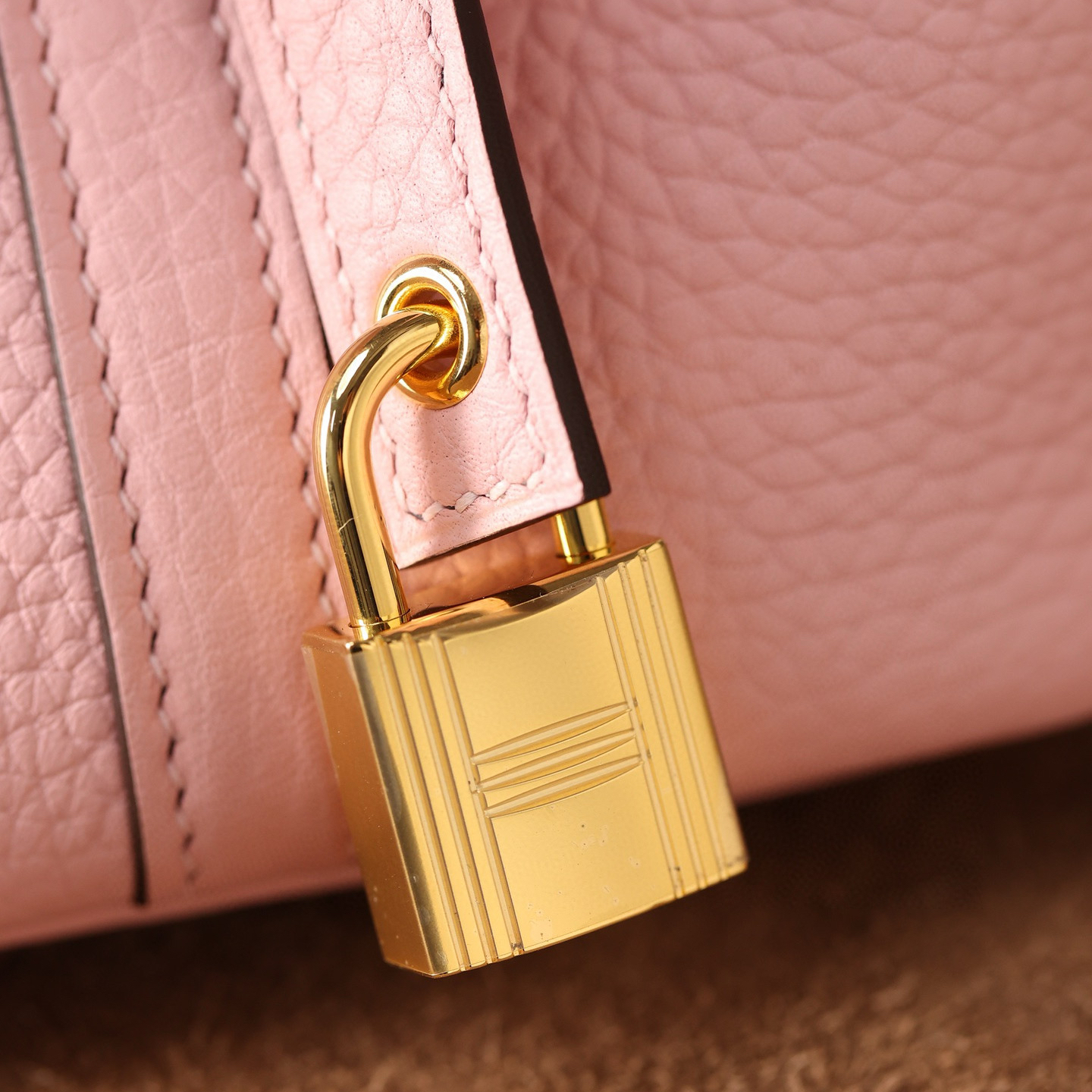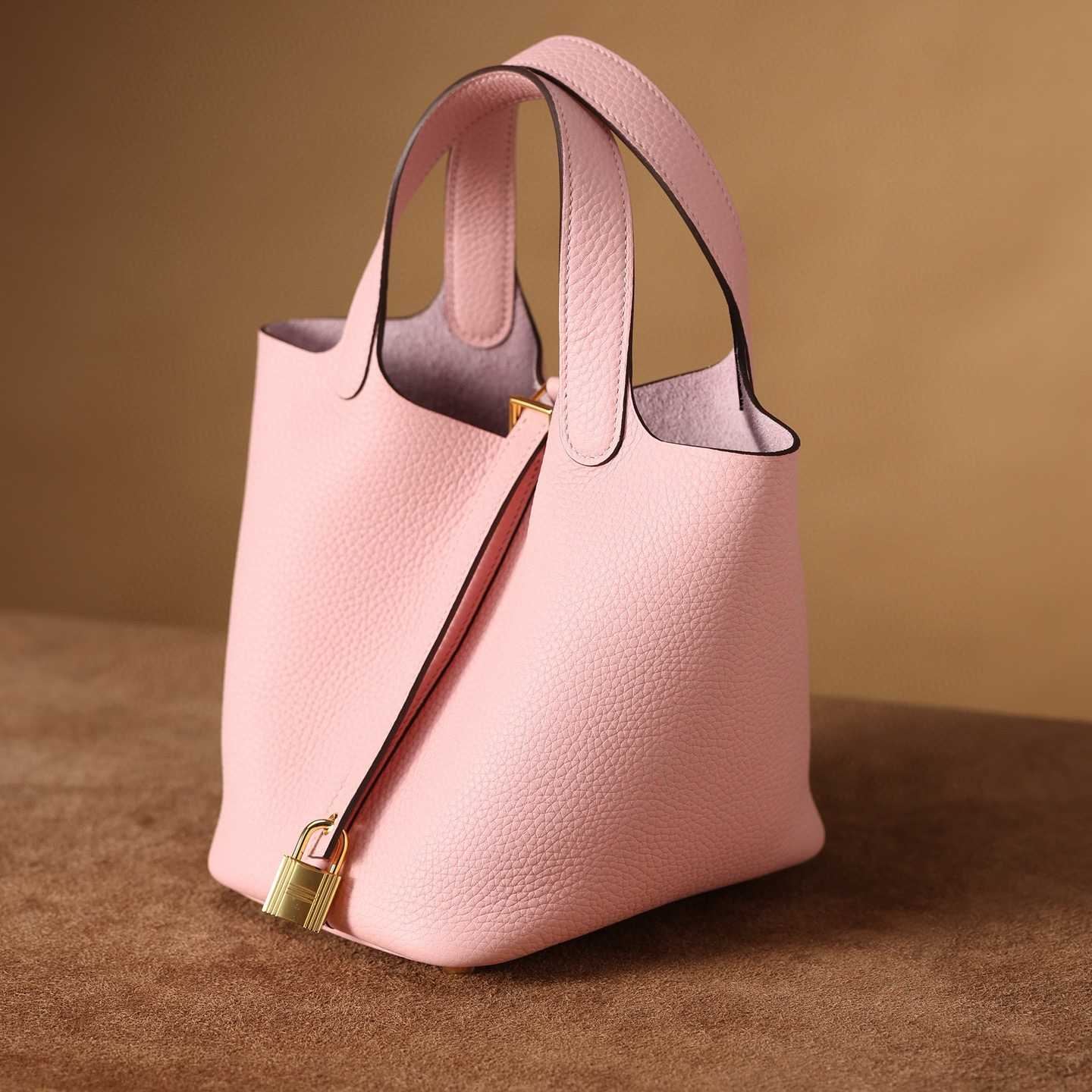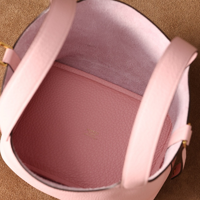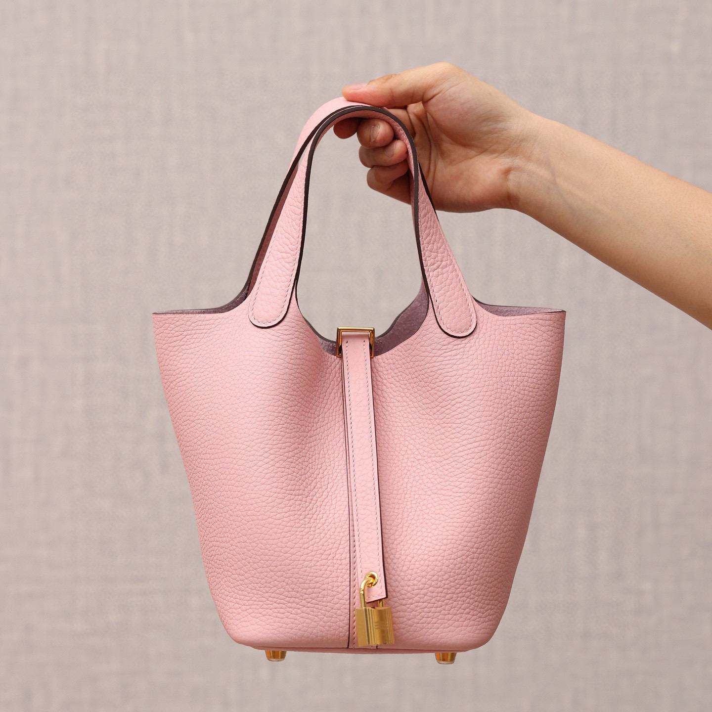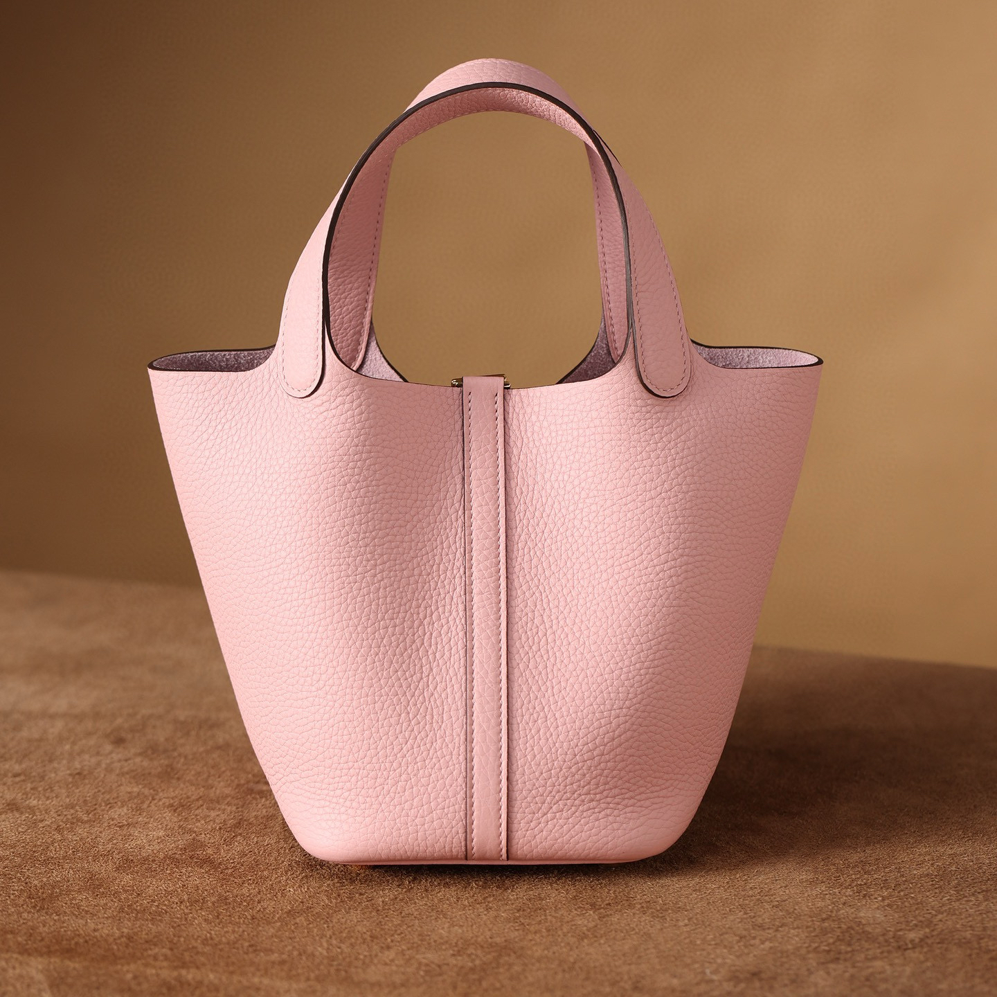 系列:Picotin Lock 款式:手拎 / 手提 尺寸:18.0 x 19.0 x 13.5 厘米 材質:Taurillon Clemence 公牛皮 五金:金屬釦具 工藝解析 此款手提包延續經典水桶輪廓,透過精準的手工縫製展現立體結構。包身採用整張皮革塑形,無需內部框架支撐即能保持優雅廓形,體現對材料特性的深刻掌握。標誌性鎖扣裝置經過精密計算,與皮革開口完美契合,確保使用時的順暢手感與視覺平衡。 細節賞析 皮料:精選Taurillon Clemence公牛皮,天然顆粒紋理細膩均勻,櫻花粉色調柔美典雅。這種皮革隨著使用時間會逐漸軟化,形成個人化的使用痕跡。 縫線:均勻緻密的手工縫線沿包身輪廓延伸,轉角處的加固處理展現實用美學。每英寸針數保持一致,展現精湛的手工技藝。 五金:鎖扣採用拋光金屬製作,金色光澤溫暖雅致,邊緣經過圓滑處理。五金件與皮革的接合處處理整潔,體現對細節的關注。 結構:開放式頂部設計搭配兩側收褶,創造出隨性而優雅的線條。加寬的包底確保站立穩定性,同時提供充足的收納空間。 風格與氣質 Picotin Lock 18以精緻的尺寸與櫻花粉柔美色調,展現獨特優雅氣息。櫻花粉的溫柔色澤搭配溫暖色調金屬配件,呈現出浪漫精緻的視覺效果。其精巧的造型語言能夠融入多種穿搭風格,從休閒裝束到正式場合皆能自然搭配,傳遞出獨特的品味主張。 這款手提包體現了現代奢侈品對實用功能的重視,其設計哲學強調在日常使用中展現低調優雅。對於追求品質生活的鑑賞家而言,它代表了對經典設計的當代理解。