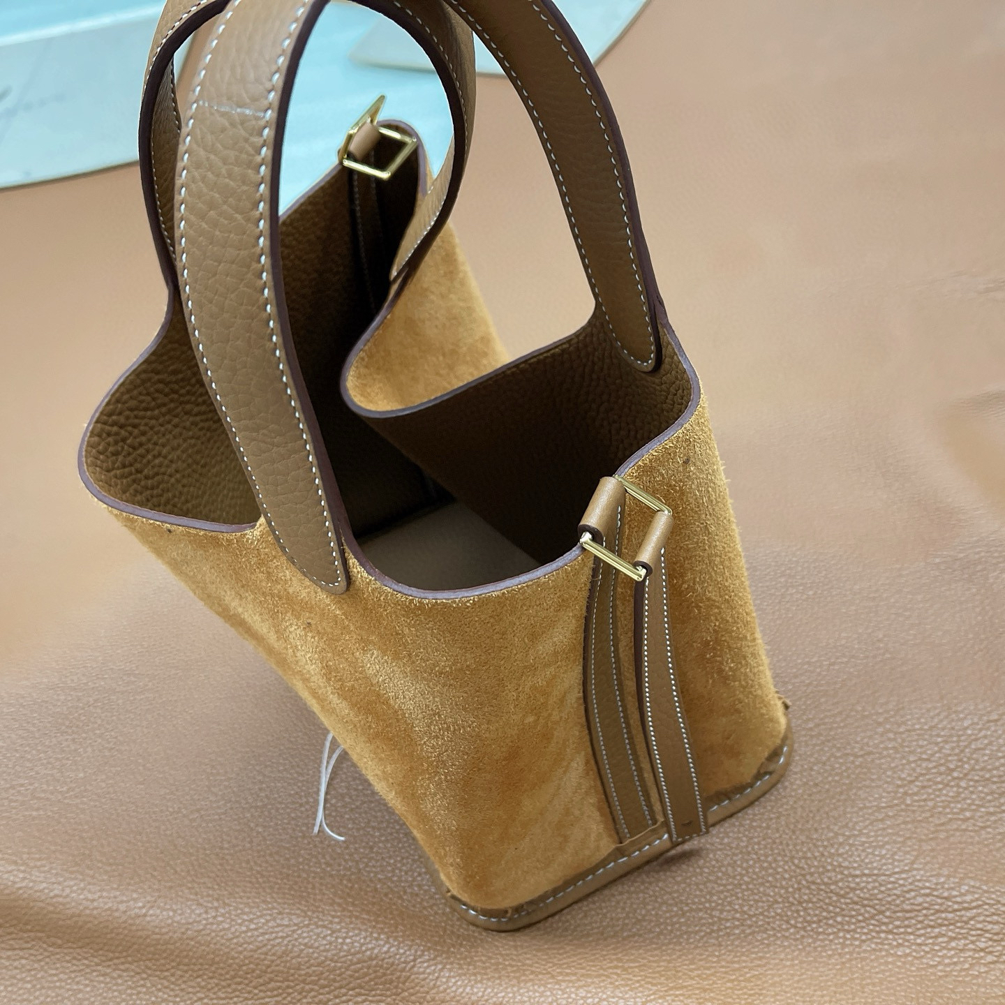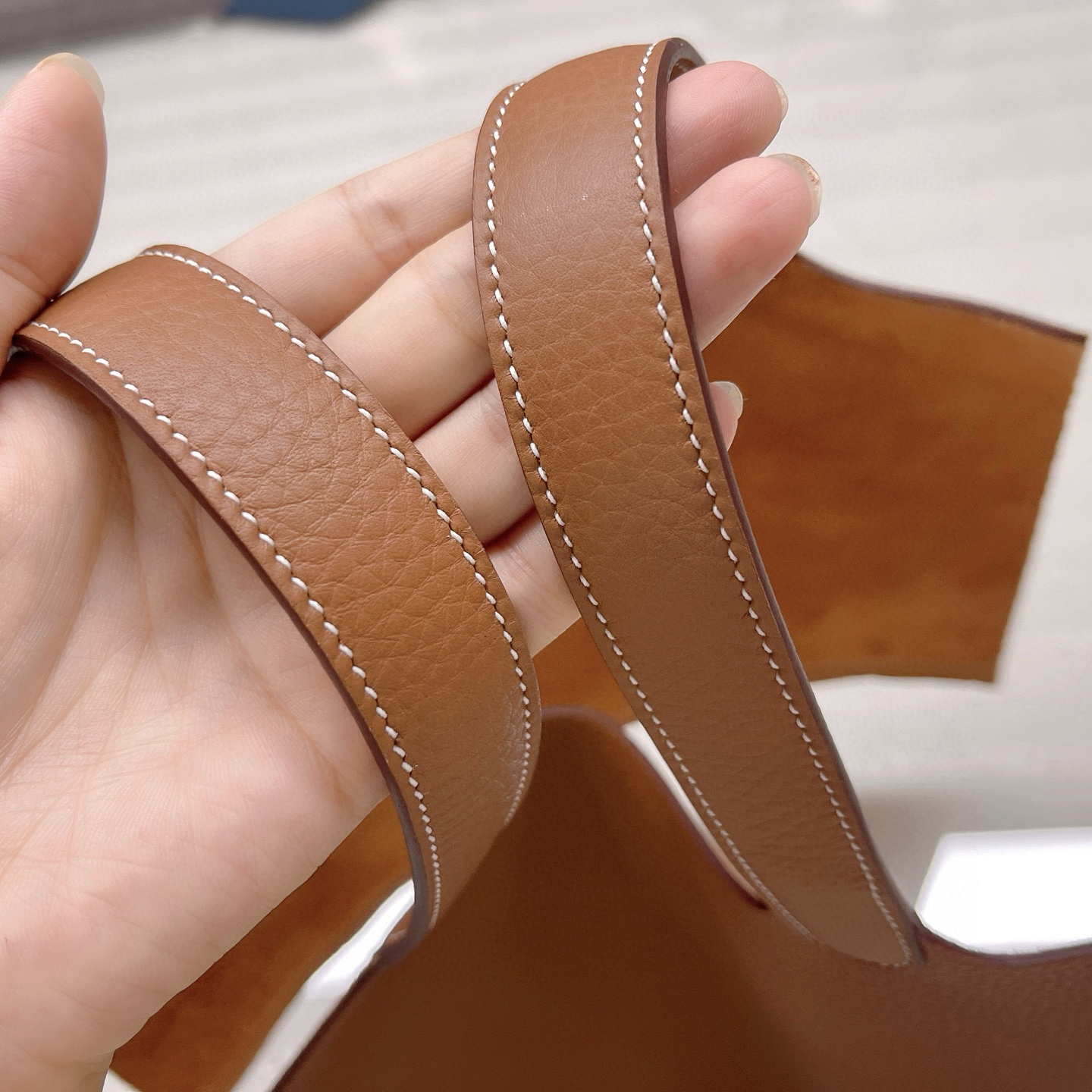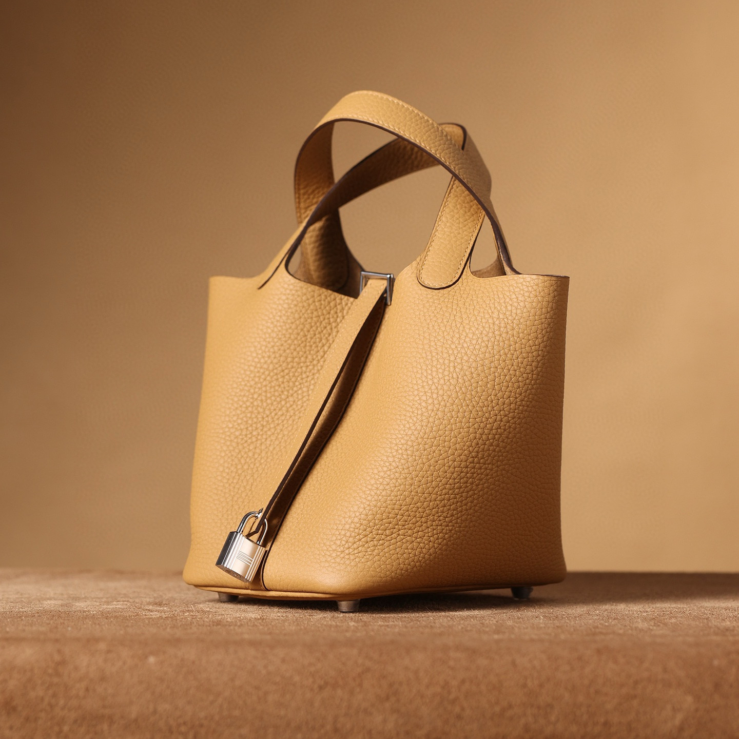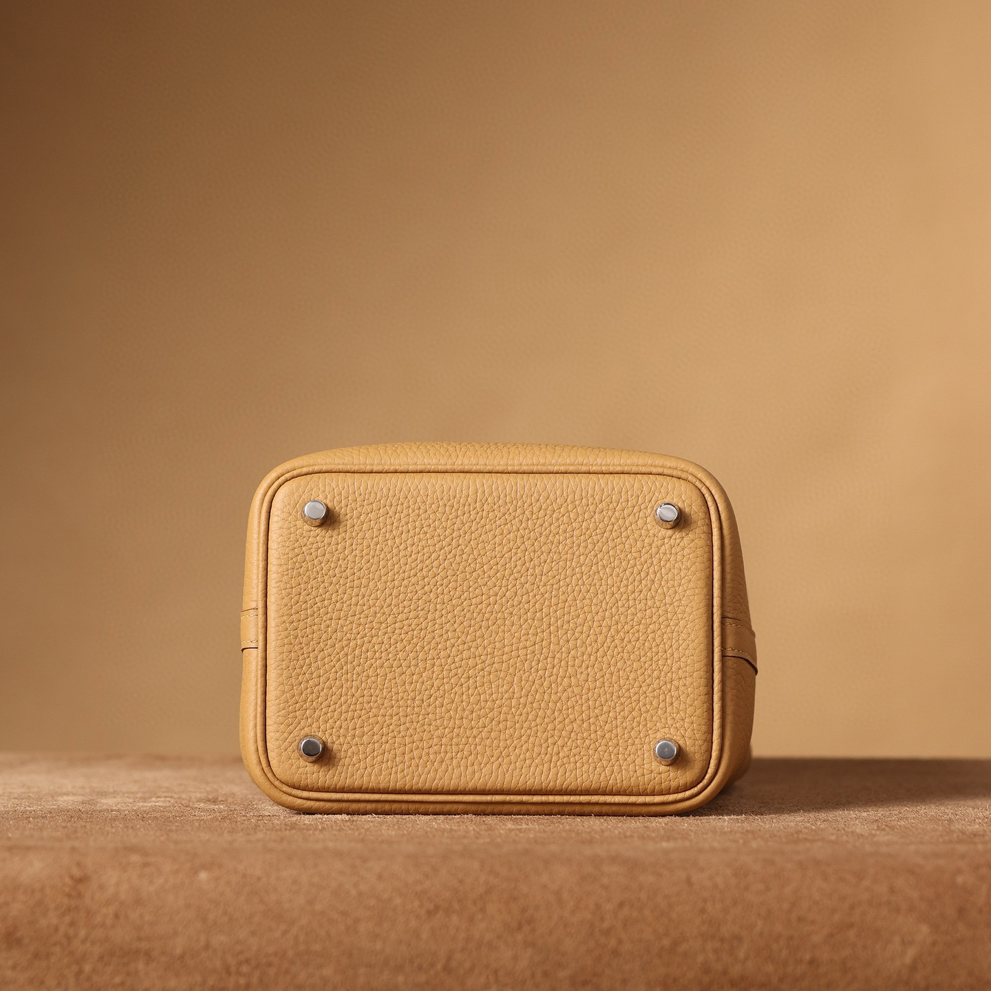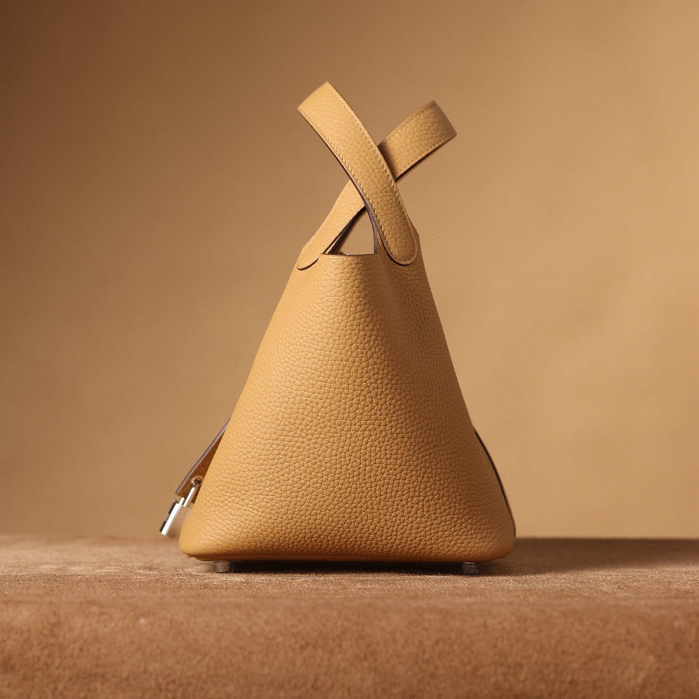 系列:Picotin Lock 款式:手拎 / 手提 尺寸:長 18.0 cm x 高 19.0 cm x 寬 13.5 cm 材質:Taurillon Clemence 公牛皮 五金:銀色金屬鎖扣 工藝解析 Picotin Lock 18 手袋以其簡約的水桶造型展現了現代皮具設計的美學理念。整個包體由經驗豐富的工匠以純手工方式打造,在包身收口與底部結構等細節處,體現出對傳統工藝的堅持。獨特的縫製技法不僅確保了包型的立體感,更賦予手袋自然隨性的使用體驗。 細節賞析 皮料:選用 Taurillon Clemence 公牛皮,其天然均勻的顆粒紋理在餅乾色調中呈現出溫暖柔和的視覺效果。這種皮革質地柔韌,隨著使用時間會逐漸展現出獨特的個人化光澤。 縫線:採用同色系縫線,針腳密度經過精密計算,確保結構牢固的同時保持簡潔的視覺效果。手工縫製的細節處處展現工藝的精緻度。 五金:銀色金屬鎖扣經過細緻打磨,呈現出低調雅緻的光澤。鎖扣的開合機制經過精密設計,在保持順滑手感的同時確保使用安全。 結構:經典的水桶造型搭配柔軟的皮革,創造出既隨性又優雅的輪廓。恰到好處的尺寸設計讓手袋在實用性與美觀度之間取得完美平衡。 風格與氣質 愛馬仕 Picotin Lock 18 手袋以其簡約現代的設計語言,展現出隨性而優雅的氣質。餅乾色配色搭配銀色細節,營造出溫暖而時尚的視覺效果。無論是日常購物還是休閒出行,這款手袋都能為造型增添一抹輕鬆自在的時尚感。 在欣賞這款手袋的工藝之美時,您或許也會對其他經典皮具的製作過程感興趣,例如Lindy包的結構設計,或是花園包的皮革選擇,都體現了愛馬仕皮具的獨特價值。