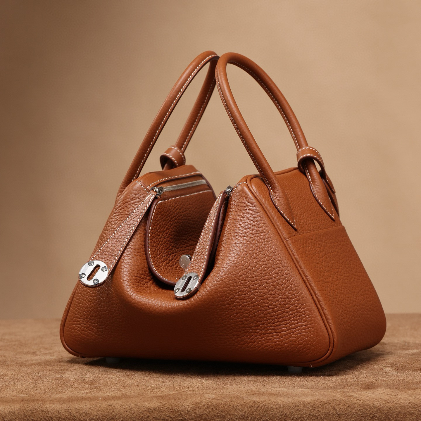 系列:Lindy 款式:單肩 / 手提 尺寸:長 26.0 cm x 高 14.0 cm x 寬 18.0 cm 材質:Taurillon Clemence 公牛皮 五金:銀色金屬釦具 工藝解析 Lindy 26 手袋的製作延續了該系列的經典結構美學。其飽滿的枕形輪廓透過精準的皮革裁切與多層次縫合工藝呈現,整個包體由資深工匠以純手工方式打造。在包身弧度處理與邊角收口等細節處,展現出對傳統皮具工藝的深刻理解。這種立體縫製技法不僅確保了包型的穩定性,更賦予手袋恰到好處的柔軟度。 細節賞析 皮料:精選 Taurillon Clemence 公牛皮,其天然均勻的顆粒紋理在金棕色調中呈現出溫暖深邃的視覺效果。這種皮革隨著使用時間會逐漸展現出獨特的柔軟度與溫潤光澤。 縫線:採用同色系縫線,針腳密度經過精密計算,確保每英寸的縫線數都符合工藝標準。這種隱形縫製技法在保證結構牢固的同時,也保持了包身的簡潔線條。 五金:銀色金屬釦具經過多重打磨工序,呈現出低調雅緻的光澤。釦具的開合機制經過精密設計,在保持順滑手感的同時確保使用安全。 結構:延續系列經典的風琴式側面設計,Lindy 26 擁有更充裕的收納空間。雙重提把設計讓手袋可同時滿足手提與肩背的需求,展現出色的實用性。 風格與氣質 愛馬仕 Lindy 26 手袋以其優雅的尺寸比例與靈動的線條設計,展現出知性而經典的氣質。金棕色配色搭配銀色細節,營造出溫暖而雋永的視覺效果。無論是商務場合還是日常休閒,這款手袋都能完美融入各種穿搭風格,展現使用者歷久彌新的審美品味。 在欣賞這款手袋的工藝之美時,您或許也會對其他經典皮具的製作過程感興趣,例如凱莉包的縫製技藝,或是柏金包的皮革選擇,都體現了高級皮具的獨特價值。