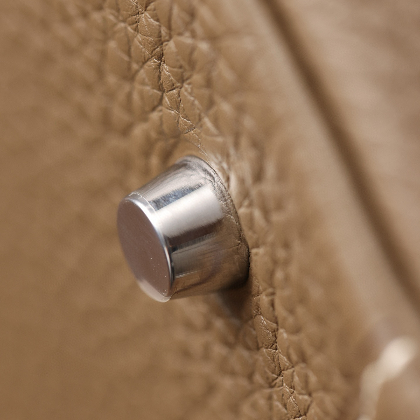 系列:Lindy 尺寸:30.0 × 19.0 × 16.0 公分 設計:單肩或手提 主要材質:Taurillon Clemence 公牛皮 金屬配件:銀色金屬扣具 顏色:大象灰色 工藝解析 此款手袋延續Lindy系列經典的雙向開合設計,展現獨特的結構美感。包身採用Taurillon Clemence公牛皮,這種皮革以其細膩的顆粒紋理與柔軟質感著稱,大象灰色調展現低調優雅的氣質。全手工製作過程在包身弧度的處理上展現精湛技藝,工匠需要精準掌握皮革的拉伸特性,塑造出完美的枕形輪廓。 細節賞析 精選的大象灰色公牛皮呈現溫潤色澤,細密的顆粒紋理在光線下展現豐富層次。銀色金屬扣件經過精密加工,表面處理細緻光滑,與大象灰皮革形成和諧搭配。縫線工藝採用與皮革相配的色系,針距均勻一致,展現嚴謹的製作標準。 包身兩側的褶皺設計不僅具有裝飾功能,更賦予手袋靈活的收納空間。提手長度經過人體工學計算,確保手提時的舒適度。內部空間規劃合理,便於日常物品分類收納。 風格與氣質 這款手袋以溫潤的大象灰搭配典雅銀扣,展現低調現代的氣質。其中性色調使其具備極高的搭配性,無論是正式場合或休閒時刻,都能展現使用者對品質的追求。獨特的枕形輪廓與實用設計,使其成為兼具功能與美觀的日常配飾。 對於欣賞精緻皮具的鑑賞者,可以深入了解Taurillon皮革的特性與保養方法。在選擇日常用手袋時,實用性與美觀的平衡總是重要的考量。手提包的設計演變也反映了現代女性對功能與美學的雙重追求。