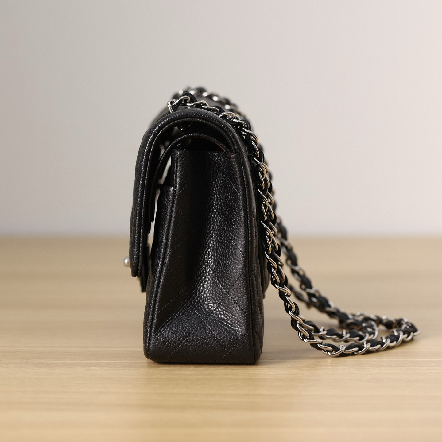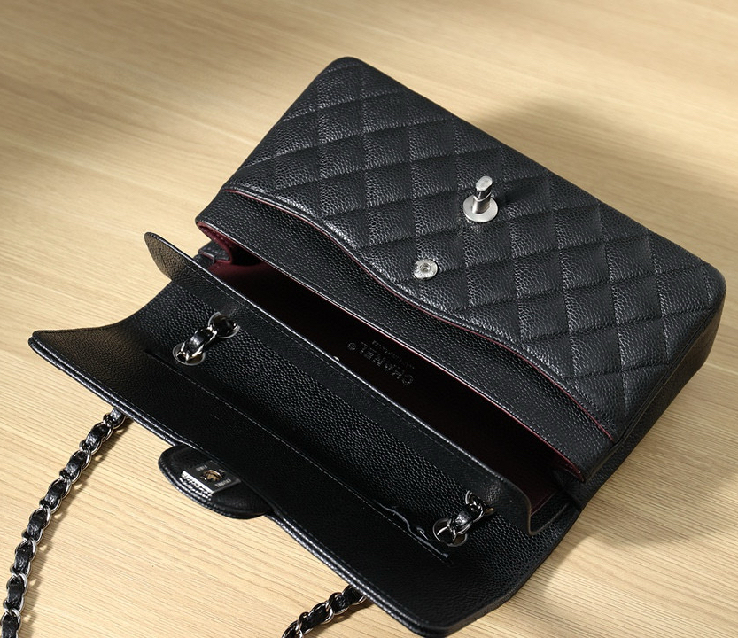 款式:斜挎 / 單肩 尺寸:長25.5公分 x 高15.5公分 x 寬6.5公分 主皮料:魚子醬牛皮 內裏材質:小羊皮 金屬件:銀色扣件 工藝解析 這款口蓋包的製作延續經典工藝傳統。魚子醬牛皮的選用展現了對皮料耐久性的重視,其獨特的荔枝紋理需要精準的壓印工藝處理。菱格紋的縫製需要嚴格控制每處的填充飽滿度,確保圖案立體均勻。包蓋開合結構經過精密計算,確保使用時的順暢手感與耐用性。 細節賞析 精選魚子醬牛皮質地堅韌且富有彈性,表面荔枝紋理清晰均勻,具有良好的抗刮損特性。縫線工整細密,轉角處處理圓滑,與皮革邊緣保持精準距離。銀色金屬扣打磨光滑,雙C標誌刻畫清晰,與黑色皮面構成簡約現代的對比。內部小羊皮內裡觸感柔軟,提供良好的內容物保護。 風格與氣質 Classic Flap 25黑銀配色展現出簡約現代的摩登氣質。魚子醬牛皮的耐用特性使其成為日常使用的理想選擇,銀色金屬件為經典設計注入當代感。其設計完美平衡了品牌經典元素與現代審美需求,展現出低調而精緻的都市風格。 了解魚子醬牛皮等耐用皮質的特性與保養方法,可在我們的皮革護理指南中找到實用建議。若對經典手袋的設計演變感興趣,歡迎查閱品牌經典設計傳承專文。