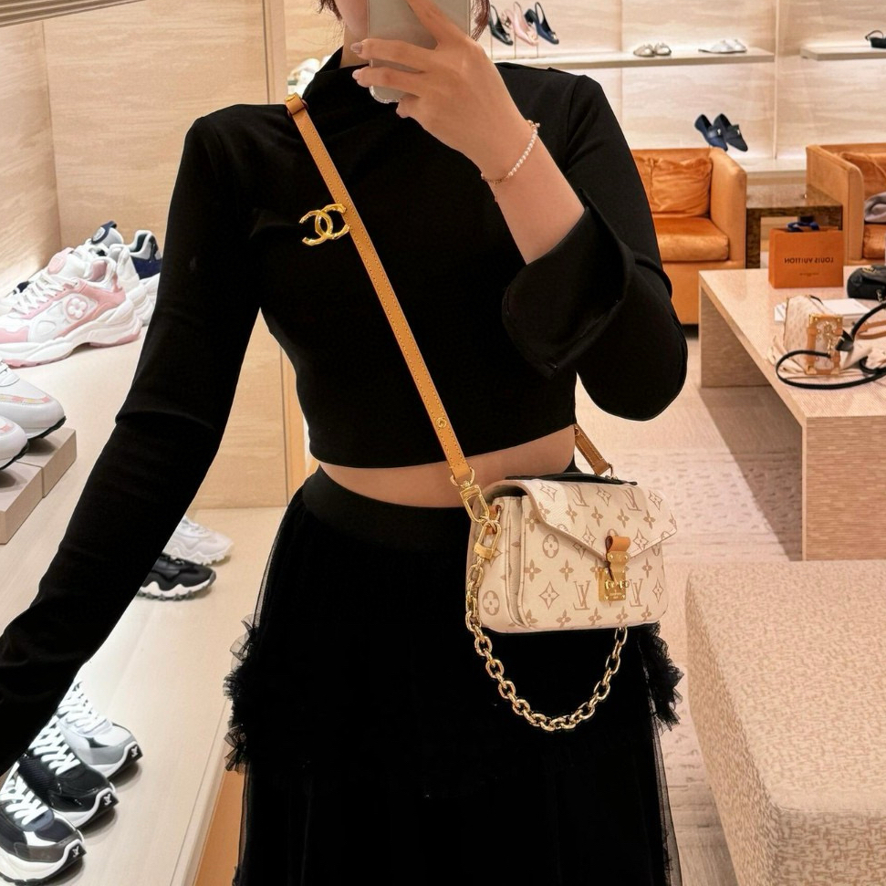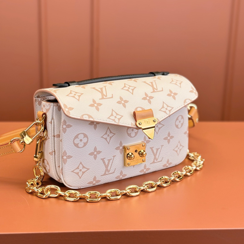 系列:Pochette Metis East West 款式:單肩/斜挎 尺寸:約21.5×13.5×6.0cm 主要材質:Monogram帆布 五金:金屬鎖扣與配件 工藝解析 Pochette Metis East West郵差包以其修長的橫向輪廓展現現代製包工藝的實用美學。包身採用傳統手工縫製技術,從帆布的精準裁切到S型鎖扣結構的組裝,都注重保持其優雅的線條感。金屬鎖扣與帆布的結合處採用特殊加固工藝,確保使用時的耐用性與可靠性。包身的橫向結構通過精準的內部隔層規劃,在保持修長外觀的同時,提供合理的收納空間。 細節賞析 材質:沙丘色Monogram帆布質地細膩柔和,色澤溫潤雅緻。這種低飽和度的中性色調展現沉靜的視覺效果,與經典的monogram圖案相得益彰。 縫線:精密的縫線沿著包身輪廓均勻分佈,在邊角處特別採用加固縫製工藝。每處縫線的間距與走向都經過精心設計,確保結構的牢固度。 五金:S型金屬鎖扣經過精密處理,色澤溫潤且操作順暢。所有金屬配件都與沙丘色帆布形成和諧搭配,展現精緻的細節處理。 結構:修長的橫向輪廓俐落優雅,內部多隔層設計便於分類收納。合理的厚度設計便於收納日常隨身物品,展現實用與美學的完美結合。 風格與氣質 Louis Vuitton Pochette Metis East West沙丘色郵差包以實用的設計語言詮釋現代都市美學的審美理念。雅緻的沙丘色調與修長的橫向輪廓,展現溫潤而精緻的質感。其合理的內部空間與舒適的攜帶體驗,能夠完美適應日常通勤與休閒場合的多元需求。可調節的肩帶設計提供靈活的使用方式,展現現代女性的優雅品味與實用追求。