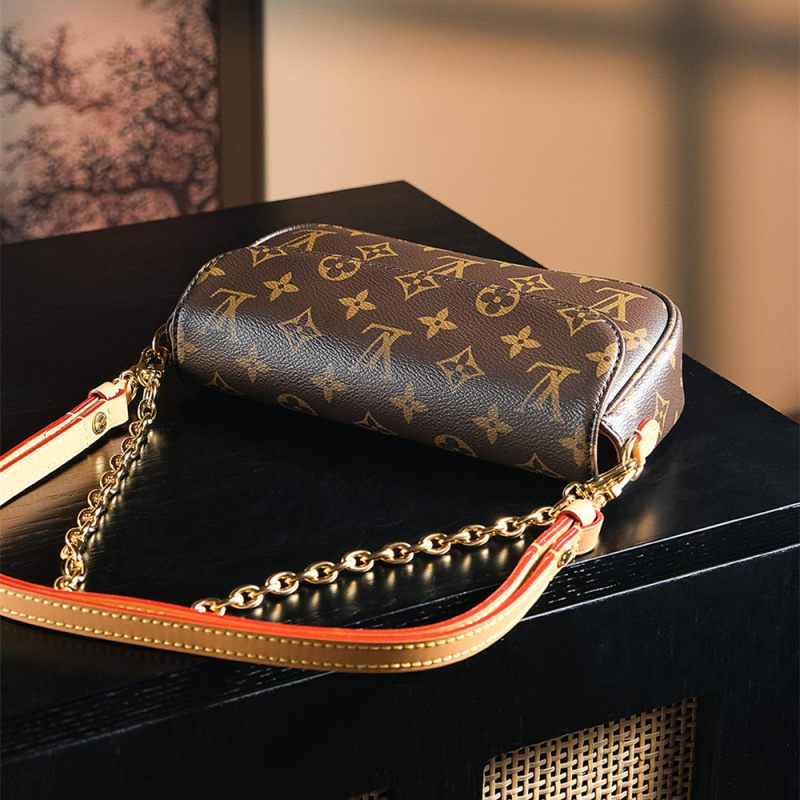 系列:Wallet On Chain Ivy 款式:單肩/斜挎 尺寸:約23.5×12.0×4.3cm 主要材質:Monogram帆布 五金:金屬鏈條與扣具 工藝解析 Wallet On Chain Ivy鏈條包以其精巧的矩形輪廓展現現代配件工藝的細膩美學。包身採用傳統手工縫製技術,從帆布的精準裁切到內部結構的組裝,都注重保持其優雅的線條感。金屬鏈條與帆布的結合處採用特殊加固工藝,確保使用時的耐用性與舒適度。包身的扁平結構通過精準的內部隔層規劃,在保持輕薄外觀的同時,提供合理的收納空間。 細節賞析 材質:Monogram帆布質地細膩耐用,表面塗層均勻精緻。經典的monogram圖案展現品牌標誌性美學,同時具備出色的實用特性。 縫線:精密的縫線沿著包身輪廓均勻分佈,在邊角處特別採用加固縫製工藝。每處縫線的間距與走向都經過精心設計,確保結構的牢固度。 五金:金屬鏈條與扣具經過精密處理,色澤飽滿且操作順暢。可調節鏈條設計提供多元的使用方式,展現精緻的細節處理。 結構:精巧的矩形輪廓簡約優雅,內部多隔層設計便於分類收納。合理的厚度設計便於收納卡片與隨身小物,展現精緻與實用性的完美結合。 風格與氣質 Louis Vuitton Wallet On Chain Ivy鏈條包以精緻的設計語言詮釋現代配飾美學的審美理念。經典monogram圖案與簡約的矩形輪廓,展現優雅而實用的質感。其精巧的內部空間與多樣的攜帶方式,能夠完美適應日常出行與特殊場合的多元需求。可調節的鏈條設計提供靈活的使用體驗,展現現代女性的精緻品味與實用追求。工廠生產圖