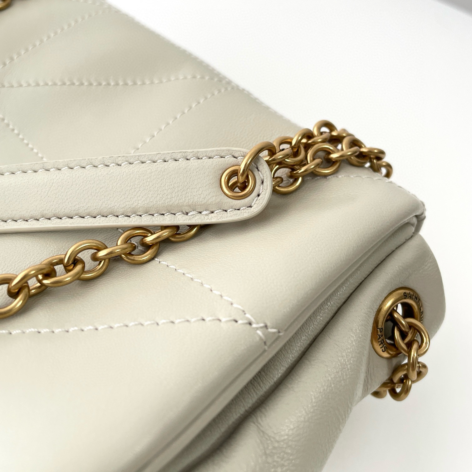 款式:單肩 / 斜挎 尺寸:20.0 * 12.0 * 7.0 CM 五金:原廠厚鍍24K金屬扣具 皮料:原工廠進口納帕小羊皮,柔軟觸感 裡料:正品開料工廠皮 版本:免檢版(符合國際貿易相關質檢標準) 工藝解析 YSL Jamie Mini手袋擁有法式浪漫的經典設計,選用頂級納帕小羊皮,皮革表面細膩,觸感柔軟,質感極佳。每款包袋均由匠人手工縫製,精緻的絎縫圖案與標誌性的YSL金屬標誌,散發出濃厚的奢華與高端氣質。這款手袋的流線型設計,不僅美觀,而且實用,完美呈現現代女性的優雅與品位。 細節賞析 皮料:選用進口納帕小羊皮,表面柔軟且富有光澤,極具高級感,能夠持久耐用,並保持手袋的細膩觸感。 五金:厚鍍24K金屬扣具,經過精緻打磨,表面光滑且耐用,為手袋增添一份光澤感與奢華感。 結構:包型結構柔和且挺括,包身設計流暢,具有優雅的輪廓,完美呈現出YSL的經典風格。 車縫:每一處縫合都由專業匠人手工完成,線條均勻且穩固,包袋結構堅固,保證其長期使用後依然如新。 風格與氣質 YSL Jamie Mini手袋以其獨特的絎縫設計和金屬YSL標誌成為品牌的經典焦點。無論是單肩佩戴,還是斜挎或手拿,它都能完美展現佩戴者的品位與風格。其經典的法式設計,結合柔軟的皮革與高端五金細節,使其成為日常通勤和特殊場合的完美選擇。細節