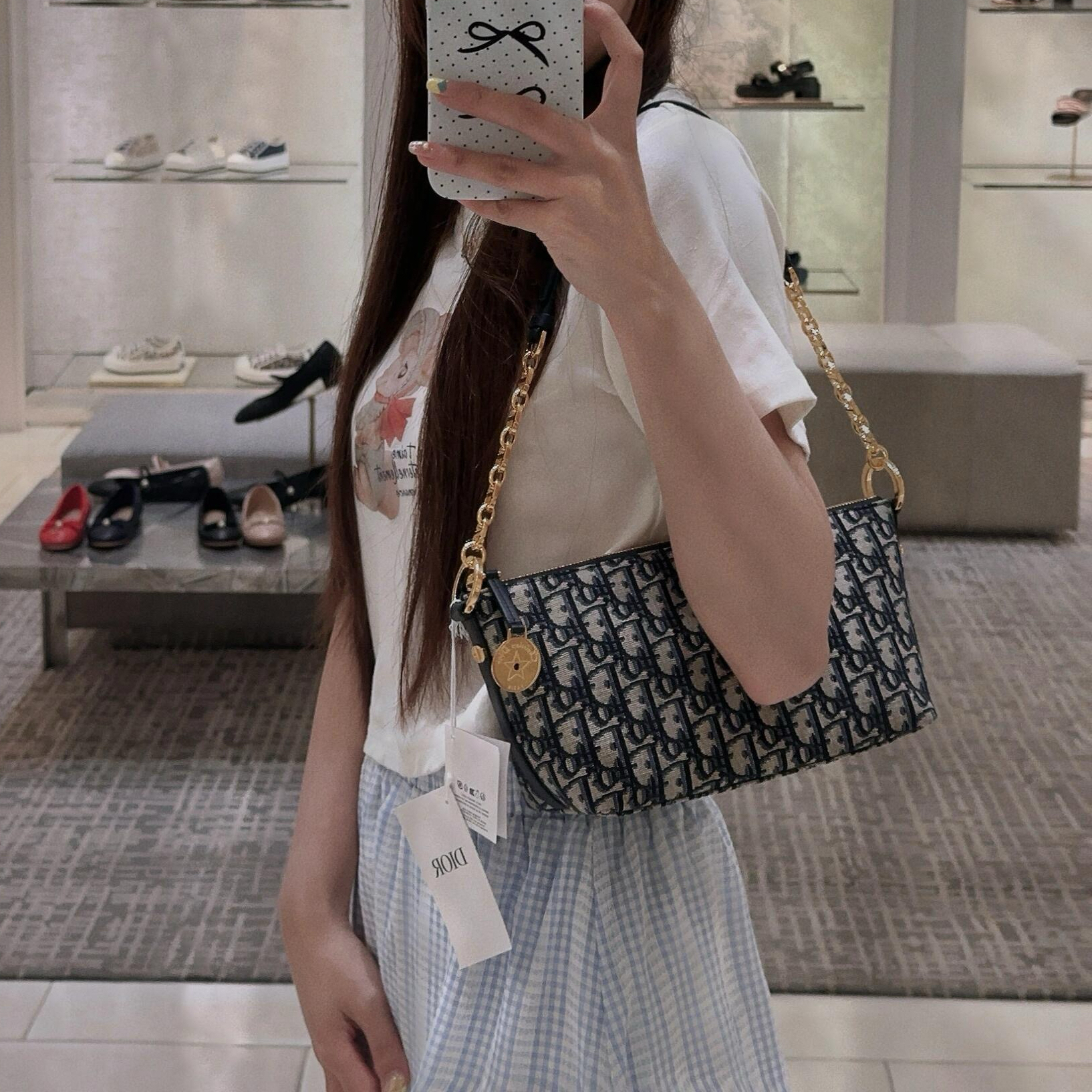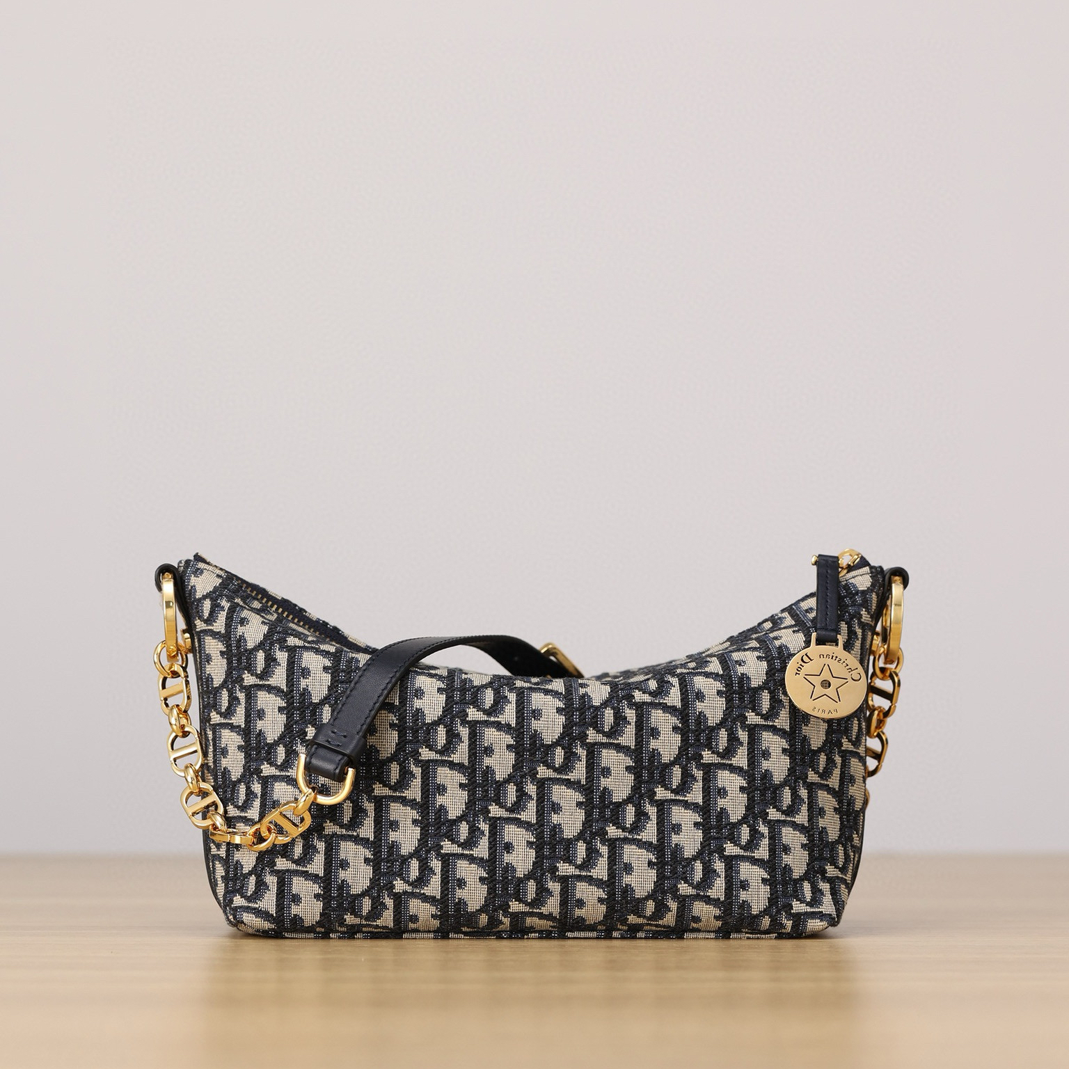 款式:單肩 / 斜挎 / 手拎 尺寸:28.5 * 14.5 * 10.0 CM 五金:原廠厚鍍24K金屬扣具 皮料:正品渠道Oblique印花帆布 裡料:正品開料工廠皮 版本:免檢版(符合國際貿易相關質檢標準) 工藝解析 Dior Star Hobo鏈條包以其獨特的Oblique印花帆布材質,完美融合現代設計與經典風格。每一款包袋都由匠人純手工縫製,細節精緻,展現Dior品牌的奢華工藝。設計上,這款手袋不僅具有實用性,內部空間合理,能夠容納手機、錢包、化妝品等日常必需品,還巧妙地融入了品牌標誌性的細節,包括圓形星星飾牌與精緻的CD鉚釘,彰顯品牌獨特品味。 細節賞析 皮料:Oblique印花帆布的選用,使手袋既具備質感,又擁有極高的耐用性。這種材質不僅能夠耐用長時間使用,還能保持光澤與美觀。 五金:厚鍍24K金屬扣具經過精緻打磨,表面光滑且具有持久光澤,完美呈現出奢華感。 結構:手袋的結構方正且設計簡約,無論是作為單肩包還是斜挎包,都能輕鬆適應各種場合。內部的空間布局合理,為日常用品提供了充足的收納空間。 車縫:每一處縫合都由匠人精心完成,縫線均勻且堅固,保證手袋長久使用後依然保持如新。 風格與氣質 Dior Star Hobo鏈條包的設計充滿現代感與優雅,適合多種場合佩戴。其Oblique印花帆布材質與金屬飾品的結合,使這款包既有都市時尚感,又散發著高端奢華的品位。無論是作為日常搭配還是出席正式場合,這款包包都能完美展現佩戴者的獨特風格與精緻品味。細節與上身
