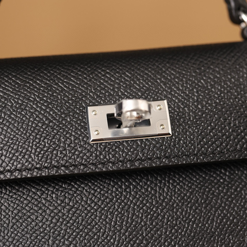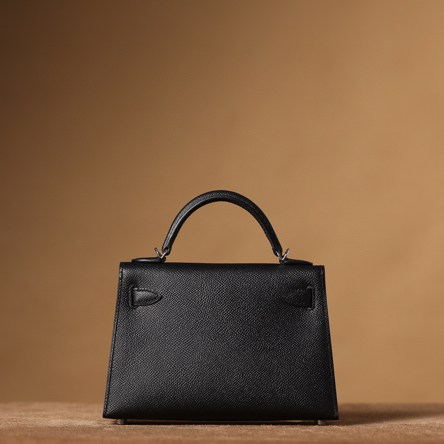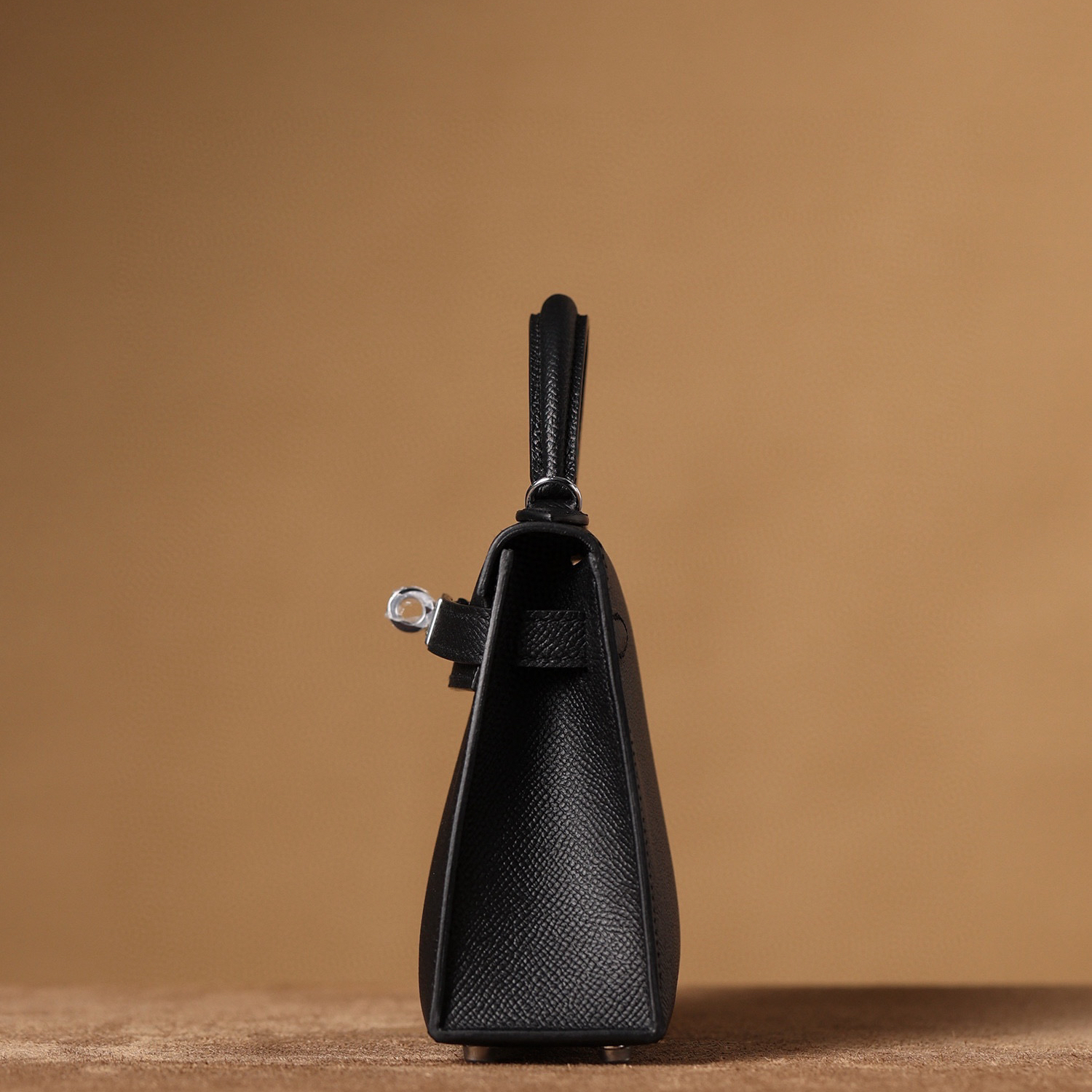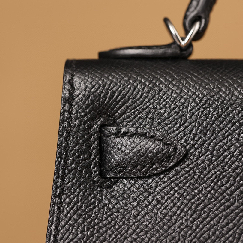 款式:單肩 / 手提 / 斜跨 尺寸:19.0 * 12.0 * 6.0 CM 材質:Epsom皮 / 金屬釦具 皮質:優質小公牛皮,細膩紋理,耐用性強 工藝:純手工打造,注重每一處細節 工藝解析 Hermès Kelly Mini 19手袋選用精選的Epsom小牛皮,這款皮革經過精心處理,表面保留細緻的掌紋紋理,既擁有柔軟的觸感,又具備卓越的耐用性。每一款手袋都由經驗豐富的匠人手工縫製,細緻的縫線與完美的結構設計展示出頂級工藝水平。Epsom皮的耐磨性與抗刮性,使其成為日常使用的理想選擇。 細節賞析 皮料:Epsom小牛皮的選材精良,觸感輕盈且耐用,表面紋理細緻美觀,無論是視覺還是觸感都展現了極高的品質感。 縫線:每處縫合均由匠人精心手工完成,線跡均勻且堅固,確保包袋結構的穩定性與耐用性,並完美呈現出整體的工藝水準。 五金:金屬扣具經過精緻打磨,表面光滑並且具備耐久性,與皮革完美融合,展現出低調奢華的品位。 結構:Kelly Mini 19的經典小巧設計使其無論是日常使用還是特殊場合,都能完美展現佩戴者的優雅與品位。 風格與氣質 Hermès Kelly Mini 19手袋以其經典黑色皮革與銀扣設計,完美詮釋了奢華與優雅的融合。這款手袋的簡約外觀搭配精緻的細節,使其無論是在正式場合還是日常搭配中,都能展現出佩戴者的獨特魅力。小巧精緻的設計令它成為時尚愛好者的必備之選,是高端品質與優雅品味的象徵。