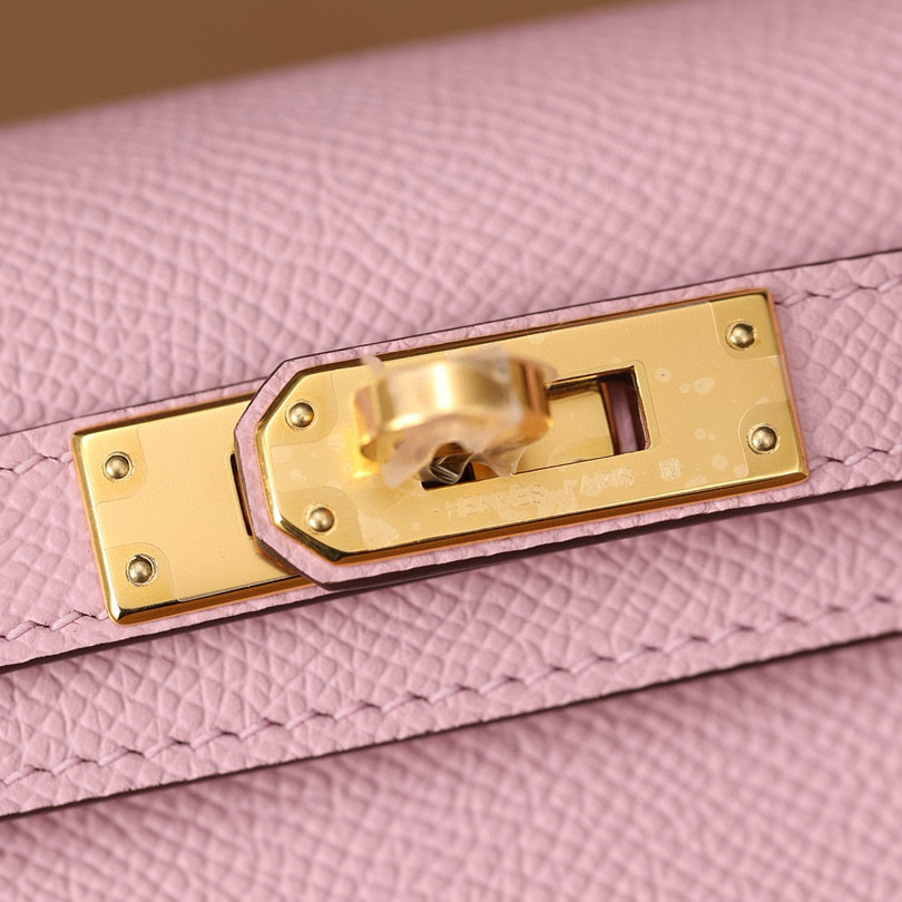款式:單肩 / 手提 / 斜跨 尺寸:19.0 * 12.0 * 6.0 CM 材質:Epsom皮 / 金屬釦具 皮質:優質小公牛皮,細膩紋理,耐用性強 工藝:純手工打造,注重每一處細節 工藝解析 Hermès Kelly Mini 19手袋選用高品質Epsom小牛皮,這款皮革經過精心處理,表面保留了細緻的掌紋紋理,柔軟且富有彈性,並具備出色的耐用性。每一款手袋都由經驗豐富的匠人手工縫製,細緻的縫線和完美的結構設計顯示出頂級的工藝水平。Epsom皮的耐磨性和抗刮性,使其成為日常使用的理想選擇。 細節賞析 皮料:Epsom小牛皮以其精緻的紋理和優異的耐用性,在奢侈品中備受青睞。表面光滑,手感輕盈且堅韌,耐磨抗刮,長時間使用也能保持如新。 縫線:每一處縫合均由專業工匠手工完成,線跡均勻且堅固,確保包袋的耐用性與美觀性。 五金:金屬扣具經過精細打磨,表面光滑且耐久,搭配皮革相得益彰,展現低調的奢華感。 結構:Kelly Mini 19的經典小巧設計,使其既適合日常使用,又能在特殊場合中展現佩戴者的優雅與品位。 風格與氣質 Hermès Kelly Mini 19手袋以錦葵紫色皮革與金扣設計,完美詮釋了奢華與優雅的融合。這款手袋的簡約外觀和精緻細節使其無論是日常穿搭還是晚宴場合,都能展示佩戴者的獨特魅力。小巧精緻的設計令它成為時尚愛好者的必備之選,無論何時佩戴,皆能體現高端品質與品位。