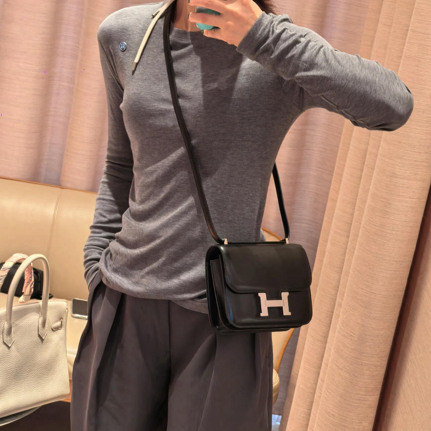 基本資訊 Hermès Constance 19 以俐落的方形結構與標誌性「H」形金屬扣聞名,是品牌中兼具現代感與日常實用性的經典款式之一。尺寸為 19 × 15 × 4 cm,能在斜挎與肩背之間切換,外型簡潔利落。 款式:斜挎/單肩 皮革:Epsom 公牛皮 皮質特點:手掌紋質感、細膩壓紋、觸感乾爽 五金:銀色金屬扣件 尺寸:19 × 15 × 4 cm 附件:防塵袋、原裝盒 工藝解析 Constance 19 的結構以俐落的直線輪廓與細緻的翻蓋比例為核心,標誌性的「H」字母釦件成為視覺焦點。扣件以金屬拋光後呈現柔亮反光,開闔結構順暢,與包身的硬挺線條完美融合。 包身採用 Box箱牛皮製作,壓紋清晰,表層觸感乾爽、厚薄均勻,使包款能保持良好的結構挺度。皮質輕盈且耐用,適合日常配搭。 邊緣以多層邊油修飾,轉角圓潤、表面細滑,呈現高級皮具應有的精緻質感。縫線均勻俐落,使包身線條簡潔乾淨。 細節賞析 Box皮革光影 表面光亮、帶絲滑反射,紋理細緻且具古典感,隨時間會形成自然光澤(稱為 Patina),手感柔滑,更偏向雋永、優雅的質感。Box 皮革的 Constance 擁有更經典、典藏氣質。 標誌性「H」扣 金屬扣件以精細打磨與拋光呈現自然亮度,銀色調與黑色皮革形成平衡對比,既俐落又具時尚感。 內部與層次 Constance 的內部多以雙層隔間設計,使小物收納更有秩序。包身厚度僅 4 cm,佩戴時貼合身形,輕盈且舒適。 容量與使用體驗 雖為小尺寸,但 Constance 19 仍具良好收納能力,可放置: 卡夾 手機 鑰匙 小型化妝品 輕巧包身與可調式揹帶使其適合城市漫步、午茶會面、日常穿搭與出行使用。 保養建議 Epsom 皮革耐刮且易保養,建議避免強烈碰撞與潮濕環境。收納時放入防塵袋並置於乾燥陰涼處,可延緩皮革變形。 風格與氣質 黑色皮革搭配銀扣,是 Constance 系列中極具辨識度的冷調組合,呈現: 俐落現代 低調精緻 簡約高級感 以方形結構突顯都會氣質,是一款能輕鬆融入各式穿搭、兼具實用與美感的經典尺寸。