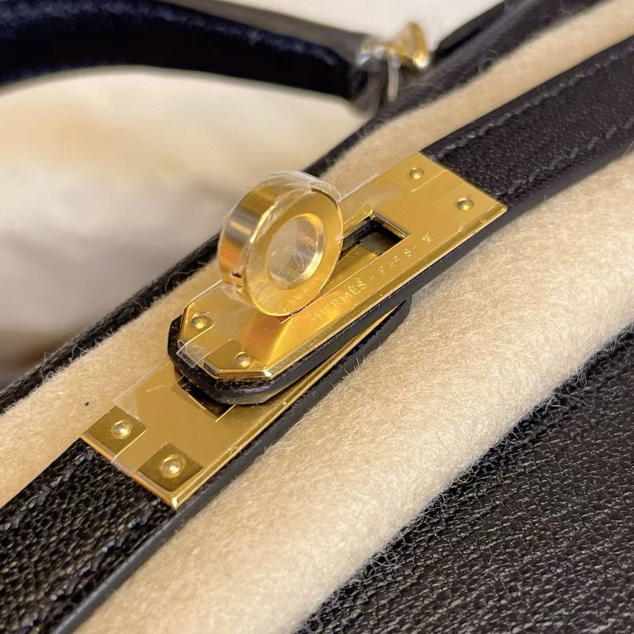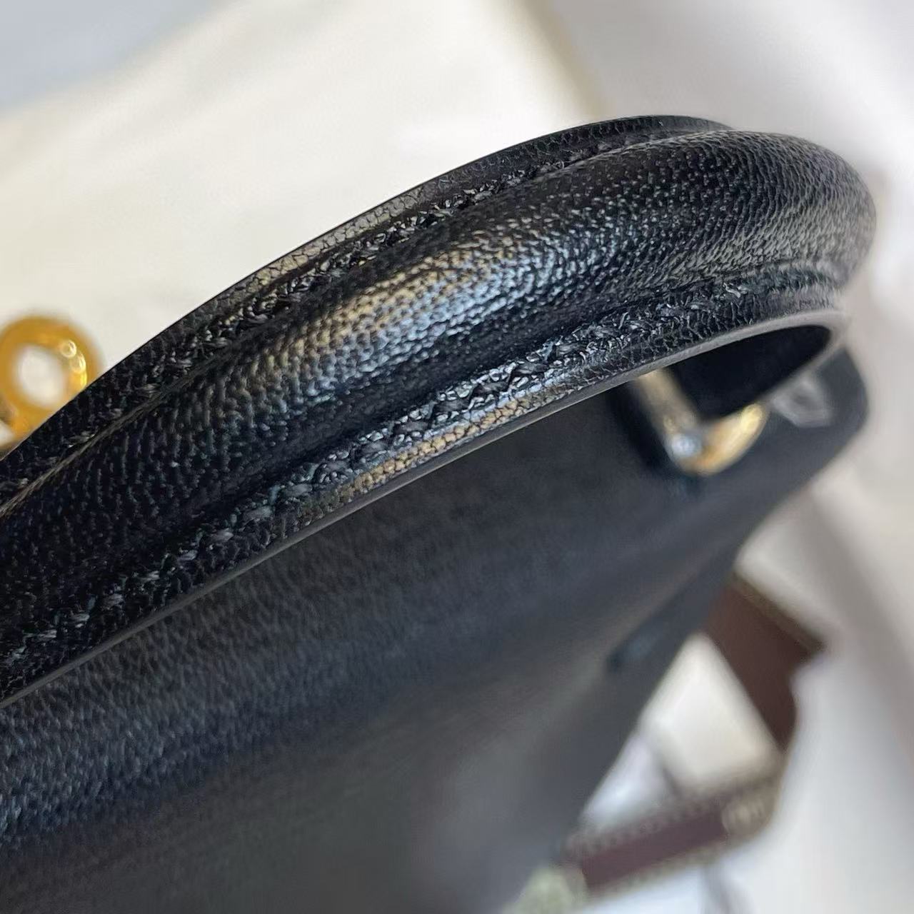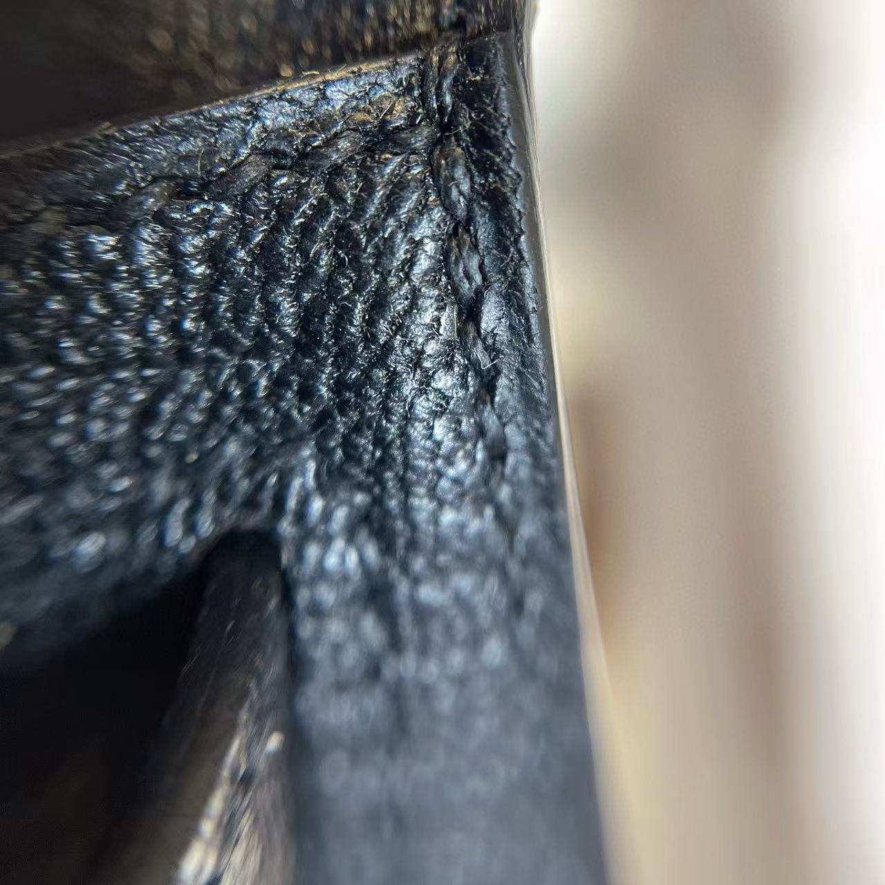 基本資訊 系列:Kelly II 貨號:H027630CC89 工藝:手工製作 款式:單肩 / 手提 尺寸:25.0 × 7.0 × 17.0 cm 皮質:山羊皮革 五金:銀色調金屬件 配件:防塵袋 / 盒裝 / 鎖 / 鑰匙 結構特色:梯形包身、立體翻蓋、單柄設計 Kelly II以經典的梯形輪廓與俐落線條見稱,25 尺寸在視覺上精緻而沉穩,是 Kelly 系列中兼具優雅與實用的小尺寸代表。 工藝解析:梯形結構的經典與力量 Kelly II的標誌在於其階梯式結構與乾淨俐落的翻蓋設計,使包款擁有強烈的識別度。 結構特點包括: 上窄下寬的梯形比例,帶來自然的視覺重心 翻蓋緊密貼合,呈現出乾淨的層次 單柄設計使包款線條穩定清晰 結構硬挺,展現力量與優雅並存的氣質 這種設計讓 Kelly I 具備正式感與氣場,亦適合日常搭配。 材質特徵材質特徵:山羊皮(Chèvre)的細緻與靈動質感 山羊皮特點: • 天然顆粒細小而緊實,紋理清晰且富有節奏感 • 表面帶有柔和光澤,隨光線角度呈現細膩變化 • 對色彩的呈現度高,色調顯得乾淨而通透 • 皮質輕盈但韌性佳,結構穩定不易鬆塌 • 兼具實用性與質感表現,常見於結構要求高的包型 山羊皮的視覺呈現: • 細緻而不張揚的光澤感 • 線條俐落,輪廓清楚 • 輕巧中帶有高級質感 是一種非常適合展現包型線條與工藝細節的皮料,特別能襯托 Kelly 外縫 的結構感與精緻度。 五金細節:銀色金屬的冷靜調性 銀色調金屬件在此包款中帶來清爽、俐落的視覺效果: 光澤柔和,呈現冷靜沉穩的金屬感 扣件比例平衡,與包身線條相呼應 表面光潔,細節轉折清晰 與黑色皮革形成乾淨對比 五金同時提升包款質感,也讓整體風格更加克制、優雅。 工藝細節:縫線、邊緣與立體感 Kelly II的工藝重點在於線條、細節與比例的完整呈現。 縫線特色: 手工馬鞍針縫線緊密均勻 轉角處弧度自然,與包身線條順勢延伸 針腳貼合皮面,使包身更具立體感 邊緣細節: 多層邊油修飾,呈現平滑、乾淨的視覺效果 外緣挺括,使包型層次更加鮮明 細節部分強化整體的製作品質 整體呈現出精緻、安定且具有視覺秩序感的工藝表現。 佩戴與容量 Kelly II的尺寸兼具造型感與實用性: 手提呈現俐落、高級的氣質 單肩背時更增添柔和與靈動 內部空間可容納日常小物 輕便、易於搭配,適用於多種場景 黑色搭配銀扣讓整體更耐看,也更具通勤與日常使用彈性。 保養要點 避免長時間受潮或曝曬 建議存放於防塵袋中 置放於乾燥陰涼處,以延續皮革自然光澤 避免重物長時間壓迫,以維持包型輪廓 適當保養能延長包款的使用壽命與美感。 整體氣質總結 Hermès Kelly II黑色銀扣展現: 穩定、雅緻、乾淨、經典不過時的氣質。 其魅力源自: 低調的黑色皮革 乾淨俐落的梯形結構 銀扣帶來的冷靜亮度 手工縫線與細節處理的精準 整只包散發理性與柔和兼具的美感,是能夠陪伴多年、極具收藏與穿搭價值的經典型款。