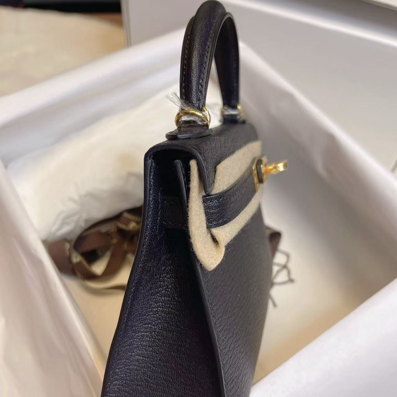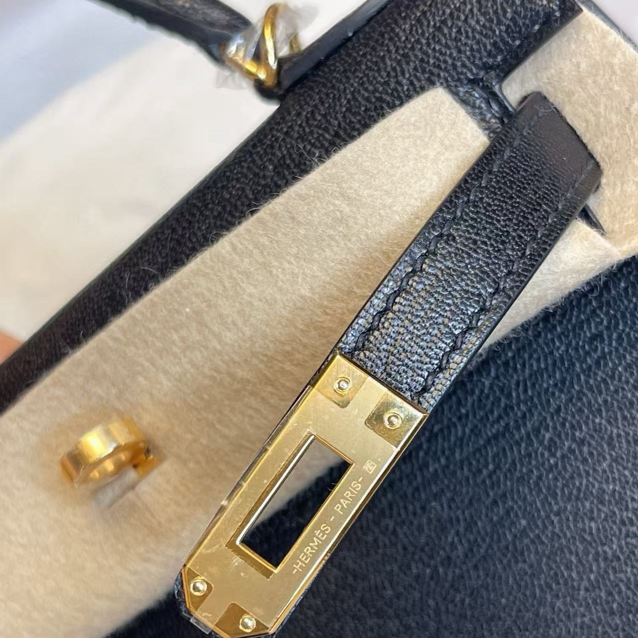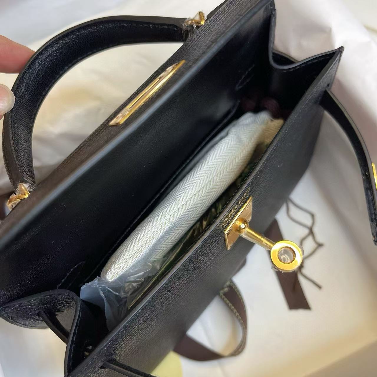 基本資訊 系列:Kelly II 貨號:H027630CC89 工藝:手工製作 款式:單肩 / 手提 尺寸:25.0 × 7.0 × 17.0 cm 皮質:山羊皮革 五金:銀色調金屬件 配件:防塵袋 / 盒裝 / 鎖 / 鑰匙 結構特色:梯形包身、立體翻蓋、單柄設計 Kelly II以經典的梯形輪廓與俐落線條見稱,25 尺寸在視覺上精緻而沉穩,是 Kelly 系列中兼具優雅與實用的小尺寸代表。 工藝解析:梯形結構的經典與力量 Kelly II的標誌在於其階梯式結構與乾淨俐落的翻蓋設計,使包款擁有強烈的識別度。 結構特點包括: 上窄下寬的梯形比例,帶來自然的視覺重心 翻蓋緊密貼合,呈現出乾淨的層次 單柄設計使包款線條穩定清晰 結構硬挺,展現力量與優雅並存的氣質 這種設計讓 Kelly I 具備正式感與氣場,亦適合日常搭配。 材質特徵材質特徵:山羊皮(Chèvre)的細緻與靈動質感 山羊皮特點: • 天然顆粒細小而緊實,紋理清晰且富有節奏感 • 表面帶有柔和光澤,隨光線角度呈現細膩變化 • 對色彩的呈現度高,色調顯得乾淨而通透 • 皮質輕盈但韌性佳,結構穩定不易鬆塌 • 兼具實用性與質感表現,常見於結構要求高的包型 山羊皮的視覺呈現: • 細緻而不張揚的光澤感 • 線條俐落,輪廓清楚 • 輕巧中帶有高級質感 是一種非常適合展現包型線條與工藝細節的皮料,特別能襯托 Kelly 外縫 的結構感與精緻度。 五金細節:銀色金屬的冷靜調性 銀色調金屬件在此包款中帶來清爽、俐落的視覺效果: 光澤柔和,呈現冷靜沉穩的金屬感 扣件比例平衡,與包身線條相呼應 表面光潔,細節轉折清晰 與黑色皮革形成乾淨對比 五金同時提升包款質感,也讓整體風格更加克制、優雅。 工藝細節:縫線、邊緣與立體感 Kelly II的工藝重點在於線條、細節與比例的完整呈現。 縫線特色: 手工馬鞍針縫線緊密均勻 轉角處弧度自然,與包身線條順勢延伸 針腳貼合皮面,使包身更具立體感 邊緣細節: 多層邊油修飾,呈現平滑、乾淨的視覺效果 外緣挺括,使包型層次更加鮮明 細節部分強化整體的製作品質 整體呈現出精緻、安定且具有視覺秩序感的工藝表現。 佩戴與容量 Kelly II的尺寸兼具造型感與實用性: 手提呈現俐落、高級的氣質 單肩背時更增添柔和與靈動 內部空間可容納日常小物 輕便、易於搭配,適用於多種場景 黑色搭配銀扣讓整體更耐看,也更具通勤與日常使用彈性。 保養要點 避免長時間受潮或曝曬 建議存放於防塵袋中 置放於乾燥陰涼處,以延續皮革自然光澤 避免重物長時間壓迫,以維持包型輪廓 適當保養能延長包款的使用壽命與美感。 整體氣質總結 Hermès Kelly II黑色銀扣展現: 穩定、雅緻、乾淨、經典不過時的氣質。 其魅力源自: 低調的黑色皮革 乾淨俐落的梯形結構 銀扣帶來的冷靜亮度 手工縫線與細節處理的精準 整只包散發理性與柔和兼具的美感,是能夠陪伴多年、極具收藏與穿搭價值的經典型款。