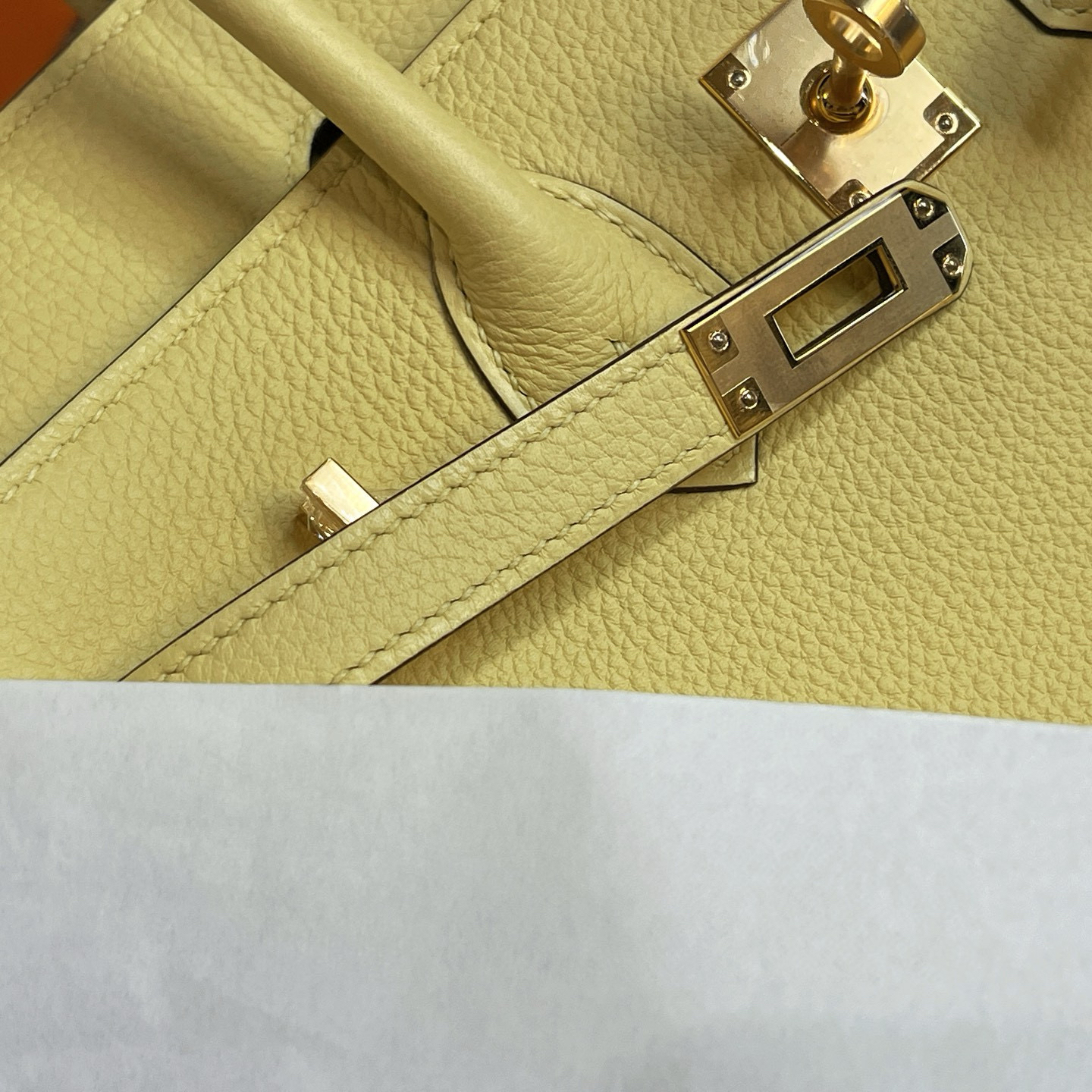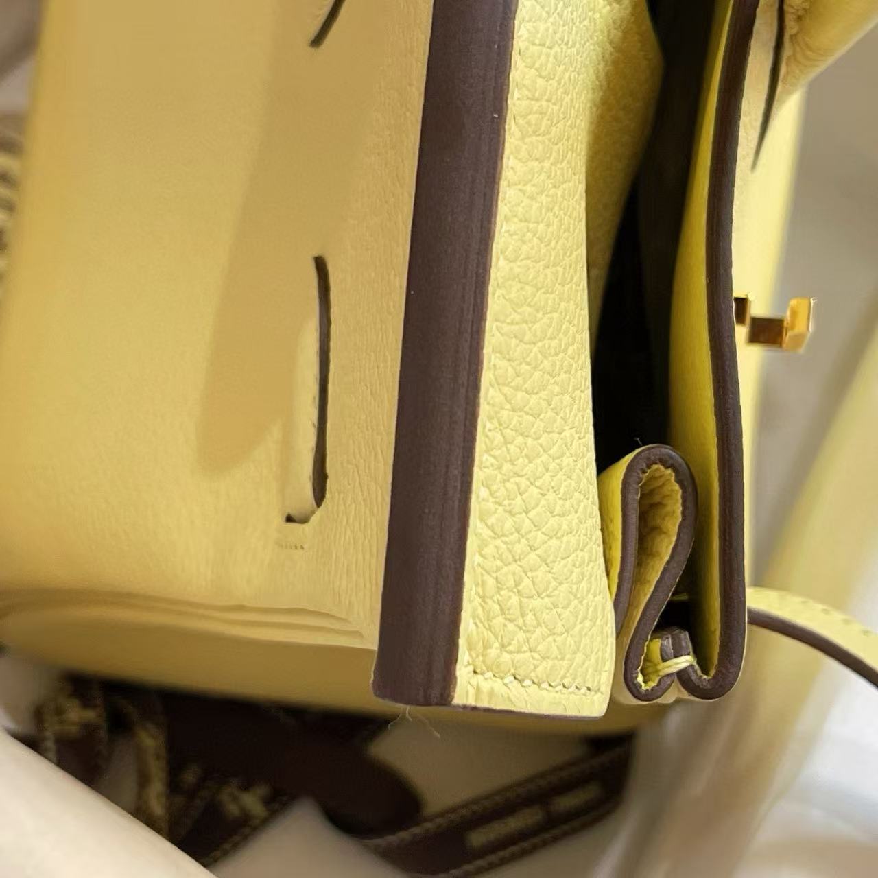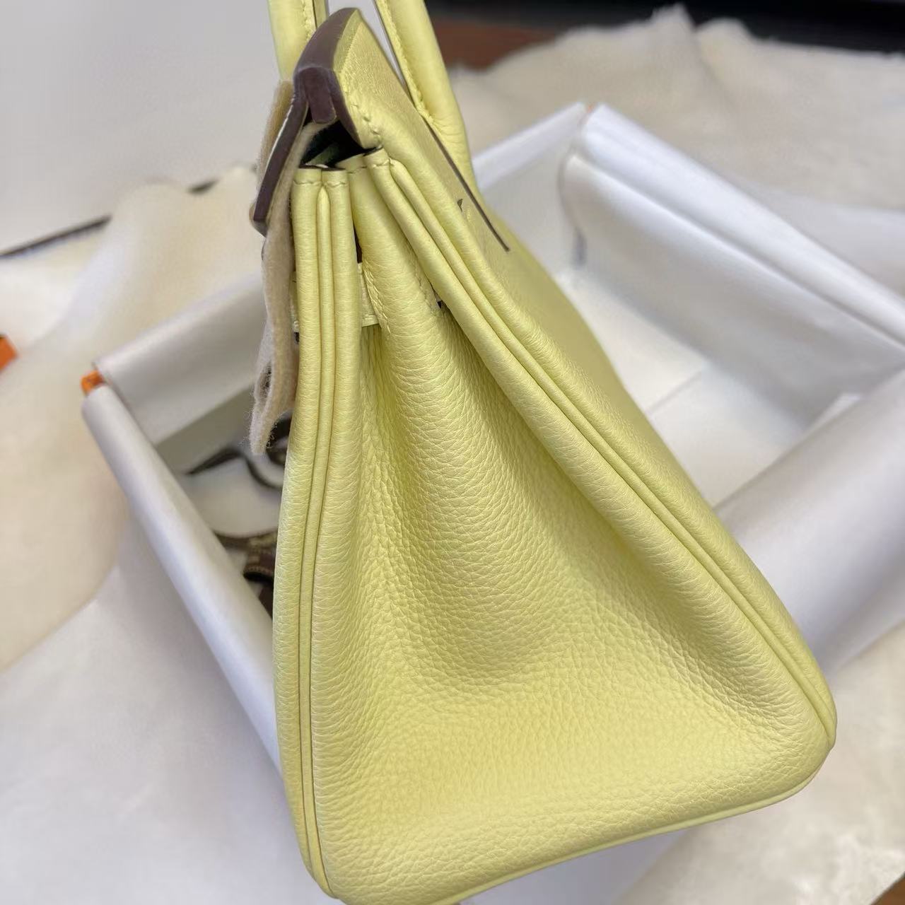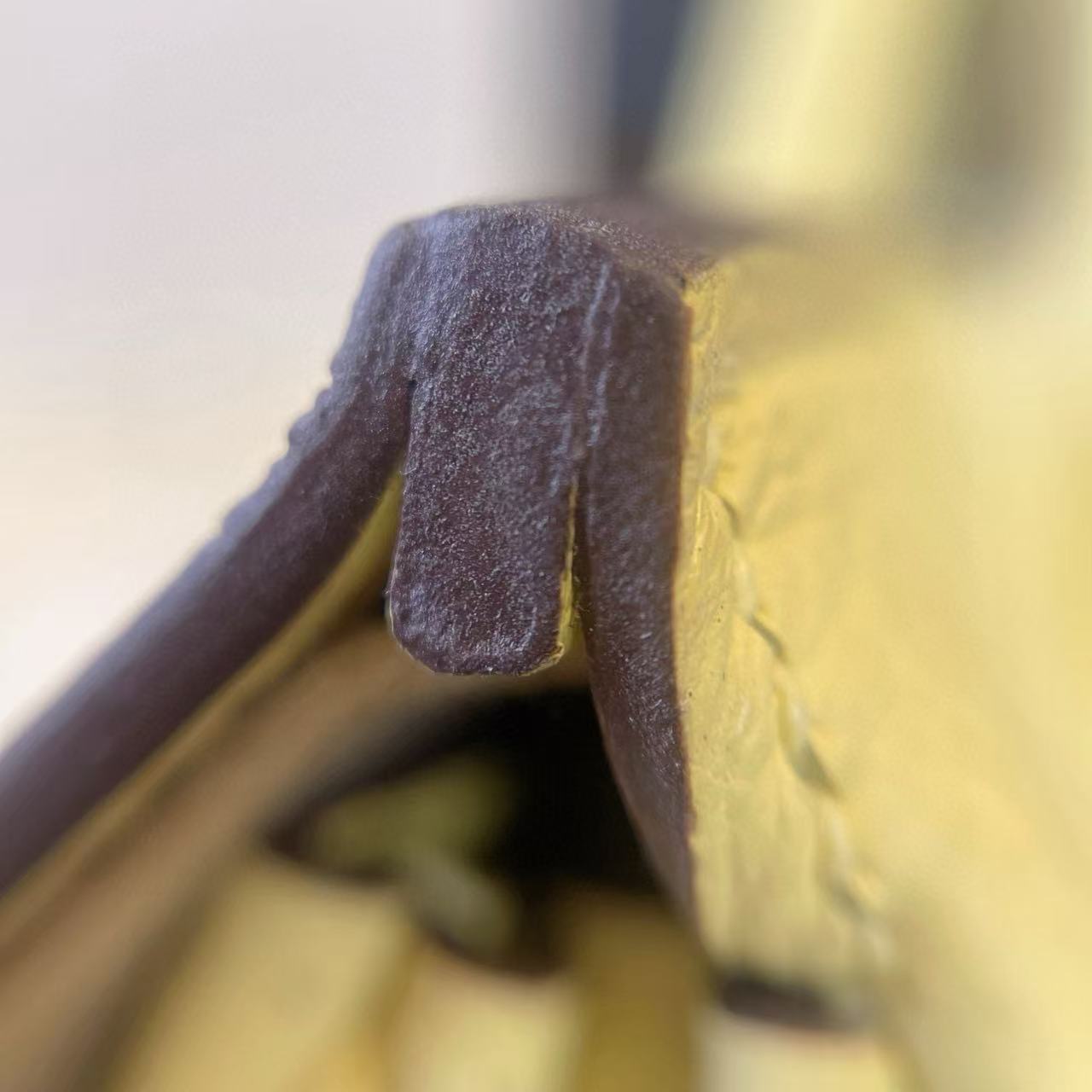 **基本資訊** 系列:Birkin 25 款式:單肩 / 手提 尺寸:25.0 × 20.0 × 13.0 cm 工藝結構:手工製作、立體包型、強化邊緣處理 材質:Togo 皮革 五金:金色調金屬件 貨號:H041344CC1Z 這款 Birkin 25 以輕盈挺括的 Togo 皮革為主體,搭配小雞黃配色與金色五金,整體呈現活力明亮又穩定乾淨的視覺效果。尺寸緊湊、比例清晰,適合多場景搭配。 ** 工藝解析:Togo 皮革的顆粒結構表現 Togo 皮革是許多經典包款常用的材質之一,以其天然立體顆粒、柔中帶挺與良好支撐性著稱。 它的特點包括: • 天然粒紋清晰,顆粒分布均勻 • 皮質柔韌但不鬆塌,結構穩定 • 使用過程中仍能維持包身輪廓 • 觸感溫潤,帶有自然霧感與回彈性 這種皮革非常適合強調廓形與線條的包款,使 Birkin 25 的呈現更加緊湊、銳利、乾淨。 **工藝細節:縫線、邊緣與線條的協調** 這款 Birkin 25 在細節處理上保持了統一而克制的工藝表現: 縫線結構: * 針腳均勻、線跡平直 * 轉角處理自然,與整體曲線匹配 * 線跡力度控制平衡,保持包型立體 邊緣收口: * 邊緣色層過度自然 * 表面觸感細膩,不顯毛糙 * 提升整體視覺的整潔度 包型結構: * 底部平衡度高,使包身站立穩定 * 手柄弧度與包身比例協調 * 正視、側視都有穩定的幾何感 整體結構呈現出「緊湊但不僵硬」的視覺基調。 **材質呈現:小雞黃配色的明快感** 小雞黃是一種明亮但不跳躍的黃色調,能夠在不同光線下呈現穩定且柔和的層次感。 色彩特點包括: * 色調輕快,視覺乾淨明亮 * 與 Epsom 壓紋結合後層次更清晰 * 表面光澤柔和,不會過度反光 * 在小尺寸包款上表現尤為友好 這種顏色讓 Birkin 25 在保持經典結構的同時,多了一份輕鬆與活力。 **五金細節:金色的點亮作用** 金色五金在小雞黃配色中具有平衡整個視覺重心的作用。 特點包括: * 色澤飽滿但不張揚 * 表面光潔,反光柔和 * 與黃皮革形成自然的明暗對比 * 讓整體風格更顯精緻與優雅 它在視覺上提供了一處焦點,但不會壓過皮料本身。 **尺寸與風格呈現** Birkin 25 的尺寸常被認為是兼具精緻感與實用性的小型包款: * 外觀緊湊,線條乾淨 * 體積輕巧,適合日常攜帶 * 上身比例靈動、不壓身高 * 色彩帶來友善、柔和的氛圍 小雞黃配色讓包款顯得更活潑,而 Togo 皮革的挺括性又保持了整體的精緻與清晰度。 **整體氣質總結** 這款 Hermès Birkin 25 小雞黃以 Togo 皮革的立挺質感、明亮色調與金色五金的暖色點綴共同構成其特有的風格: 清爽、明亮、俐落、耐看。 亮點來源於: * Togo 材質的結構優勢 * 小雞黃的色彩表現力 * 金扣提供的視覺平衡 * 小尺寸帶來的精緻感 整體呈現一種輕快卻保持審美穩定的氣質。