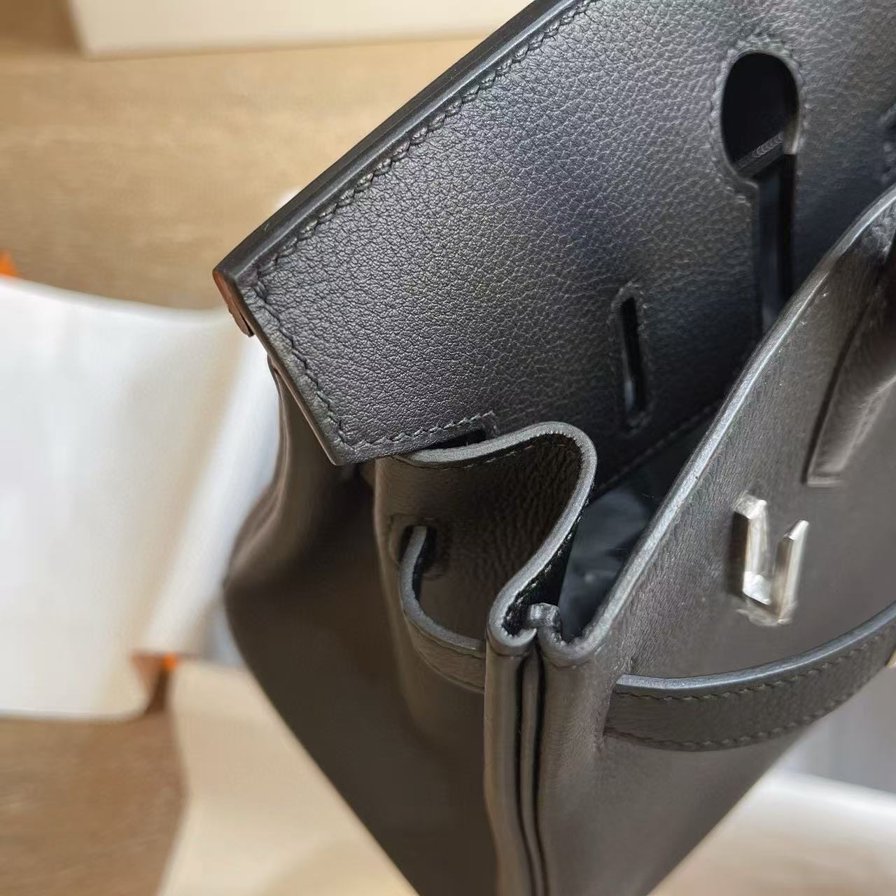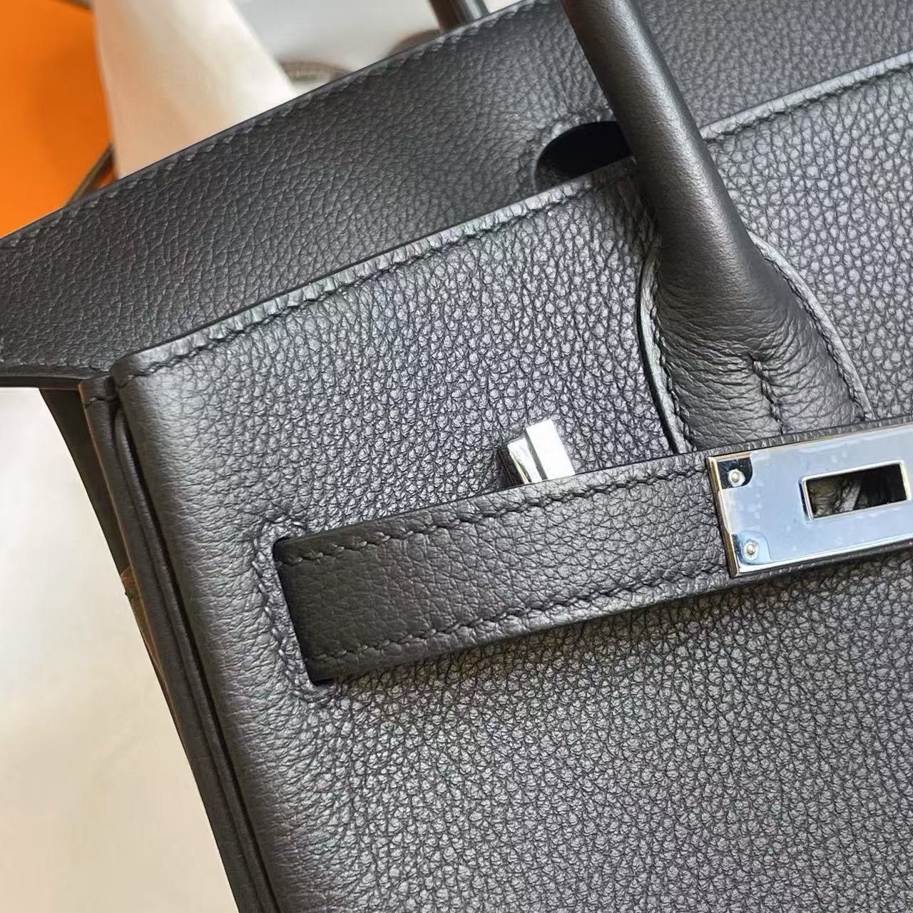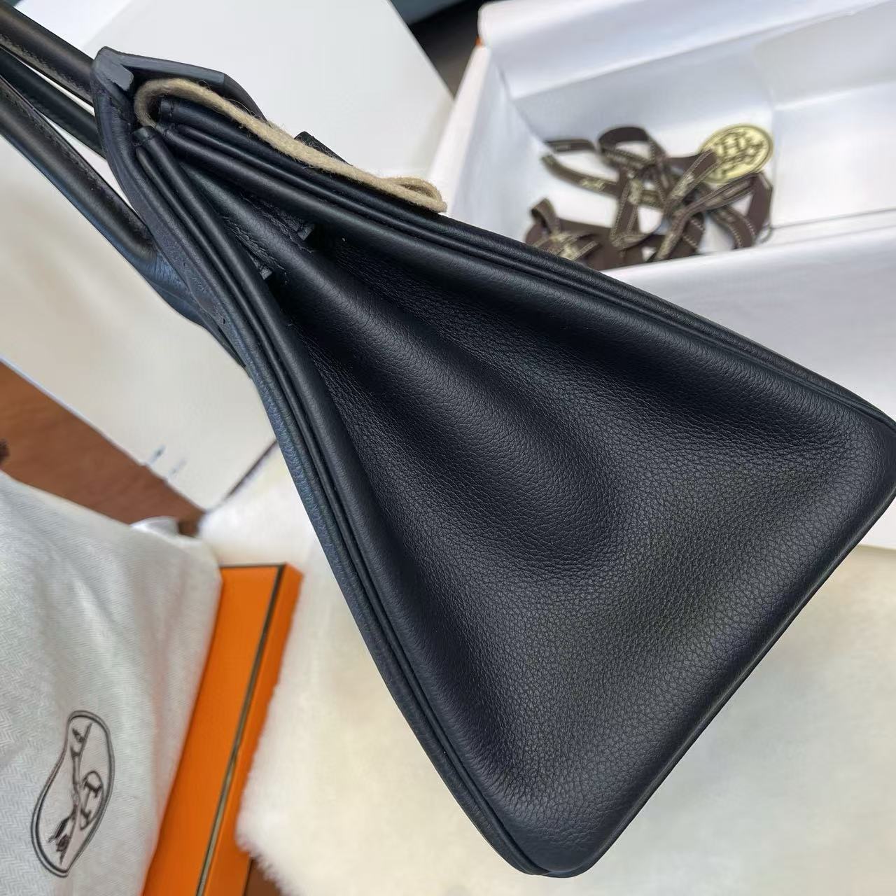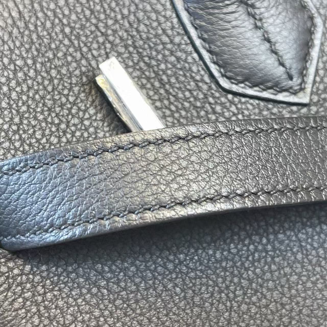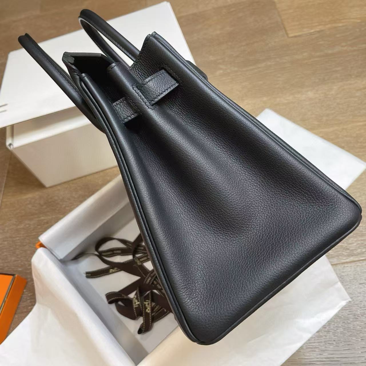**基本資訊** 系列:Birkin 30 款式:單肩 / 手提 尺寸:30.0 × 22.0 × 16.0 cm 工藝結構:手工製作、立體包型、結構支撐強 材質:Togo皮革 五金:金色調金屬件 貨號:H030520CK89 Birkin 30 是在日常實用與結構完整之間取得平衡的尺寸。黑色皮料配金色五金,呈現穩重、幹練且經典的視覺氣質。 ** 工藝解析:Togo 皮革的顆粒結構表現 Togo 皮革是許多經典包款常用的材質之一,以其天然立體顆粒、柔中帶挺與良好支撐性著稱。 它的特點包括: • 天然粒紋清晰,顆粒分布均勻 • 皮質柔韌但不鬆塌,結構穩定 • 使用過程中仍能維持包身輪廓 • 觸感溫潤,帶有自然霧感與回彈性 這種材質非常適合強調包型結構與線條表現,使 Birkin 30 的立體廓形更加飽滿而有層次。 **結構細節:比例、支撐與線條控制** 這款 Birkin 30 在結構上呈現出鮮明的三維支撐與線條平衡感。 包型比例: * 寬高比協調,視覺穩重 * 底部面積較大,整體重心穩定 * 手柄高度適中,視覺節奏流暢 縫線與線條: * 針腳細密均勻,走線平直 * 轉角處弧度自然,與整體結構銜接一致 * 車線力量分佈均衡,加強整體廓形 邊緣處理: * 邊緣色層過渡自然 * 收邊乾淨俐落,細節呈現穩定美感 整體工藝更偏向結構感與立體感,讓包身始終保持精神、幹練的視覺效果。 **材質呈現:黑色皮料的克制與經典** 黑色 Togo 皮革具有天然的視覺穩定性。 在光線下,它的細紋會呈現輕微光澤,讓穩重的顏色更顯層次。 黑色在大型包款中可以降低視覺膨脹感,反而讓包型的線條與結構更突出,達到「低調但強烈的存在感」的效果。 **五金細節:金色調的點睛作用** 金色五金與黑色皮料是經典搭配之一,具有以下特徵: * 金色在黑色底色上更加醒目 * 有助於提升整體亮度與視覺焦點 * 五金表面光澤精緻,反光柔和 * 開合結構順暢,銜接精確 在整體黑色包身中,金色五金帶來適度的視覺提升,使包款顯得莊重又穩重。 **尺寸與風格呈現** Birkin 30 是許多人認為「最均衡」的尺寸: * 不大不小,滿足日常裝載需求 * 保持經典廓形的完整度 * 適合通勤、社交、正式等多種場景 * 黑金配色呈現優雅、力量感與可靠性 相比更小尺寸的 Birkin 25,30cm 在視覺氣場上更成熟,同時仍保持經典結構的緊湊與比例協調。 **整體氣質總結** 這款 Hermès Birkin 30 的整體風格可以概括為: 穩重、結構完整、經典耐看。 亮點來自: * Togo 材質帶來的立體包型 * 黑色皮料呈現的克制視覺 * 金色五金的點睛亮度 * 手工工藝對線條與結構的控制 最終形成一種無需用力、不依賴裝飾,卻能自然展現力量與從容的氣質。