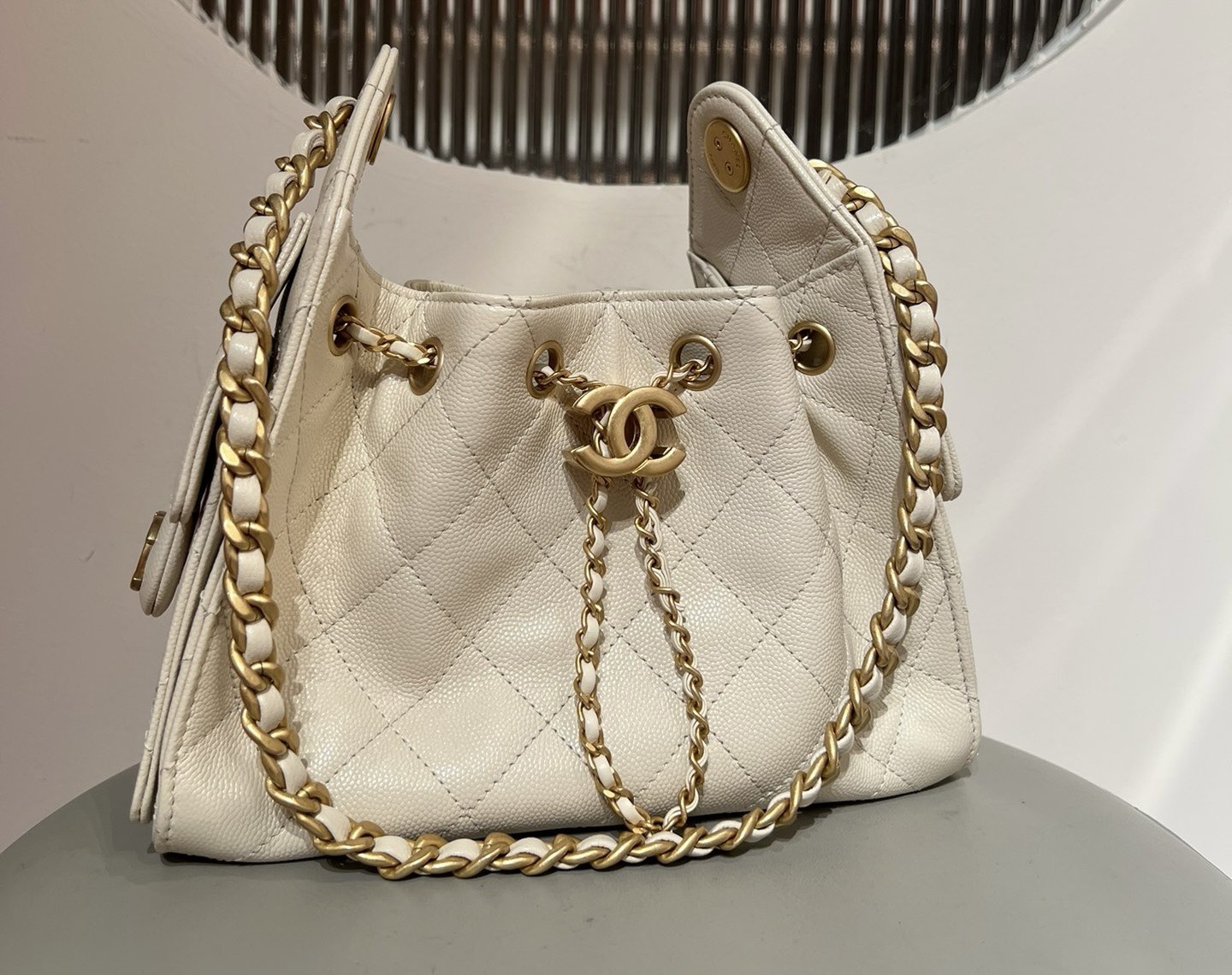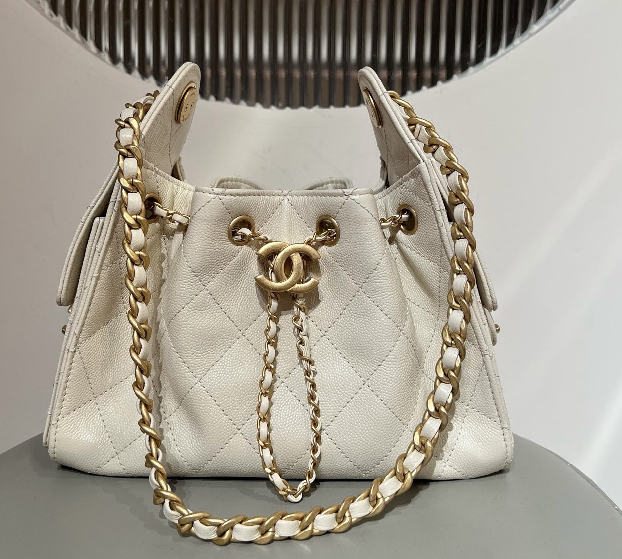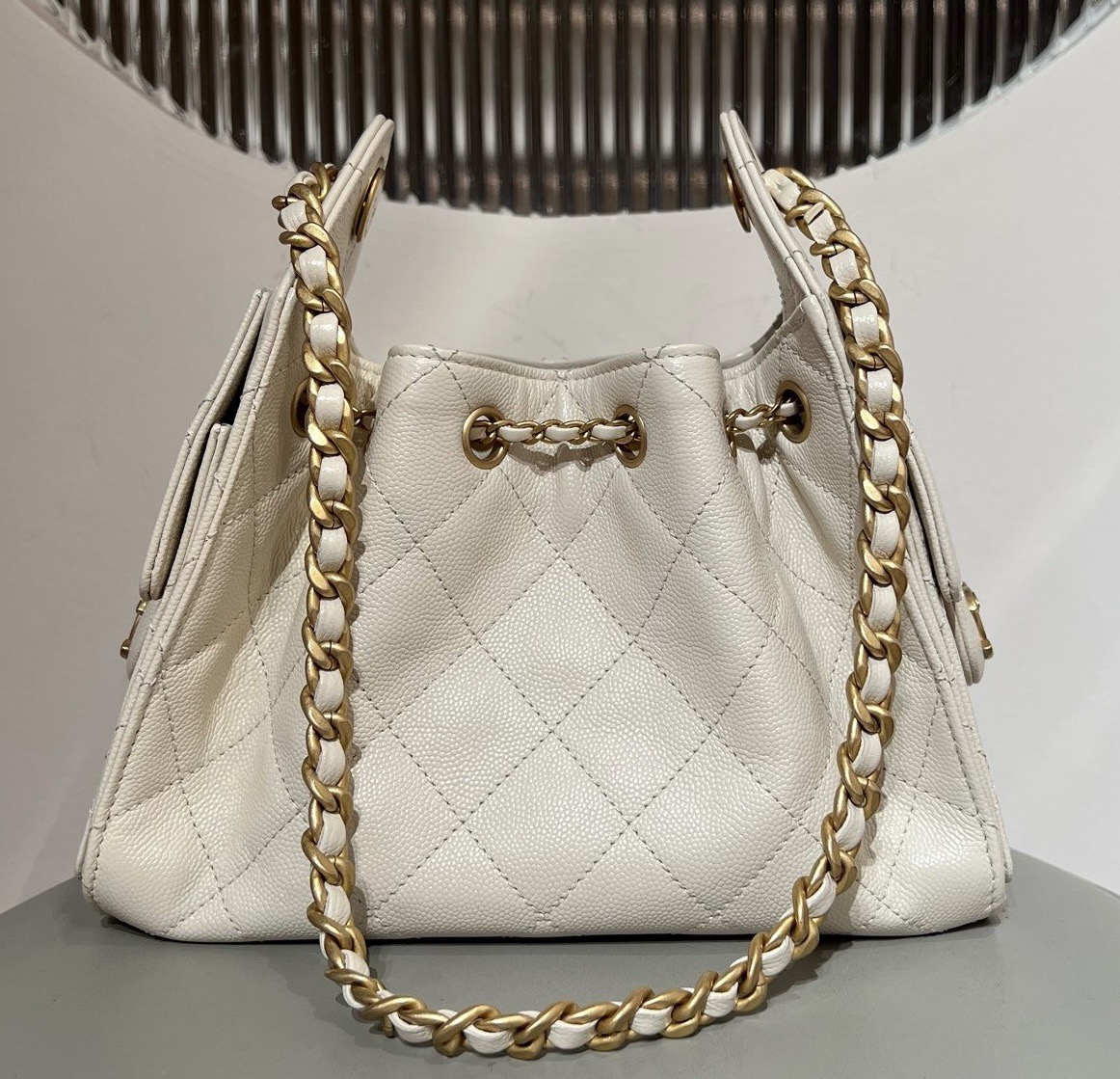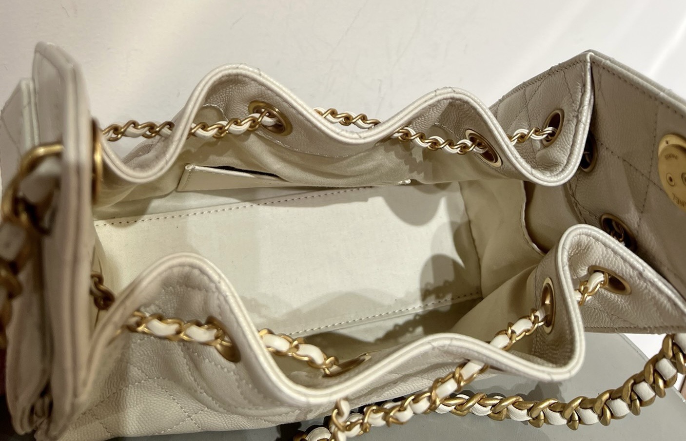 基本資訊|Chanel 25 迷你手袋 米杏色鱼子酱牛皮 Chanel 25 迷你手袋採用經典小比例包型,線條俐落緊湊,兼具裝飾性與實用性。迷你尺寸設計適合肩背或斜挎使用,能靈活應對日常外出、聚會與輕正式場合。 整體以**米杏色魚子酱牛皮(Caviar Leather)**製作,皮面顆粒立體均勻,具備良好耐磨性與結構穩定度,是 Chanel 迷你包款中兼顧實用與經典的重要材質選擇。隨附防塵袋、原裝盒與說明書,完整呈現 25bag系列的經典定位。 款式:肩背/斜挎 材質:魚子酱牛皮(Caviar Leather) 尺寸:20*22*12.5cm 皮質特徵:顆粒壓紋、耐磨、不易變形 五金:金屬鏈條、金屬五金配件 閉合方式:翻蓋式 隨附:防塵袋、原裝盒、說明書 工藝解析|魚子酱牛皮的結構優勢 魚子酱牛皮以壓紋工藝著稱,透過均勻顆粒紋理提升皮革表面強度與穩定性。Chanel 在迷你尺寸包款中選用此材質,有效避免包身因體積小而產生塌陷或邊角變形。 在製作過程中,裁片需精準對齊壓紋方向,確保整體顆粒分佈一致,使包身在視覺與結構上皆保持高度完整,體現 Chanel 對細節與耐用度的雙重要求。 細節賞析 魚子酱牛皮質感 米杏色魚子酱牛皮顆粒立體分明,觸感緊實,光線下呈現低調霧面效果,不易顯刮痕,適合日常高頻率使用。 包型結構 迷你包身比例緊湊,翻蓋與包口線條清晰,使整體外觀俐落不鬆散,即使長時間使用仍能維持原有輪廓。 縫線工藝 縫線針距均勻,線跡細緻,於邊角與受力位置進行加固處理,確保在小尺寸結構下仍具備良好耐用性。 鏈條肩帶 銀色金屬鏈條比例精緻,搭配魚子酱牛皮形成經典材質對比,肩帶長度適合肩背或斜挎,提升日常搭配彈性。 容量與使用體驗 迷你尺寸內部空間精巧但實用,可收納手機、卡夾、鑰匙與少量隨身小物。魚子酱牛皮的挺度使收納更為清晰,取放物品順暢,適合短時間外出與精緻穿搭需求。 保養建議|米杏色魚子酱牛皮 魚子酱牛皮耐磨度高,但仍建議避免長時間與尖銳物接觸。日常可用柔軟乾布清潔皮面,存放時置於防塵袋內,保持乾燥通風,以延長皮革使用壽命。 風格與氣質|Chanel 25bag經典迷你包 Chanel 25 迷你手袋米杏色魚子酱牛皮的風格關鍵在於「經典 × 實用 × 精緻比例」: • 魚子酱牛皮提升耐用度與結構感 • 米杏色基調儘顯氣質 • 迷你尺寸強調精緻與時尚感 是一款兼具收藏價值與日常實穿性的 Chanel 米杏色魚子酱迷你手袋。