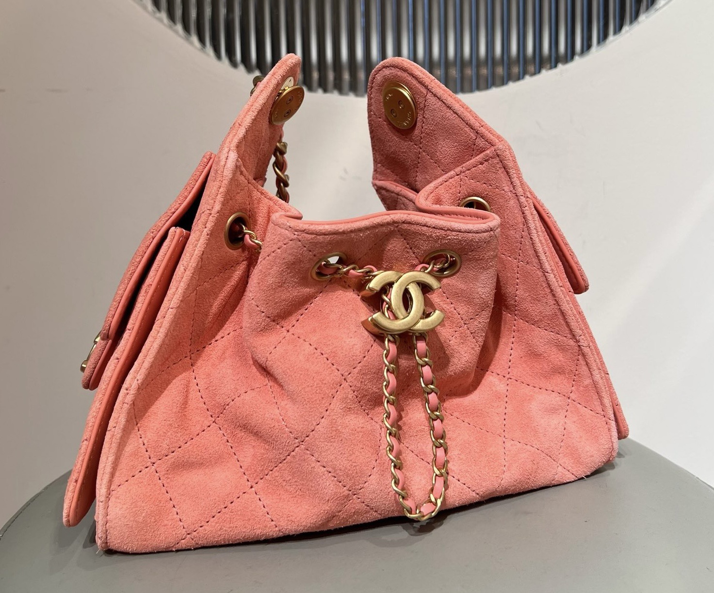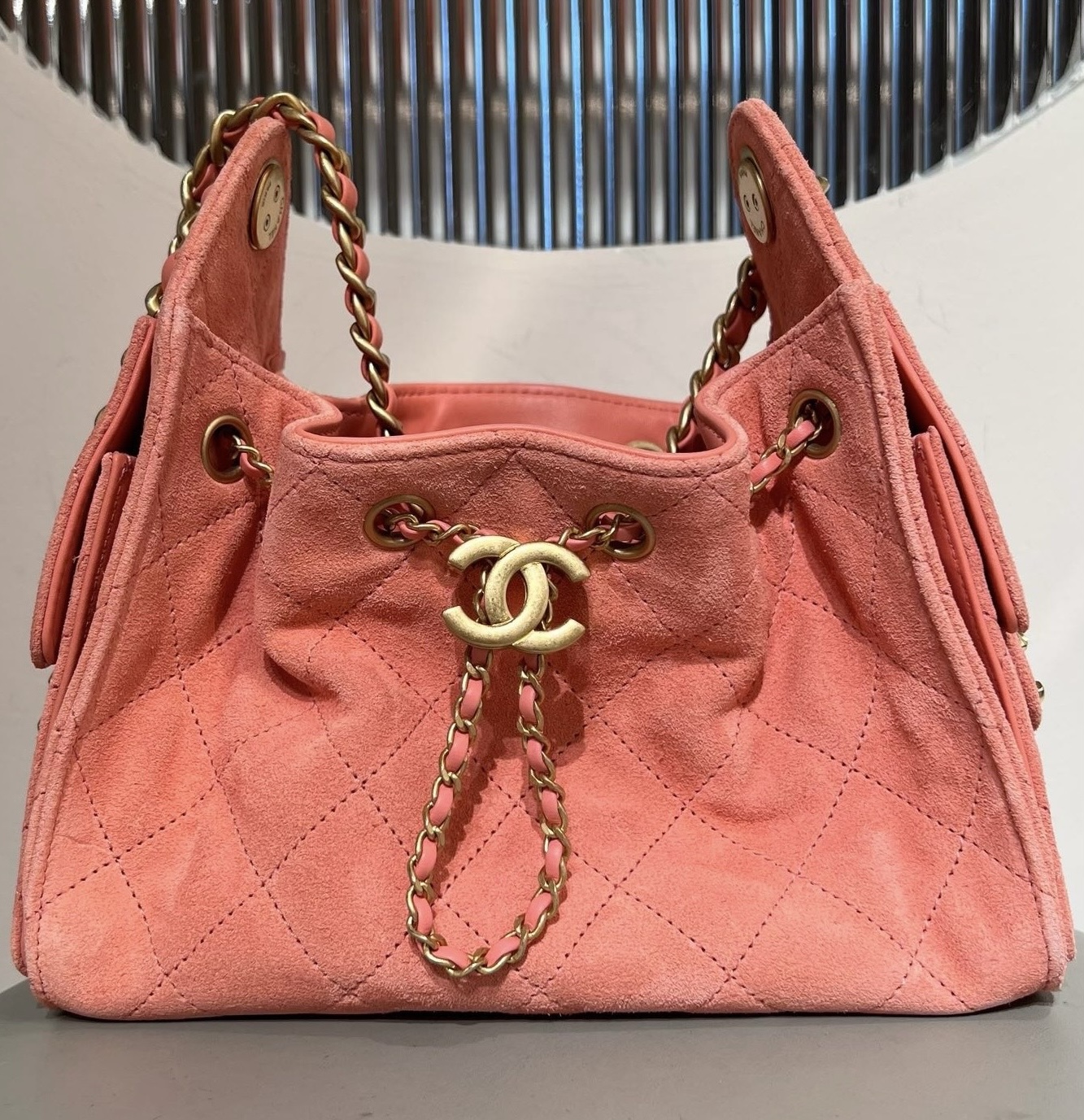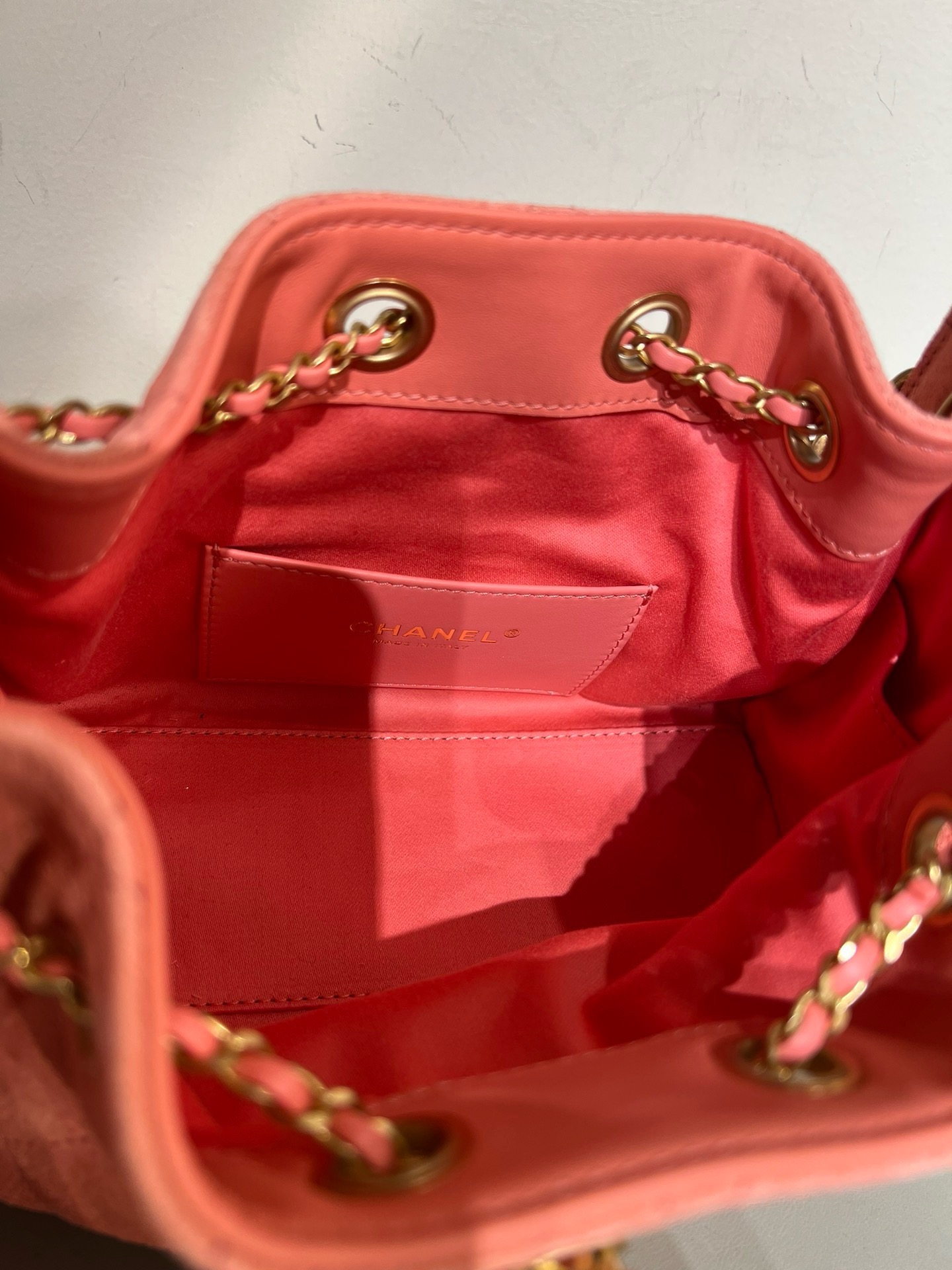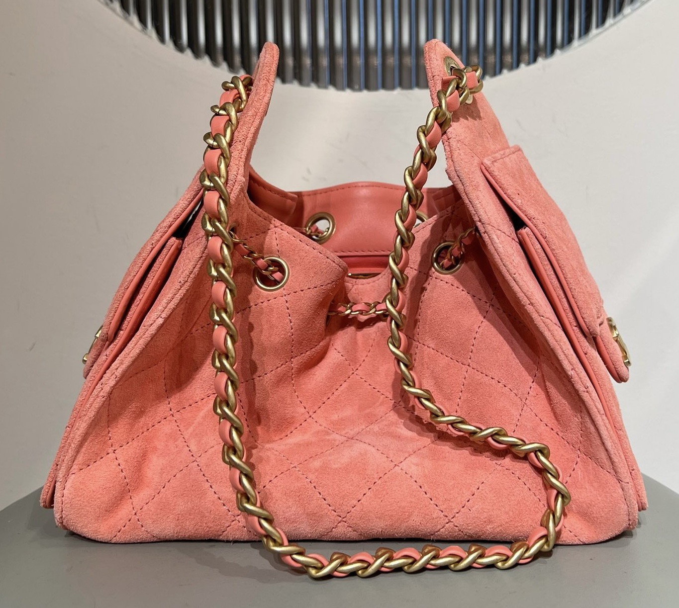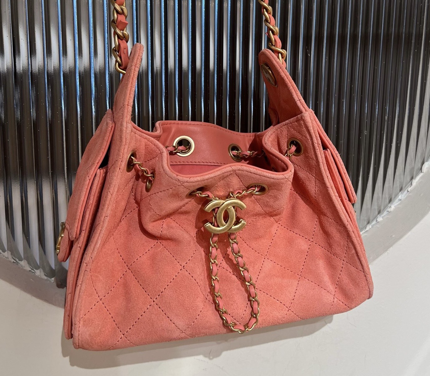 基本資訊|Chanel 25 迷你手袋 粉色牛皮革麂皮 Chanel 25 迷你手袋採用經典小比例包型,線條俐落緊湊,在精緻外觀與實用性之間取得良好平衡。迷你尺寸設計適合肩背或斜挎使用,能靈活應對日常外出、聚會與輕正式場合。 整體以**粉色牛皮革麂皮(Suede Calf Leather)**製作,皮面絨感細膩均勻,呈現柔和霧面質感,使粉色調更顯溫潤而不甜膩。牛皮革麂皮在保持柔軟觸感的同時,仍具備良好結構穩定度,是 Chanel 迷你包款中兼顧造型感與質感層次的重要材質選擇。隨附防塵袋、原裝盒與說明書,完整呈現 25 系列的精緻定位。 款式:肩背/斜挎 材質:牛皮革麂皮(Suede Calf Leather) 尺寸:20*22*12.5cm 皮質特徵:細膩絨面、霧面視覺、柔軟且具結構感 五金:金屬鏈條、金屬五金配件 閉合方式:翻蓋式 隨附:防塵袋、原裝盒、說明書 工藝解析|牛皮革麂皮的質感層次 牛皮革麂皮透過細緻的絨面處理,呈現柔和觸感與低調霧面效果,在粉色調下展現輕盈且溫潤的視覺層次。Chanel 將此材質運用於迷你尺寸包款,有效平衡造型感與實用性,避免包身過於柔軟而影響整體輪廓。 製作過程中,裁片需特別留意絨面方向與密度一致性,確保包身色澤均勻,並於邊角與受力位置進行加固處理,使包款在長時間使用後仍能維持良好結構。 細節賞析 牛皮革麂皮質感 粉色牛皮革麂皮絨感細膩柔和,觸感溫潤,霧面表現使色澤更顯內斂,不易產生強烈反光,提升整體耐看度。 包型結構 迷你包身比例緊湊,翻蓋與包口線條清晰,使整體外觀俐落不鬆散,兼顧視覺精緻度與實用穩定性。 縫線工藝 縫線針距均勻、線跡細緻,於轉角與受力點進行加固處理,確保在小尺寸結構下仍具備良好耐用度。 鏈條肩帶 金屬鏈條比例精緻,與霧面麂皮形成細膩材質對比,肩帶長度適合肩背或斜挎,提升日常搭配靈活性。 容量與使用體驗 迷你尺寸內部空間精巧但實用,可收納手機、卡夾、鑰匙與少量隨身小物。牛皮革麂皮的柔軟特性使包身更貼合身形,背負時輕盈舒適,適合短時間外出與精緻穿搭需求。 保養建議|粉色牛皮革麂皮 牛皮革麂皮建議避免雨水與油漬接觸,日常可使用麂皮刷輕柔整理絨面方向。存放時置於防塵袋內,保持乾燥通風,避免擠壓與長時間受潮,以維持皮革質感與色澤。 風格與氣質|Chanel 粉色麂皮迷你包 Chanel 25 迷你手袋粉色牛皮革麂皮的風格關鍵在於「柔和 × 精緻 × 層次感」: • 牛皮革麂皮帶來溫潤霧面質感 • 粉色調展現輕柔且不甜膩的視覺效果 • 迷你比例強調精緻造型與搭配彈性 是一款兼具造型感、質感層次與日常實用性的 Chanel 粉色牛皮革麂皮迷你手袋。