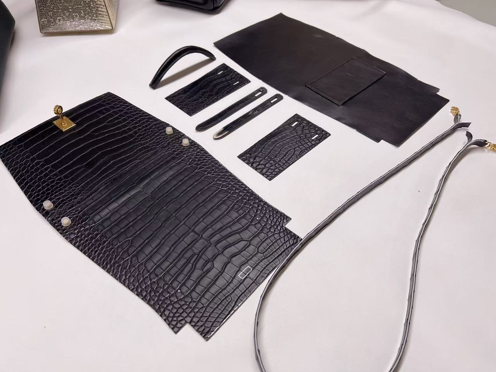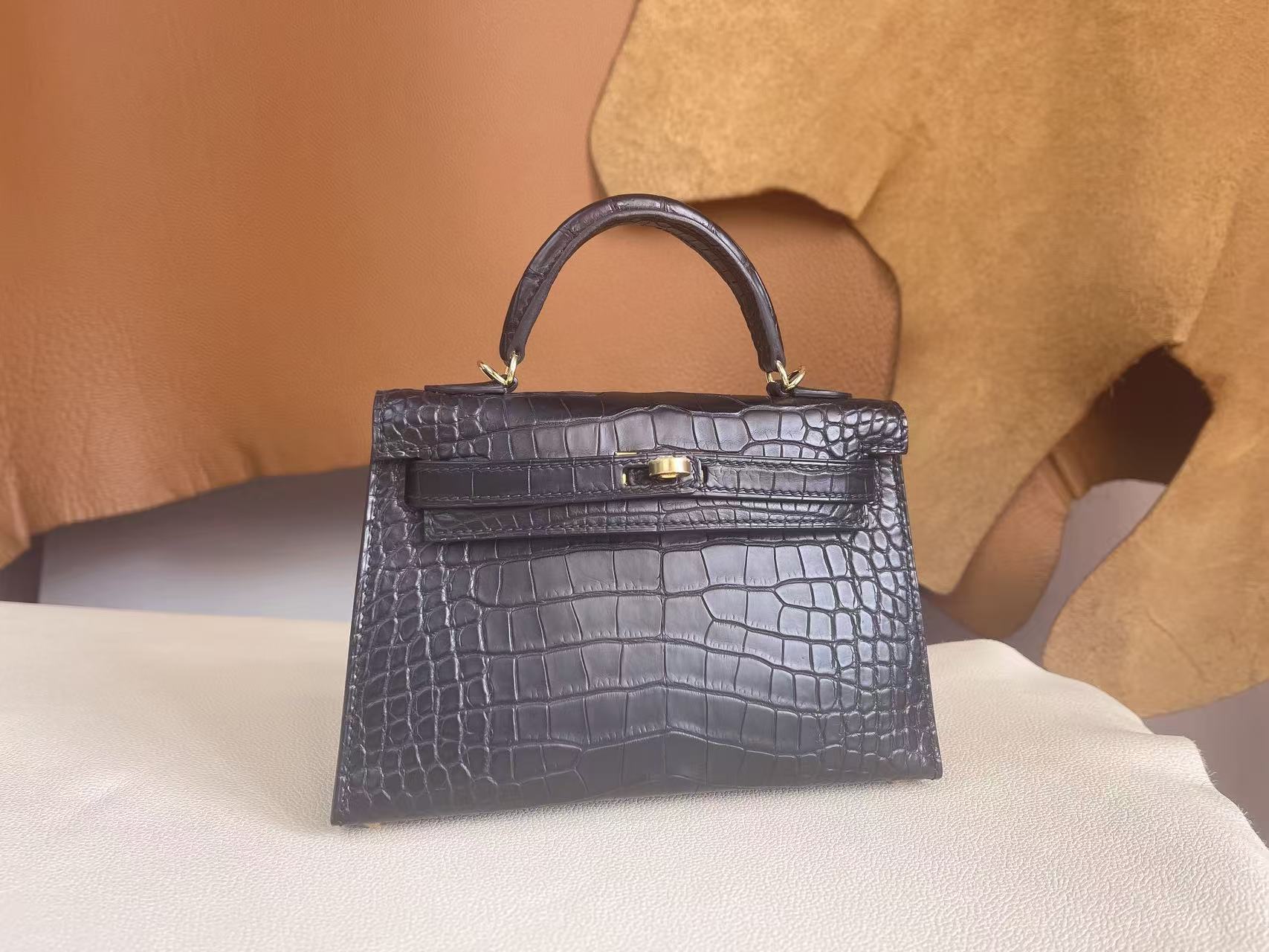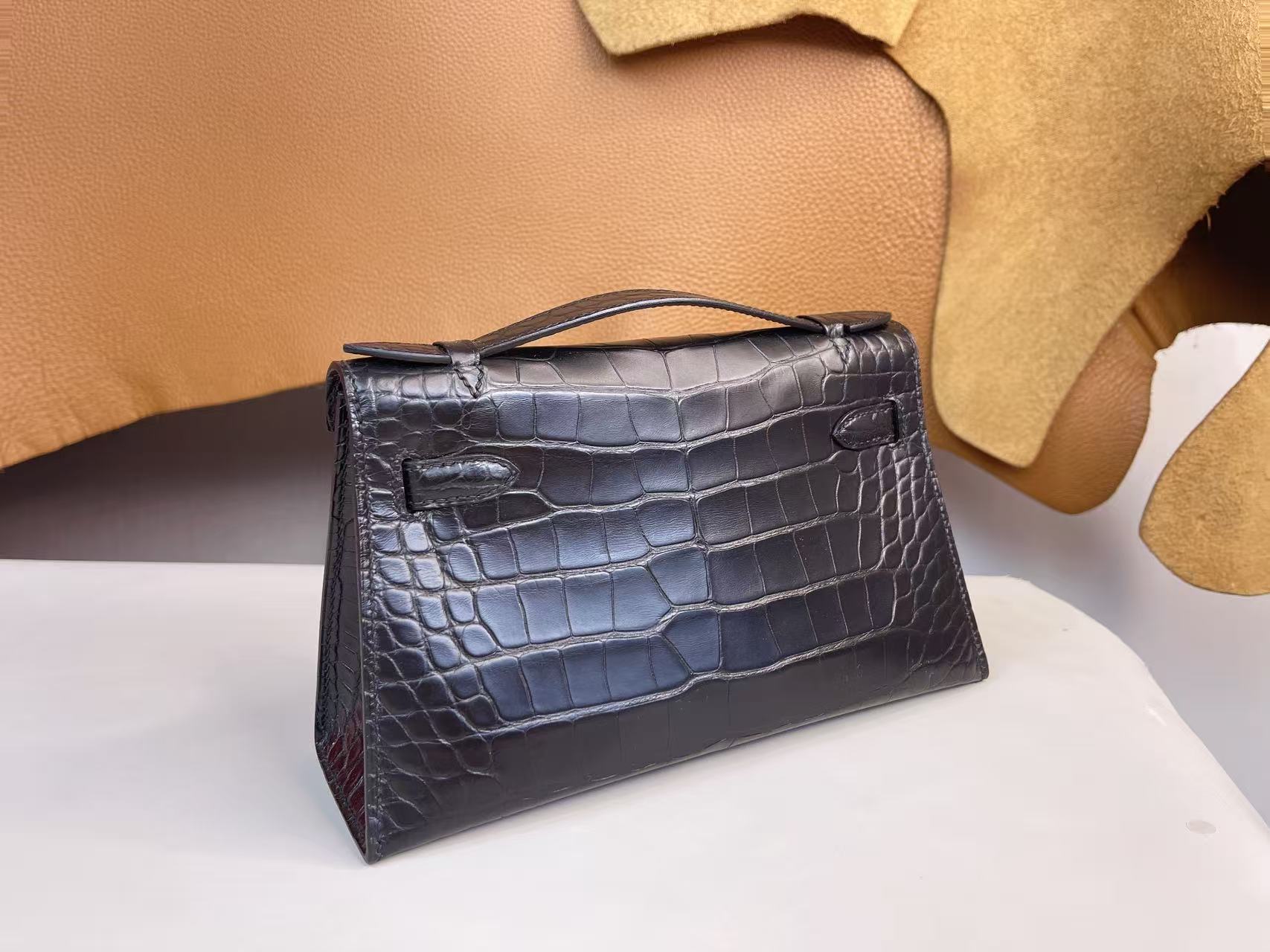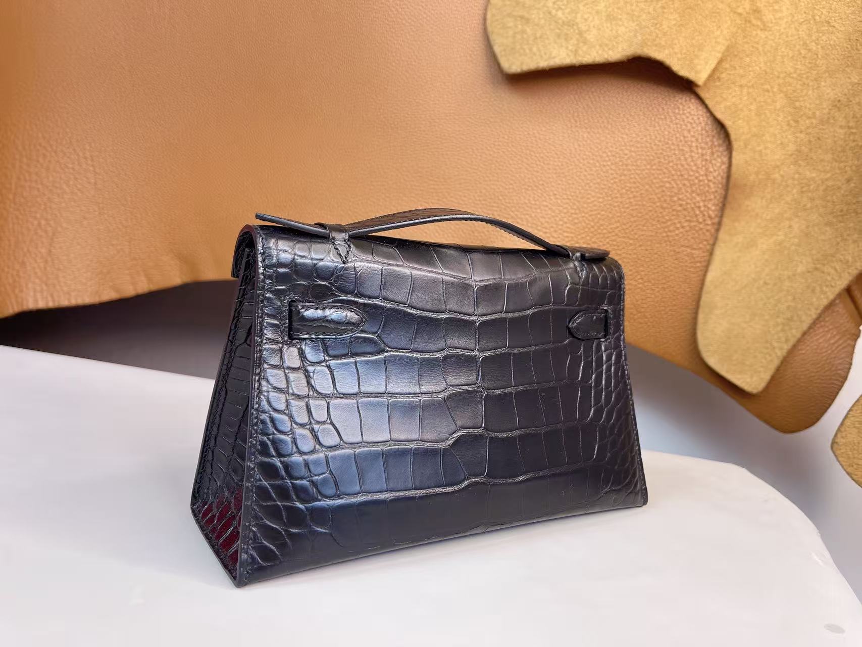 鱷魚皮需避免大量水漬接觸,建議保持乾燥環境存放,並避免壓折鱗片紋路。深色皮革搭配淺色服飾時需留意顏色摩擦;存放期間使用防塵袋與內部填充物以維持包型。