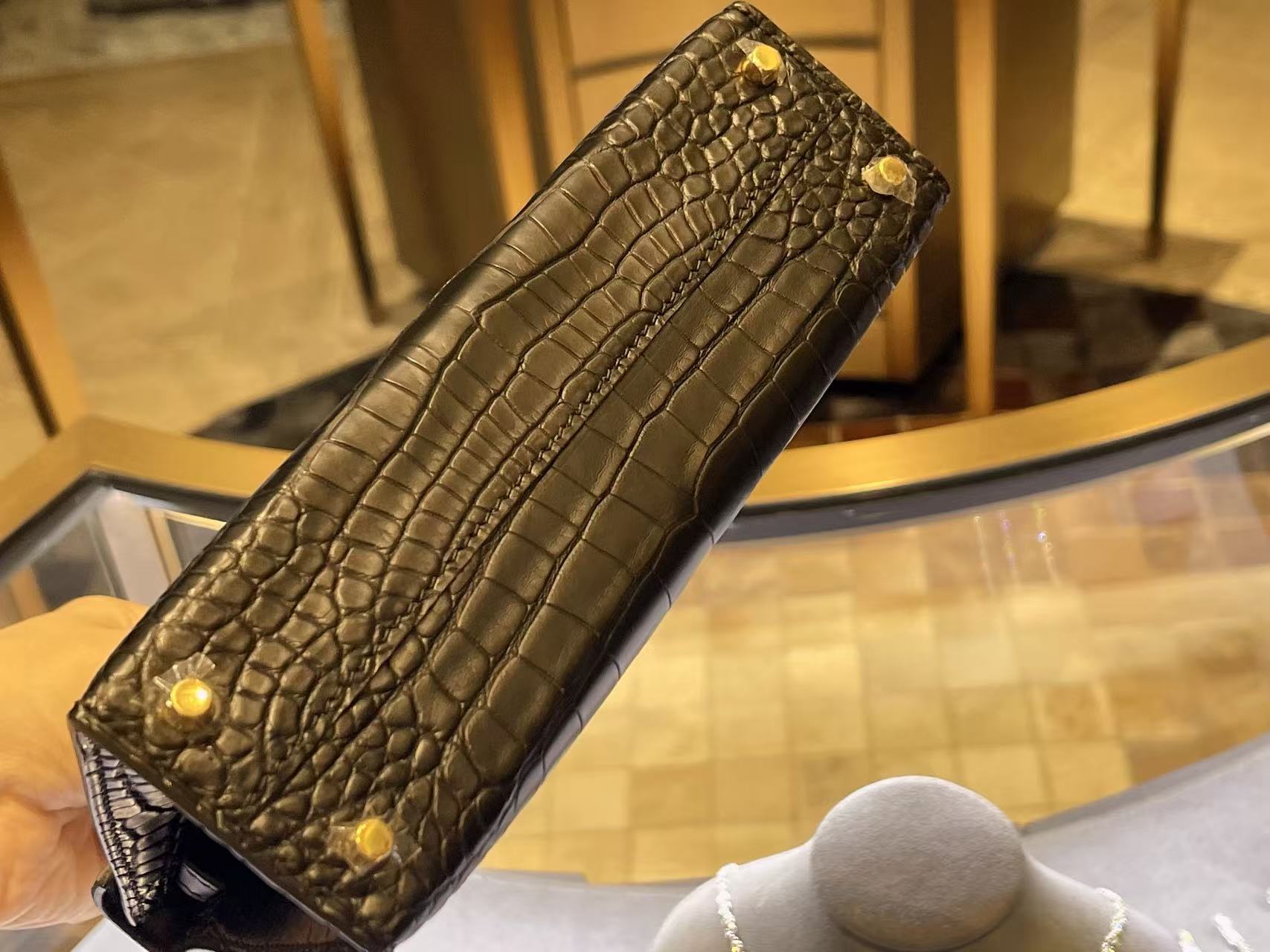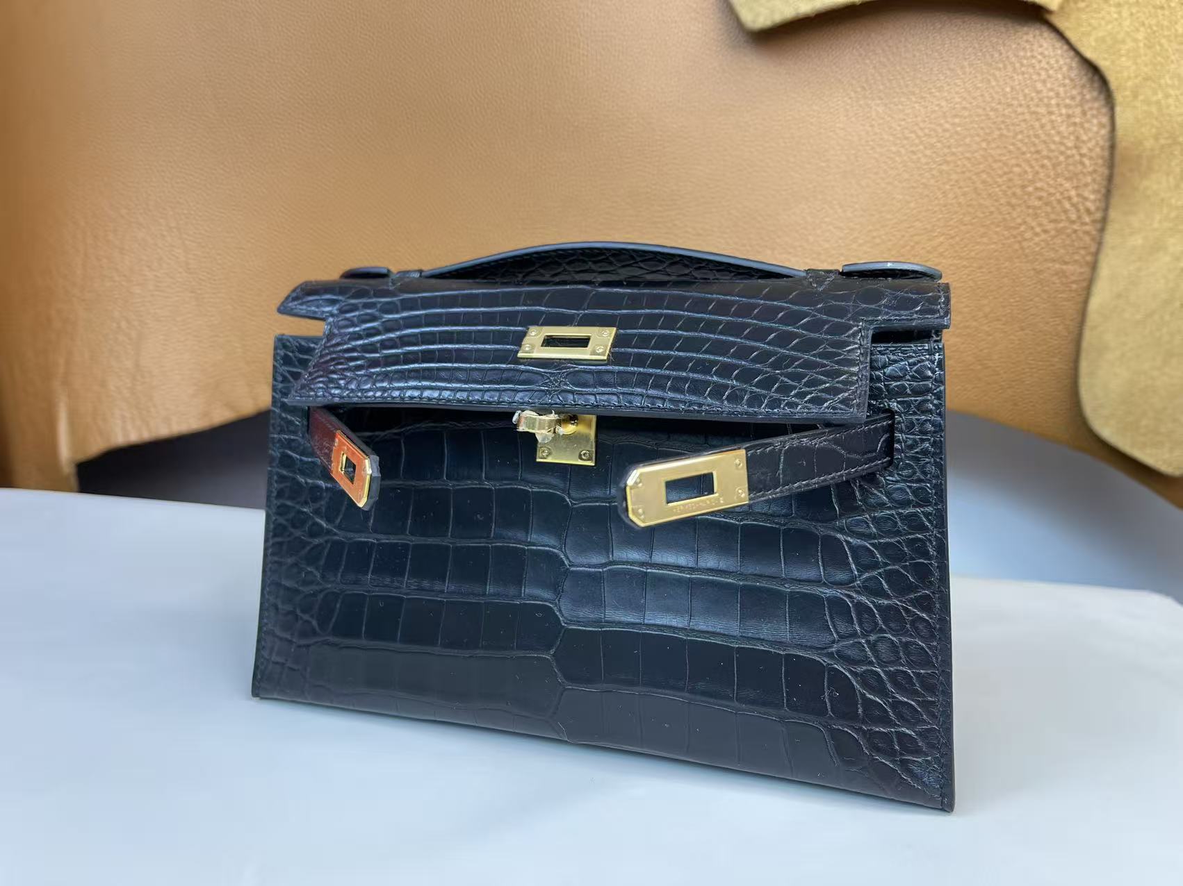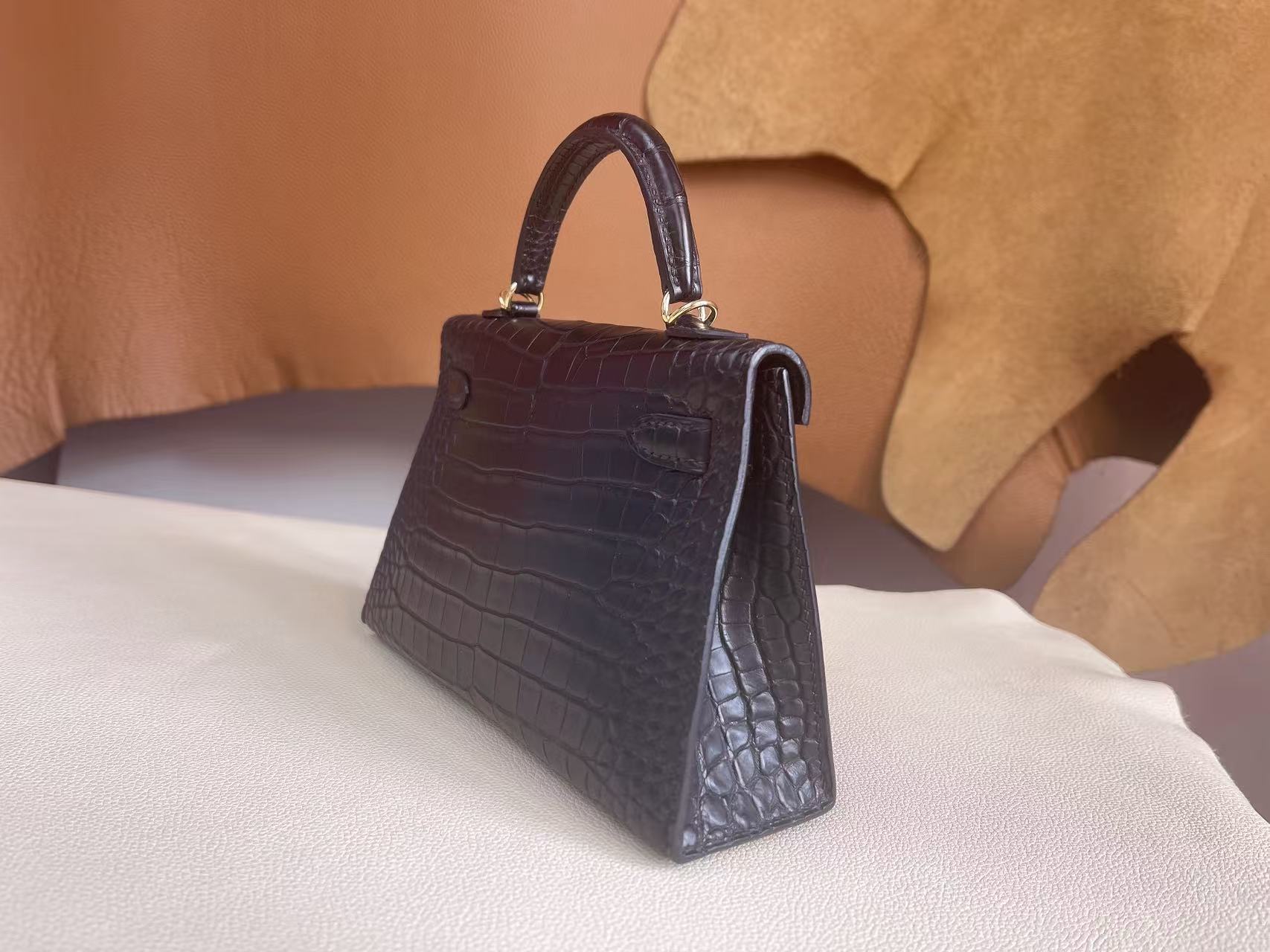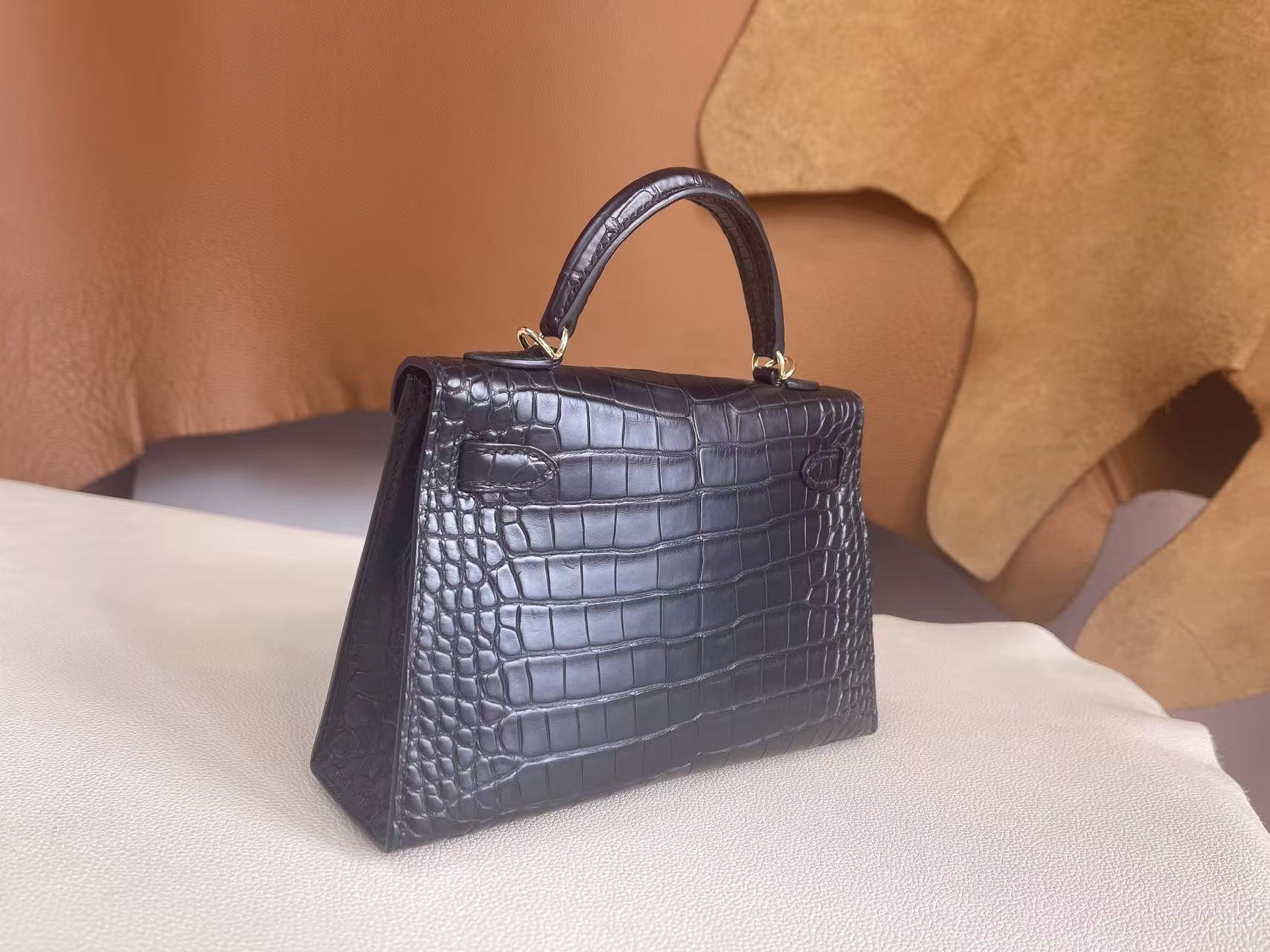 鱷魚皮需避免大量水漬接觸,建議保持乾燥環境存放,並避免壓折鱗片紋路。深色皮革搭配淺色服飾時需留意顏色摩擦;存放期間使用防塵袋與內部填充物以維持包型。