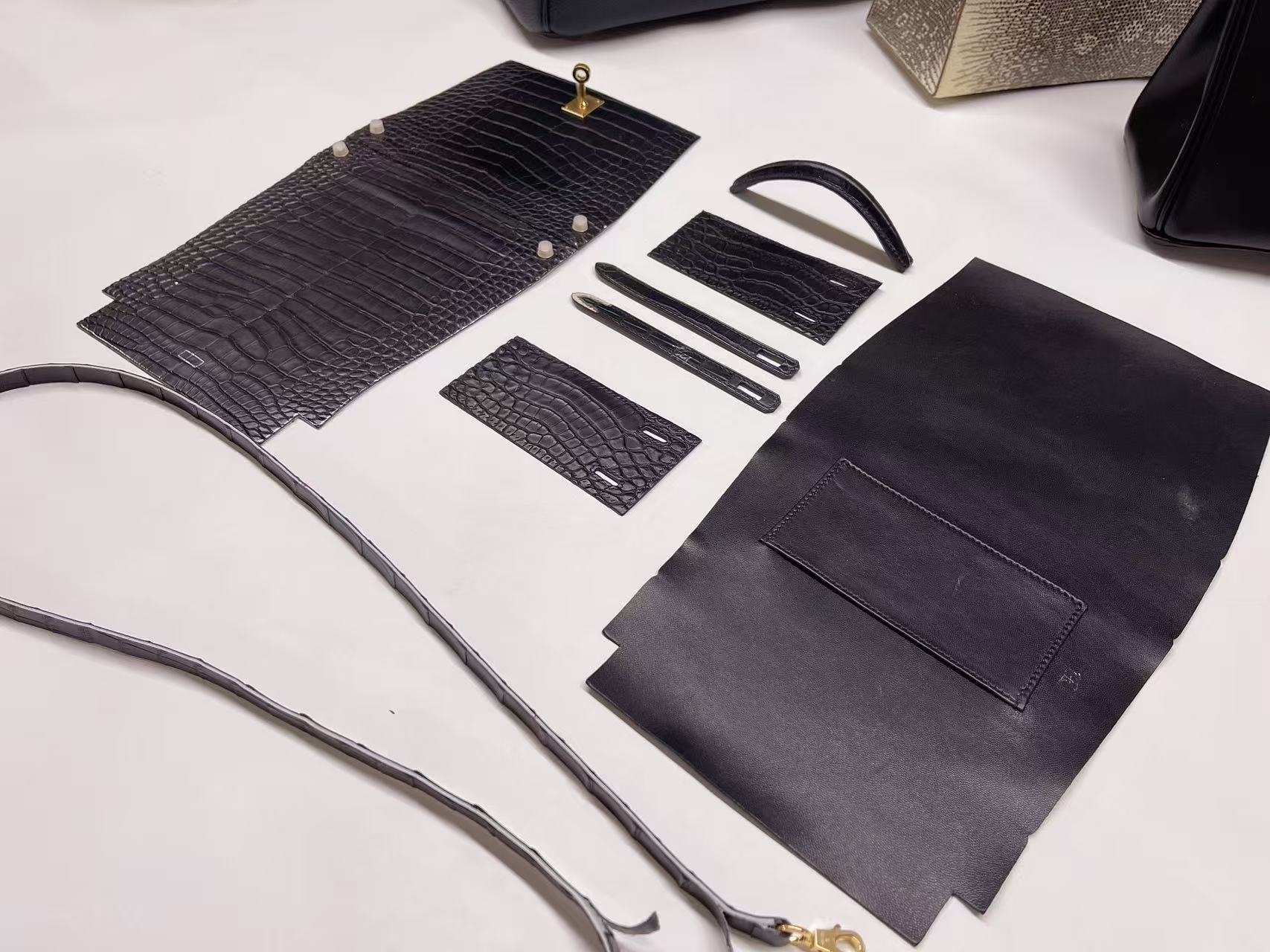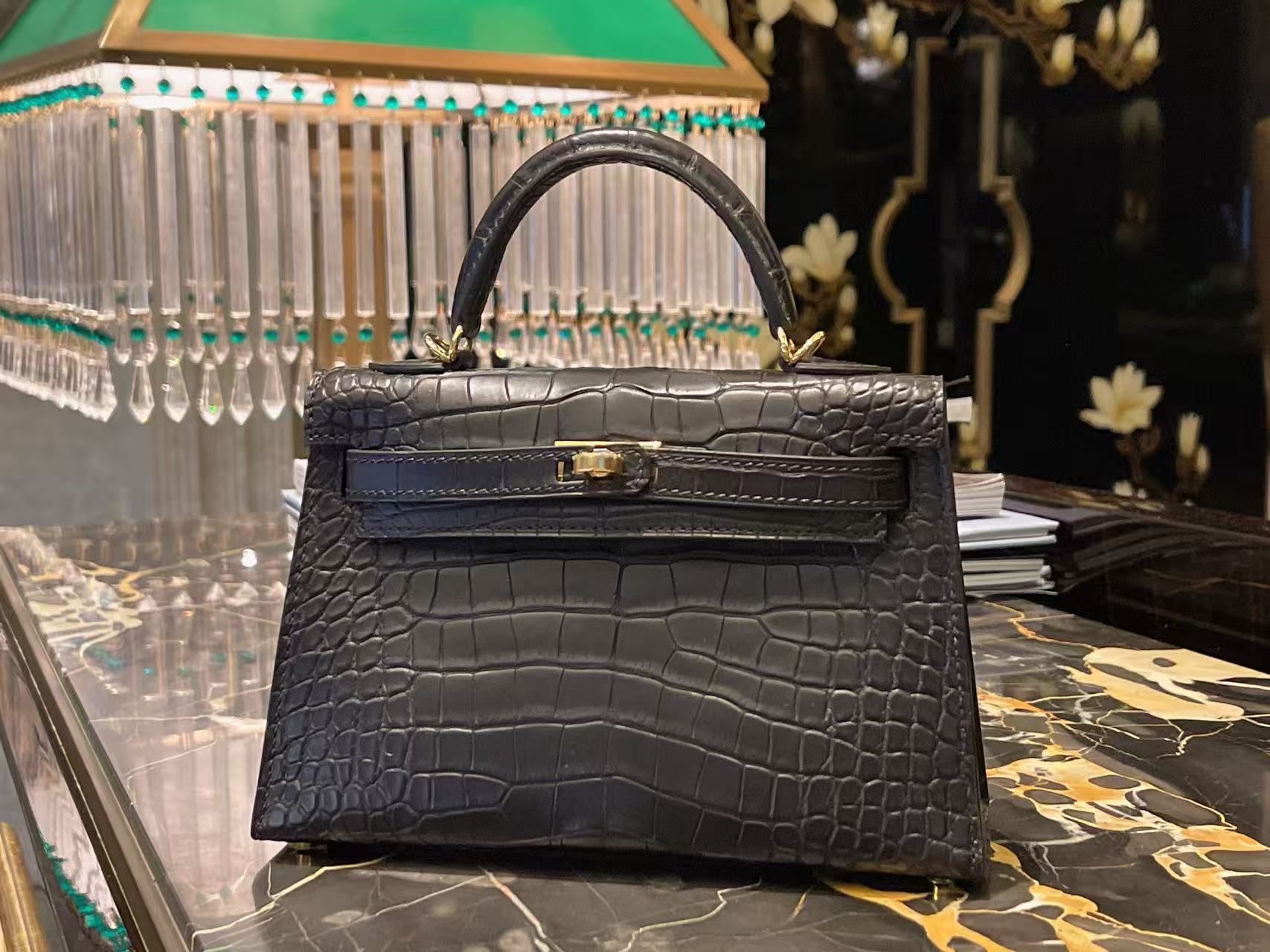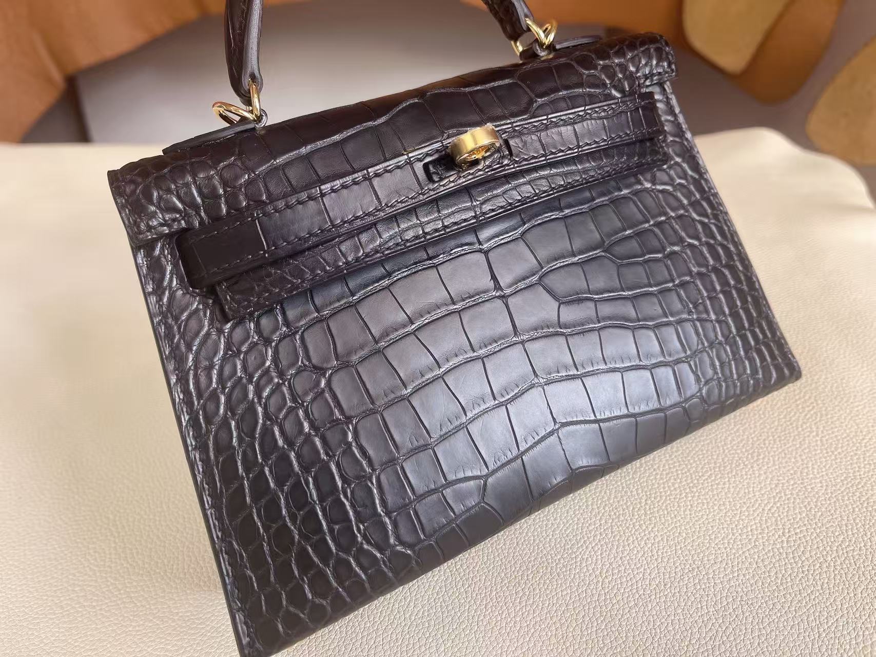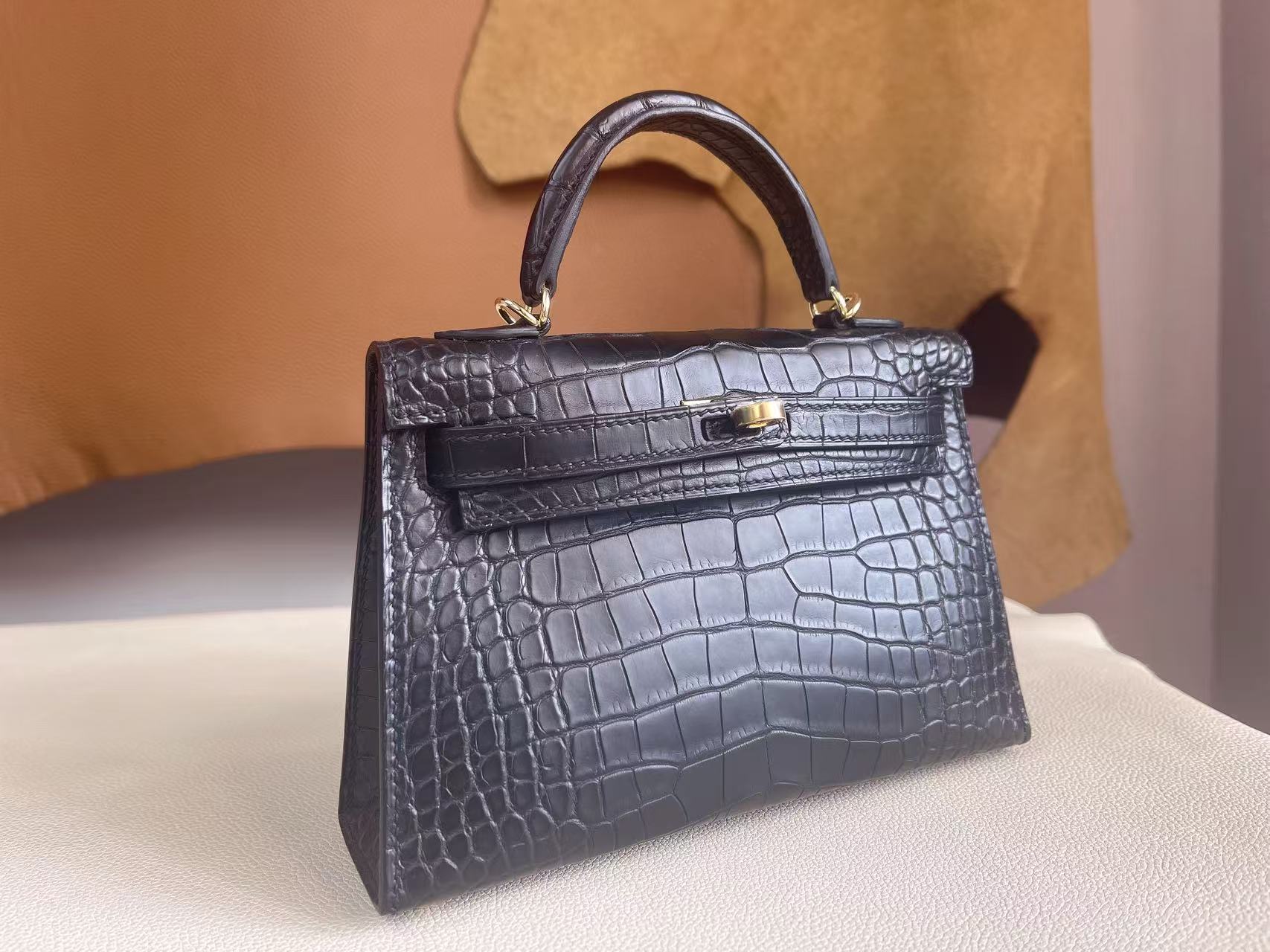 鱷魚皮需避免大量水漬接觸,建議保持乾燥環境存放,並避免壓折鱗片紋路。深色皮革搭配淺色服飾時需留意顏色摩擦;存放期間使用防塵袋與內部填充物以維持包型。