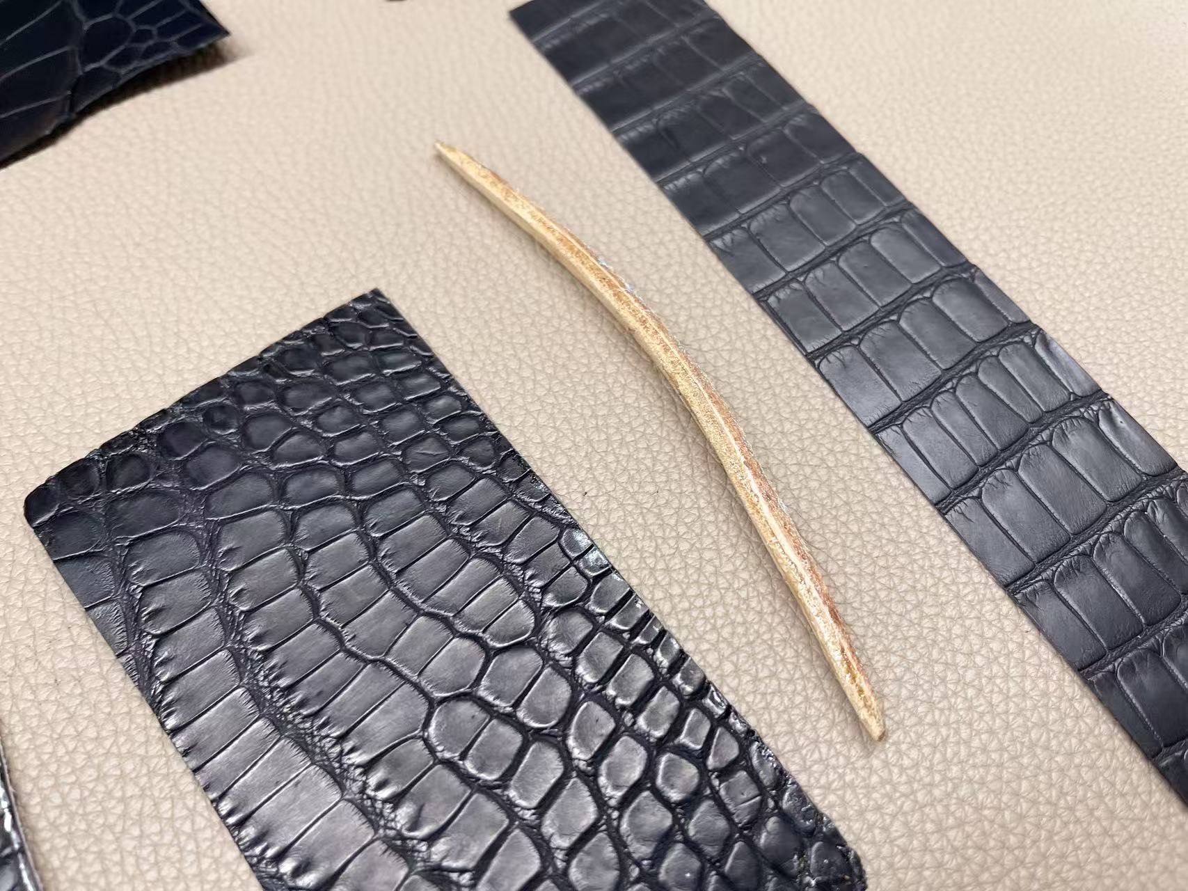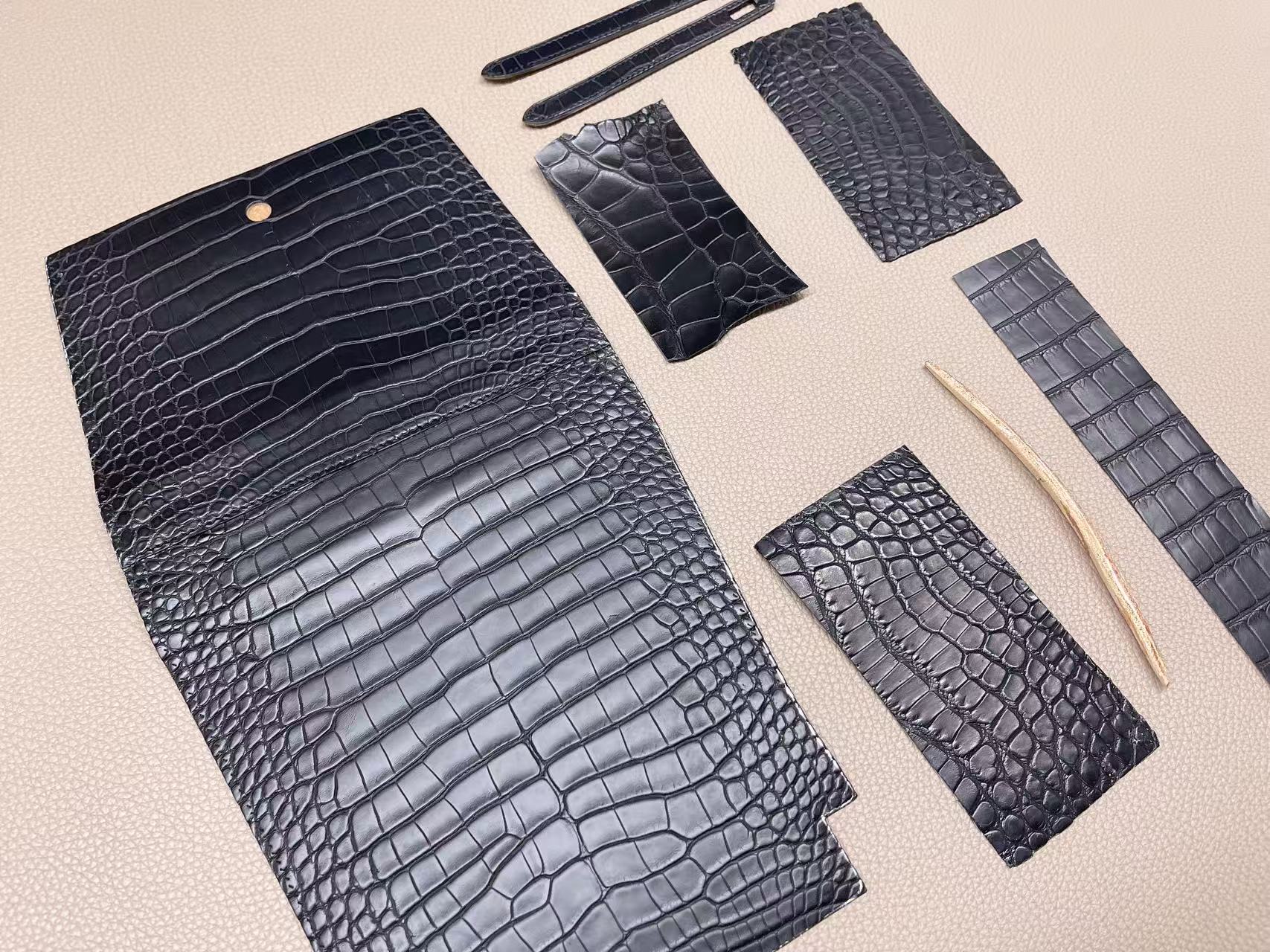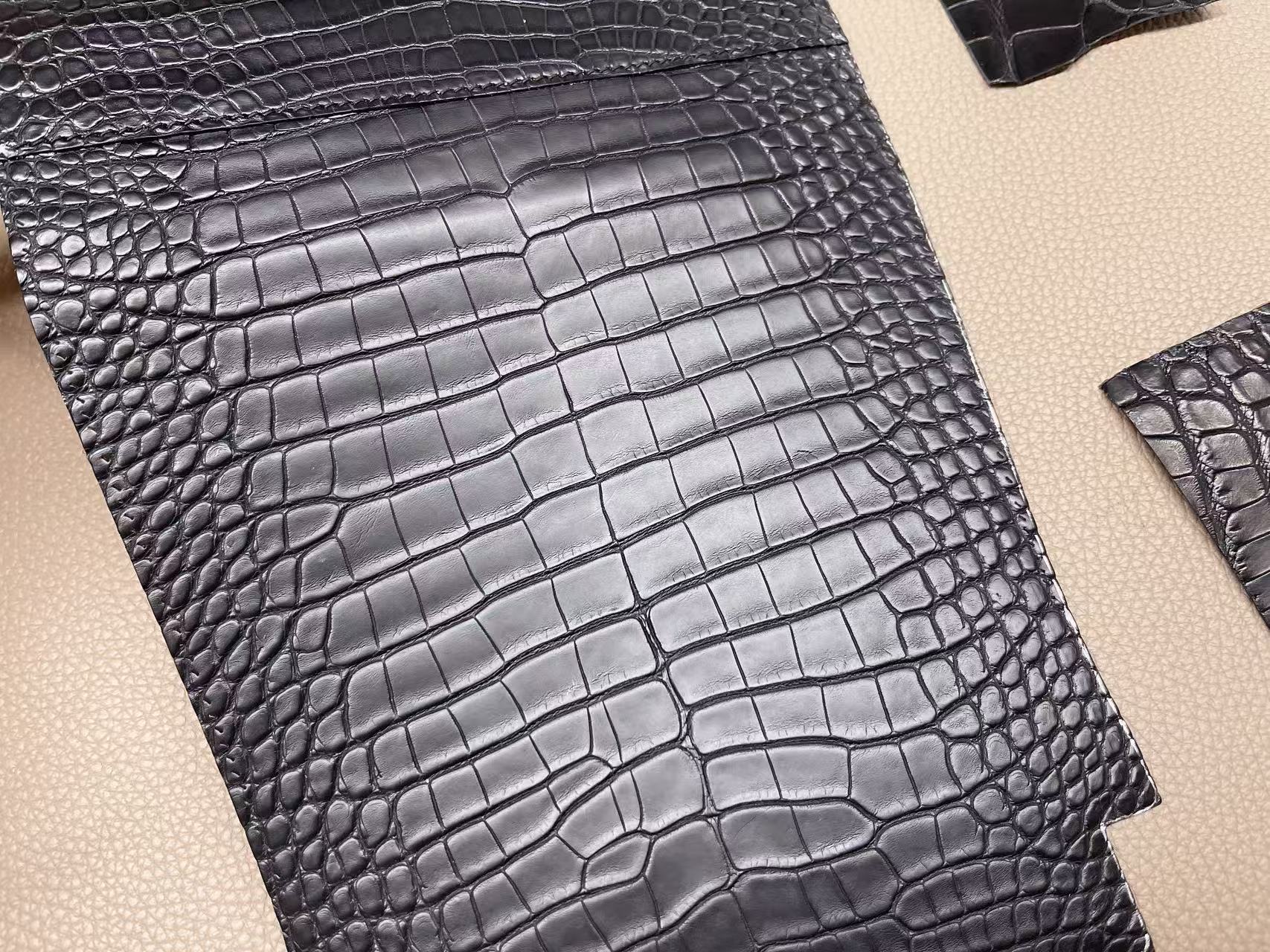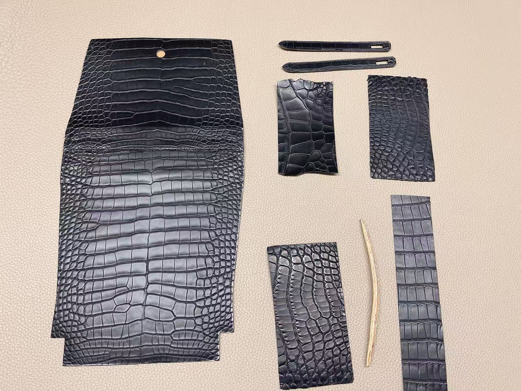 鱷魚皮收邊工藝需高度控制,邊緣經多次上邊油與拋光處理,使曲線精準一致。
