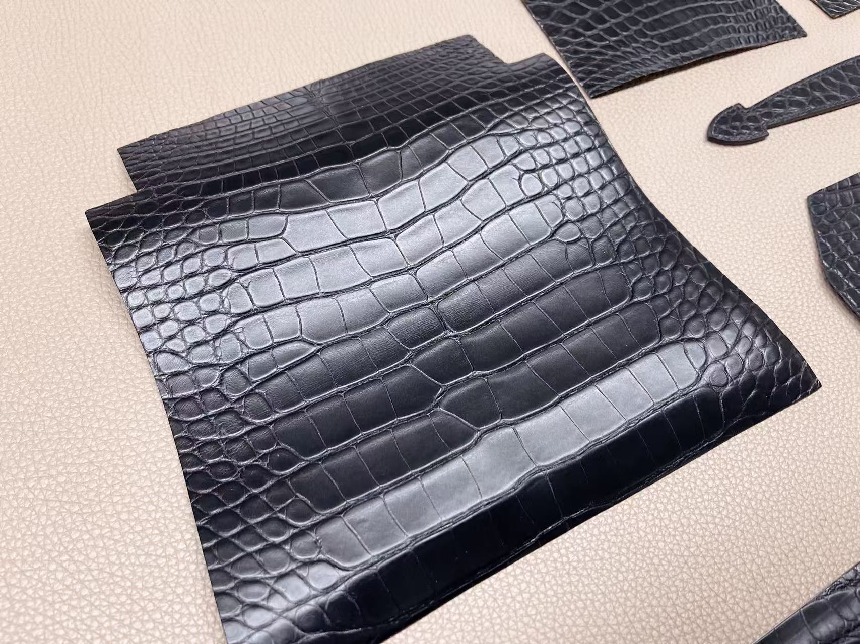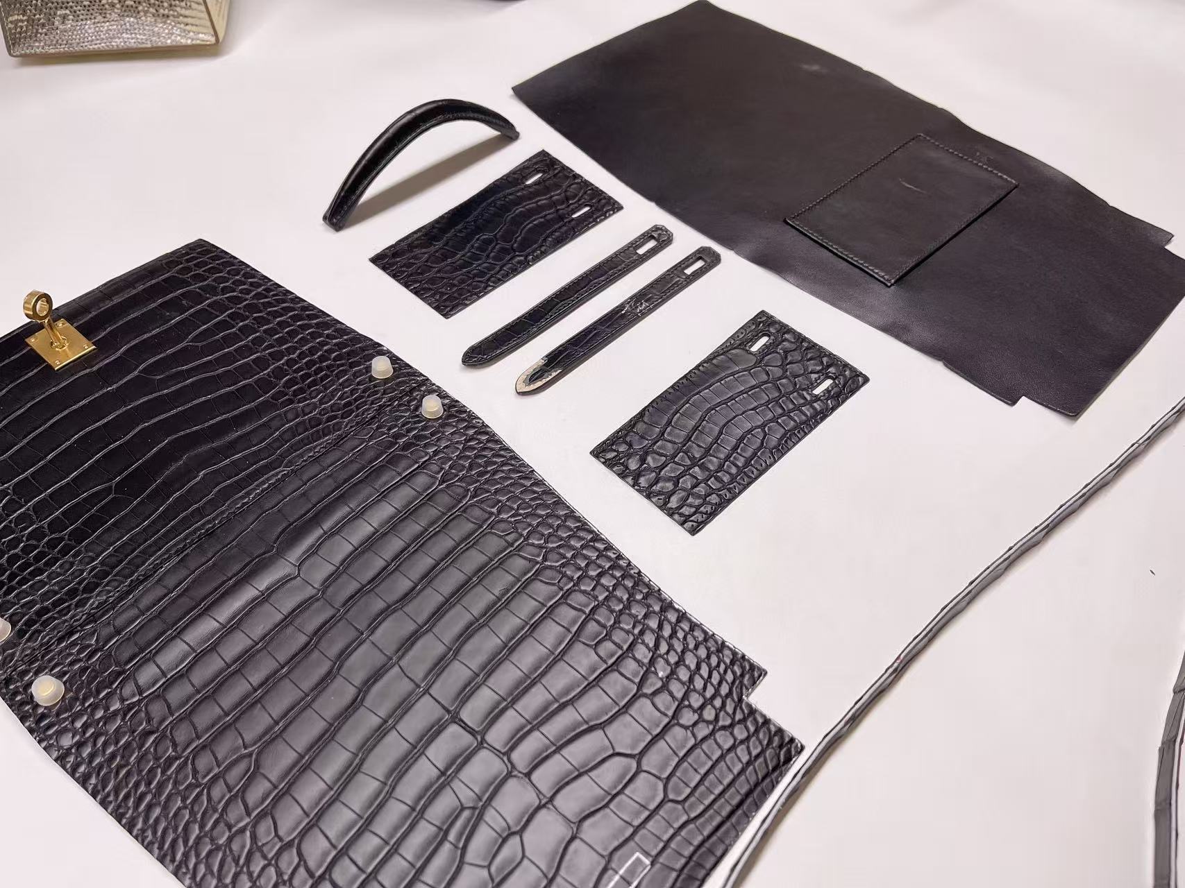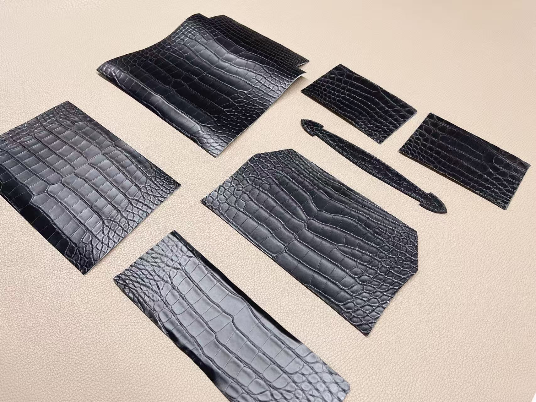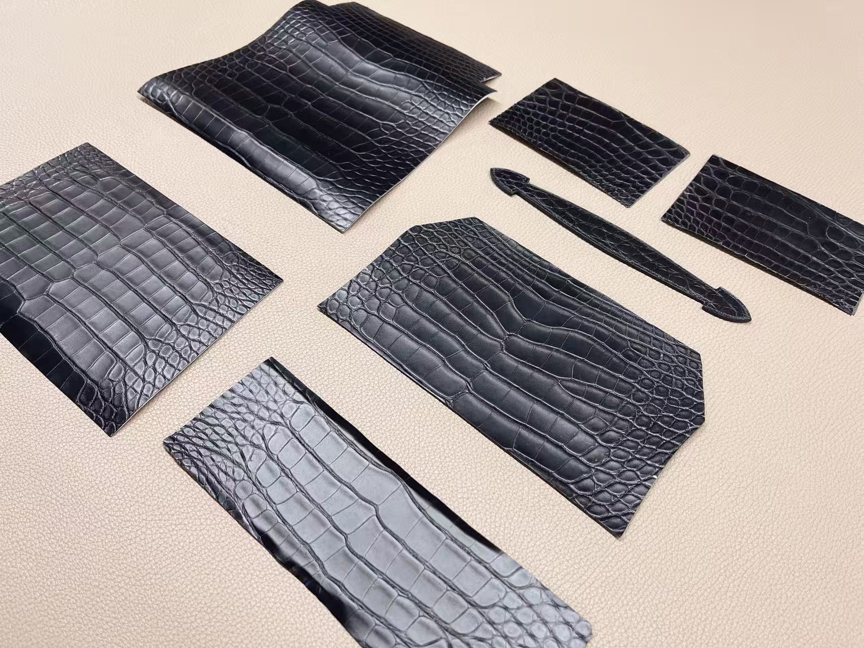 鱷魚皮收邊工藝需高度控制,邊緣經多次上邊油與拋光處理,使曲線精準一致。