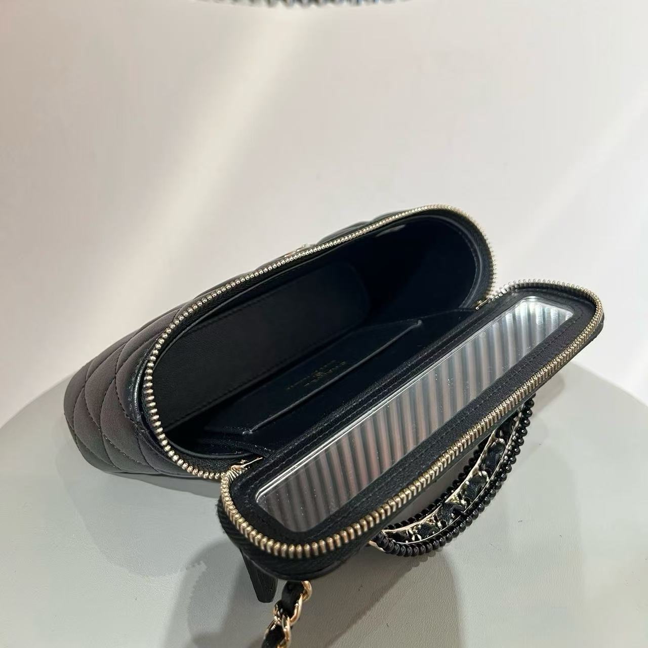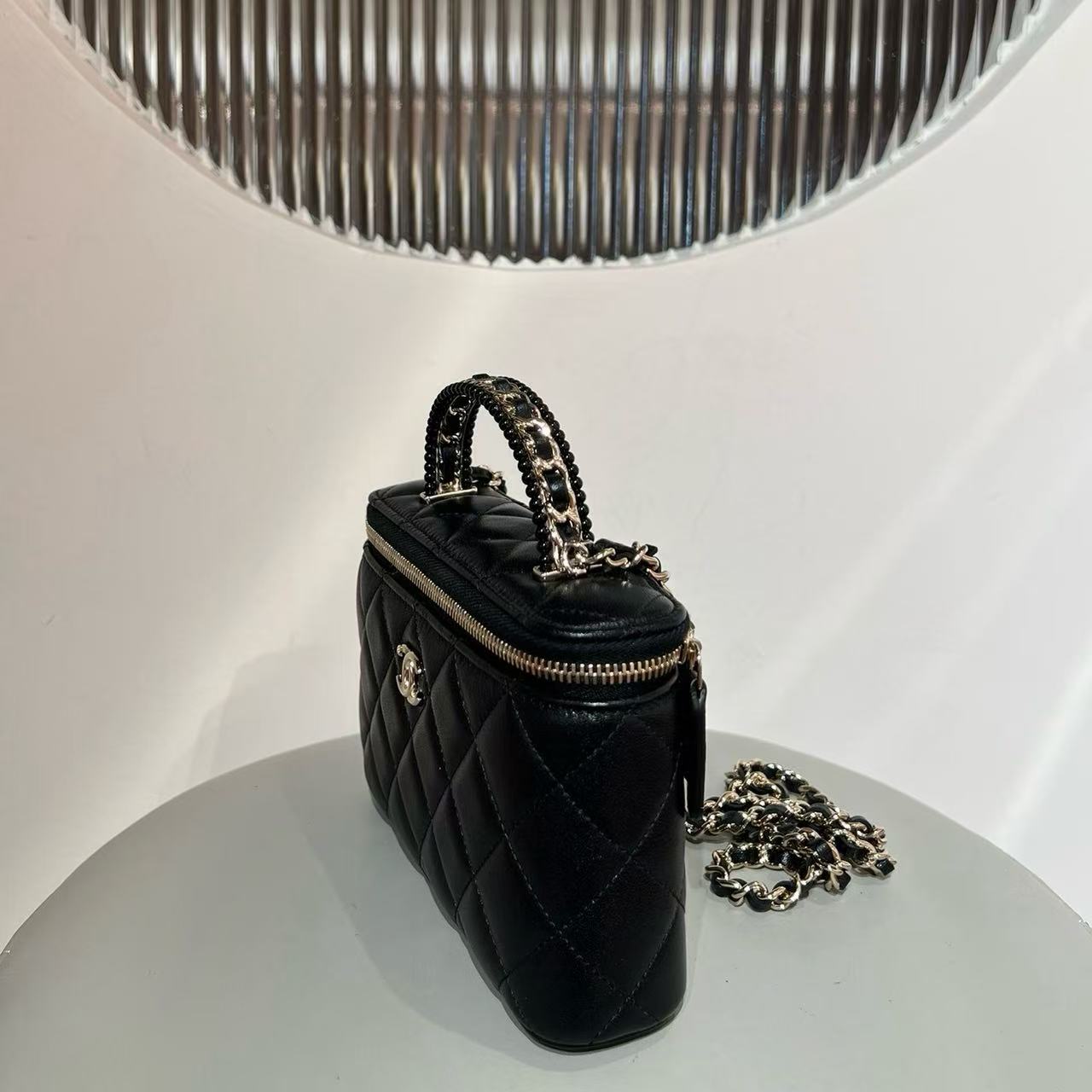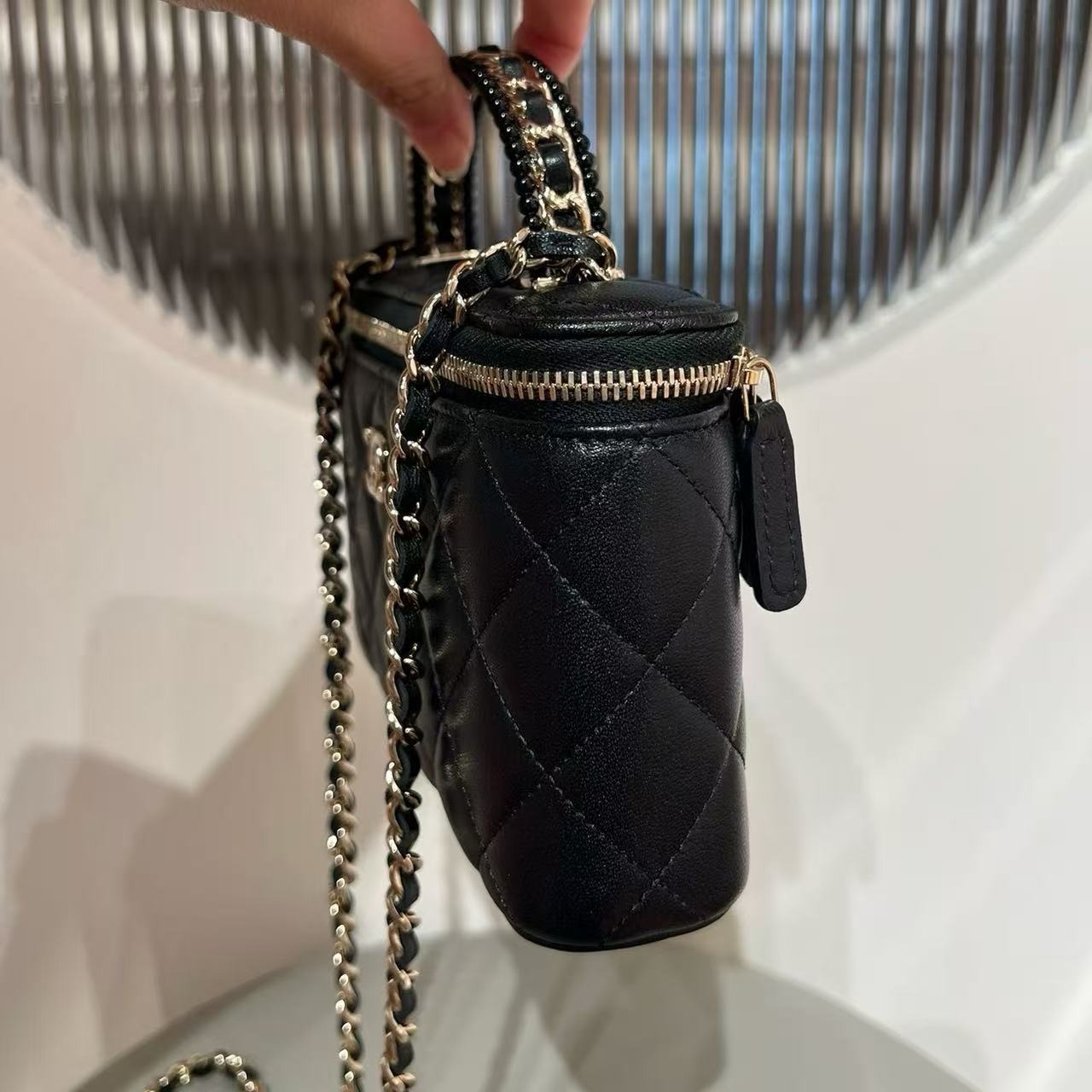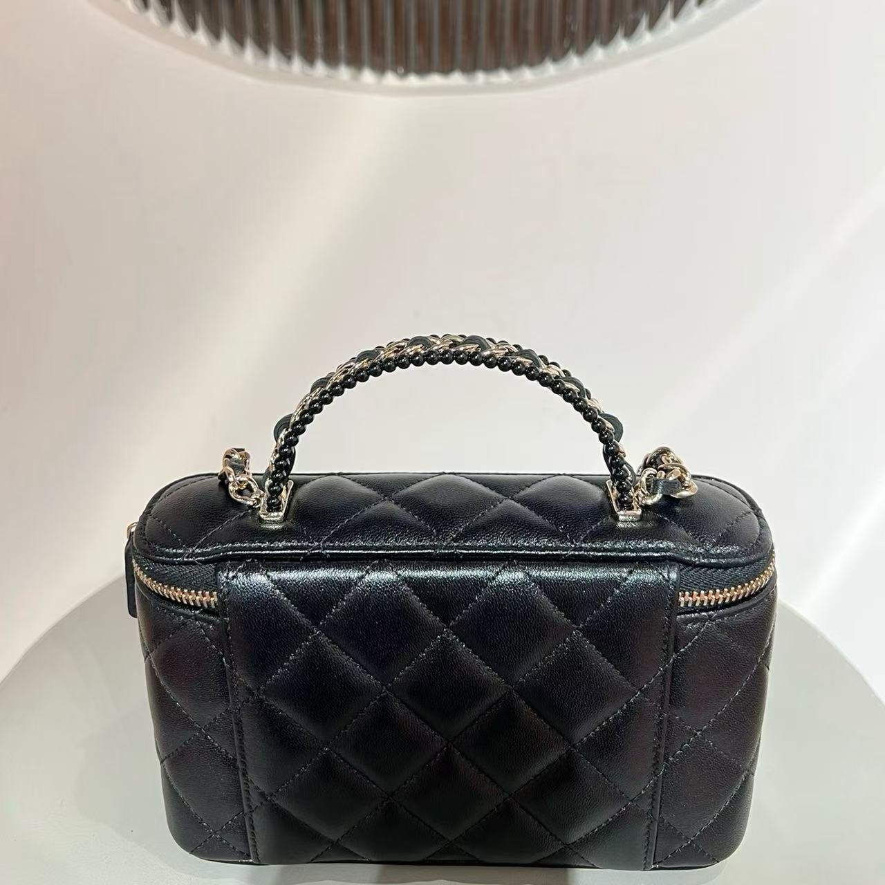 基本資訊 Chanel 25C Box Bag 採用俐落方盒輪廓,具備單肩、斜挎與手提多種揹法。包型尺寸為 20 × 8 × 12 cm,比例緊湊而利落,適合日常與輕正式場合。整體以粒面小牛皮打造,手感緊緻細膩,搭配翻蓋磁扣設計,並附有防塵袋、原裝盒與說明書,呈現此系列一貫的純粹風格。 款式:單肩/斜挎/手提 材質:粒面小牛皮(Caviar Leather) 皮質特徵:菱格紋車線 五金:金屬鏈條、金屬徽標扣 閉合方式:翻蓋磁扣 隨附:防塵袋、原裝盒、說明書 工藝解析 Box Bag 的造型核心來自其立體方正的盒型結構。內層支撐材料與外層皮革的比例經過精準掌握,使包身在長時間使用後仍能保持良好挺度。翻蓋式磁扣開闔順暢,線條乾淨俐落,呈現 Chanel 擅長的現代美學。 粒面小牛皮以耐磨與紋理感見長,表面細緻的顆粒壓紋,使菱格紋車線更加立體分明。裁片前需依照紋理方向排列,以保持整體視覺一致與皮面張力的自然延展。 細節賞析 皮革質感 粒面小牛皮觸感緊實,紋理細膩,使黑色皮面在光線下展現柔和的啞光效果。菱格紋車線讓包身具備更鮮明的立體層次,是 Chanel 經典識別之一。 縫線工藝 菱格線條以等距針腳構成,線跡飽滿均勻。邊角處採用圓潤收邊方式,並於受力點進行加固,使整體結構既精緻又耐用。 皮穿鏈肩帶 金屬鏈條經過拋光處理,觸感滑順,皮革穿鏈部分柔軟服貼,揹負時兼具舒適度與視覺亮點。肩帶長度可輕鬆切換單肩或斜挎,增添搭配的靈活性。 徽標扣件 正面金屬徽標扣為包款視覺中心,簡潔而具辨識度,使整體在低調中保留品牌語言。 容量與使用體驗 小巧盒型內部空間精緻但實用,可容納手機、卡夾、鑰匙、口紅等日常小物。結構方正,使物品收納清晰,適合都市日常、聚會與輕正式場合。 保養建議 粒面小牛皮雖具備良好耐磨性,但仍建議避免長時間與尖銳物摩擦。存放時置於防塵袋,放在乾燥通風處;避免強光照射,以保持皮革原有質感。 風格與氣質 黑色 Box Bag 的美學關鍵在於「經典 × 摩登」: 菱格紋象徵品牌傳承 方盒線條呈現俐落力量感 金屬鏈條增添精緻與態度 整體風格兼具優雅、現代與實用,是一款能輕鬆融入多種穿搭語境的百搭單品。